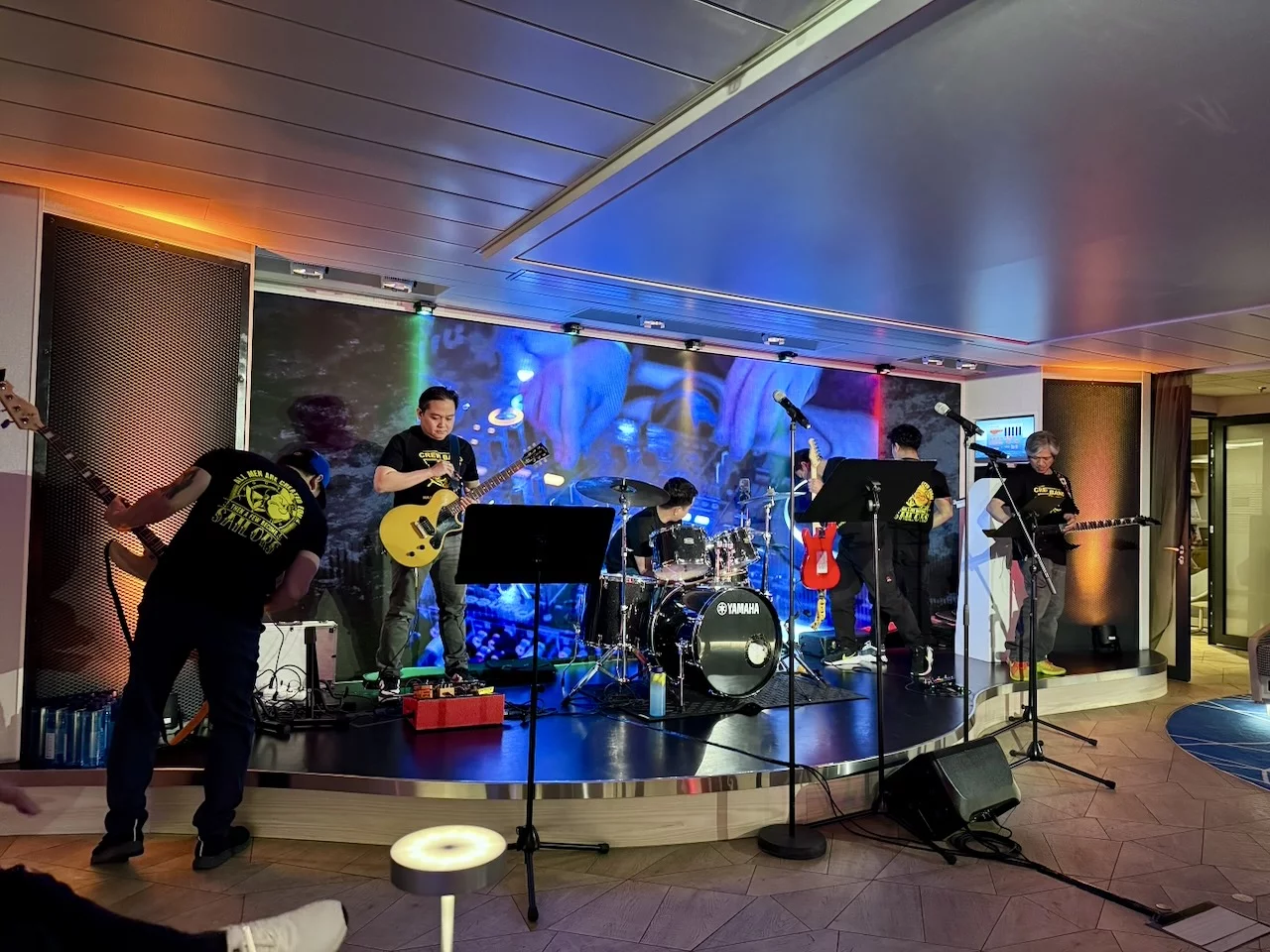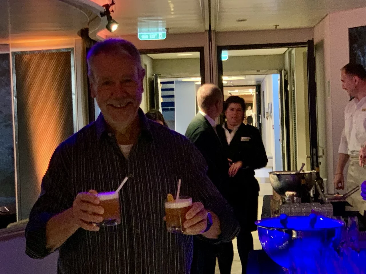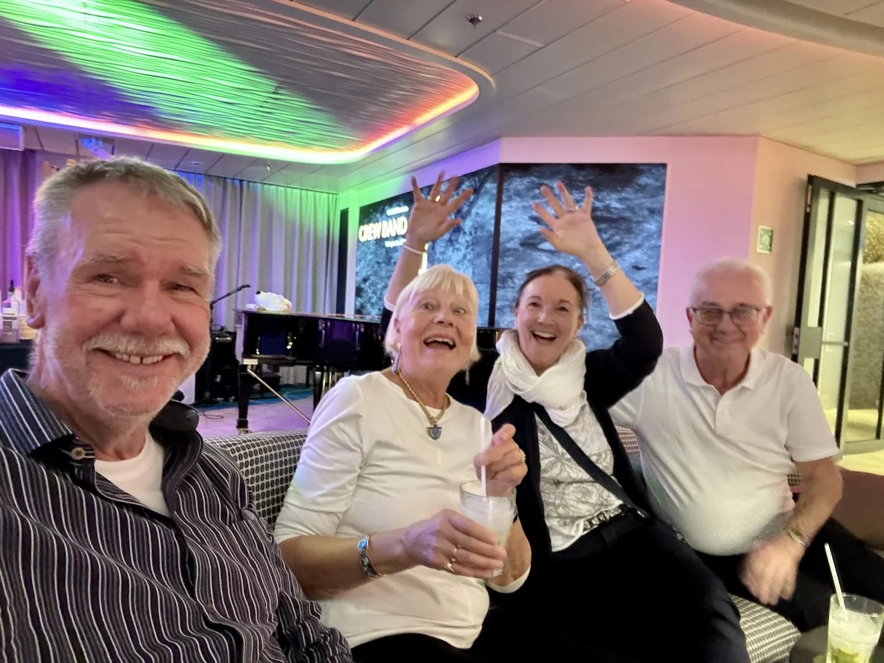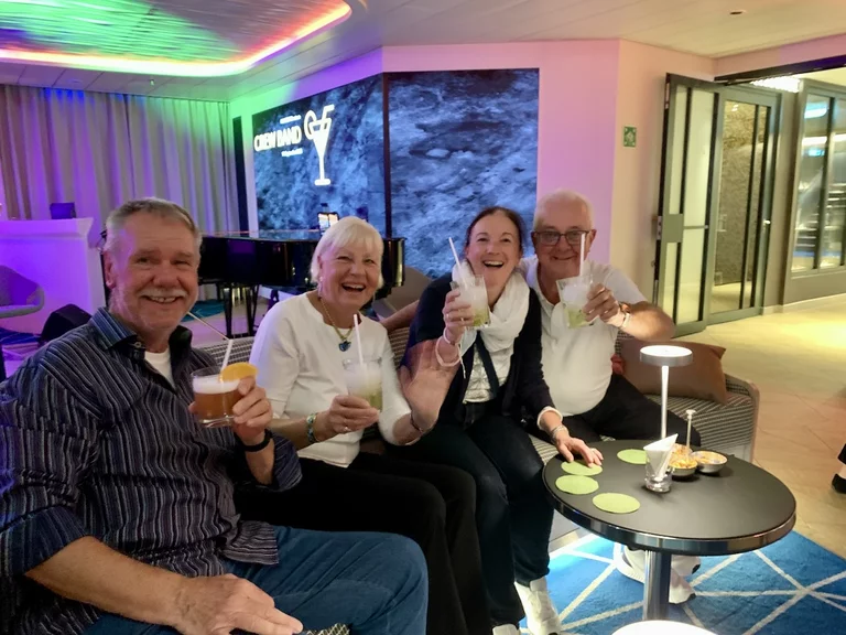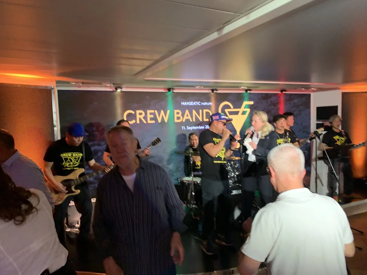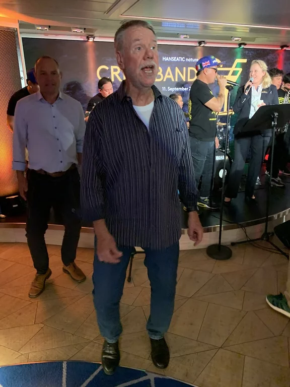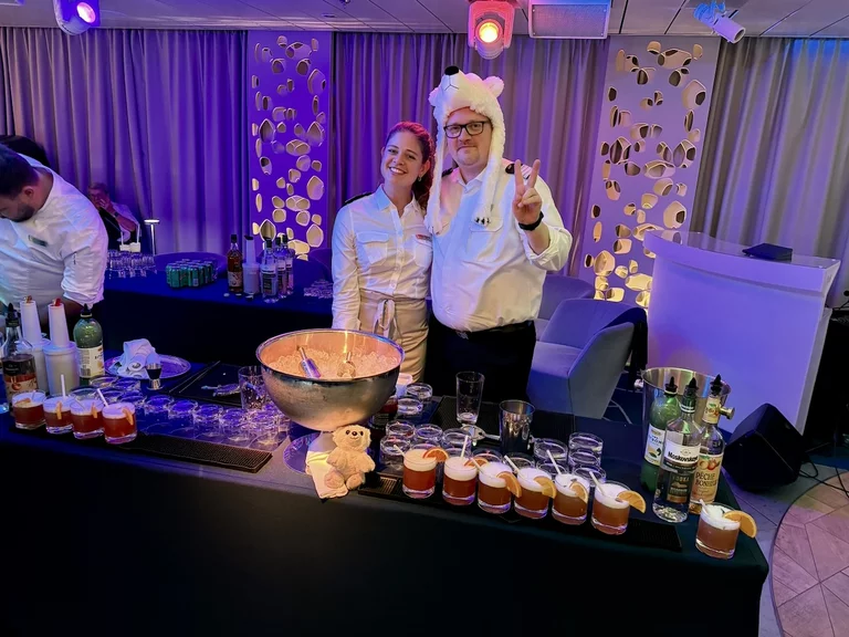 Am Abend stand das Event „Offiziere Shaken“ an, bei dem von den Offizieren des Schiffes diverse Drinks von Tonic Port über Caipiriñha bis Sex on the Beach gemixt werden. Die 6-köpfige Crew Band drehte gleichzeitig die Verstärker auf, und so wurde bis Mitternacht nicht nur getrunken, sondern auch, von heftigen Seegang unterstützt, kräftig das Tanzbein geschwungen. Ein wirklich gelungener Abend.
