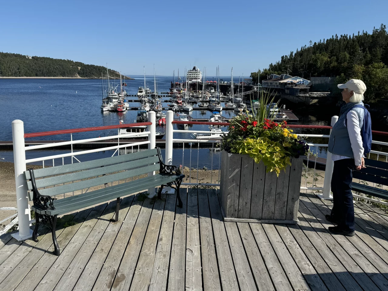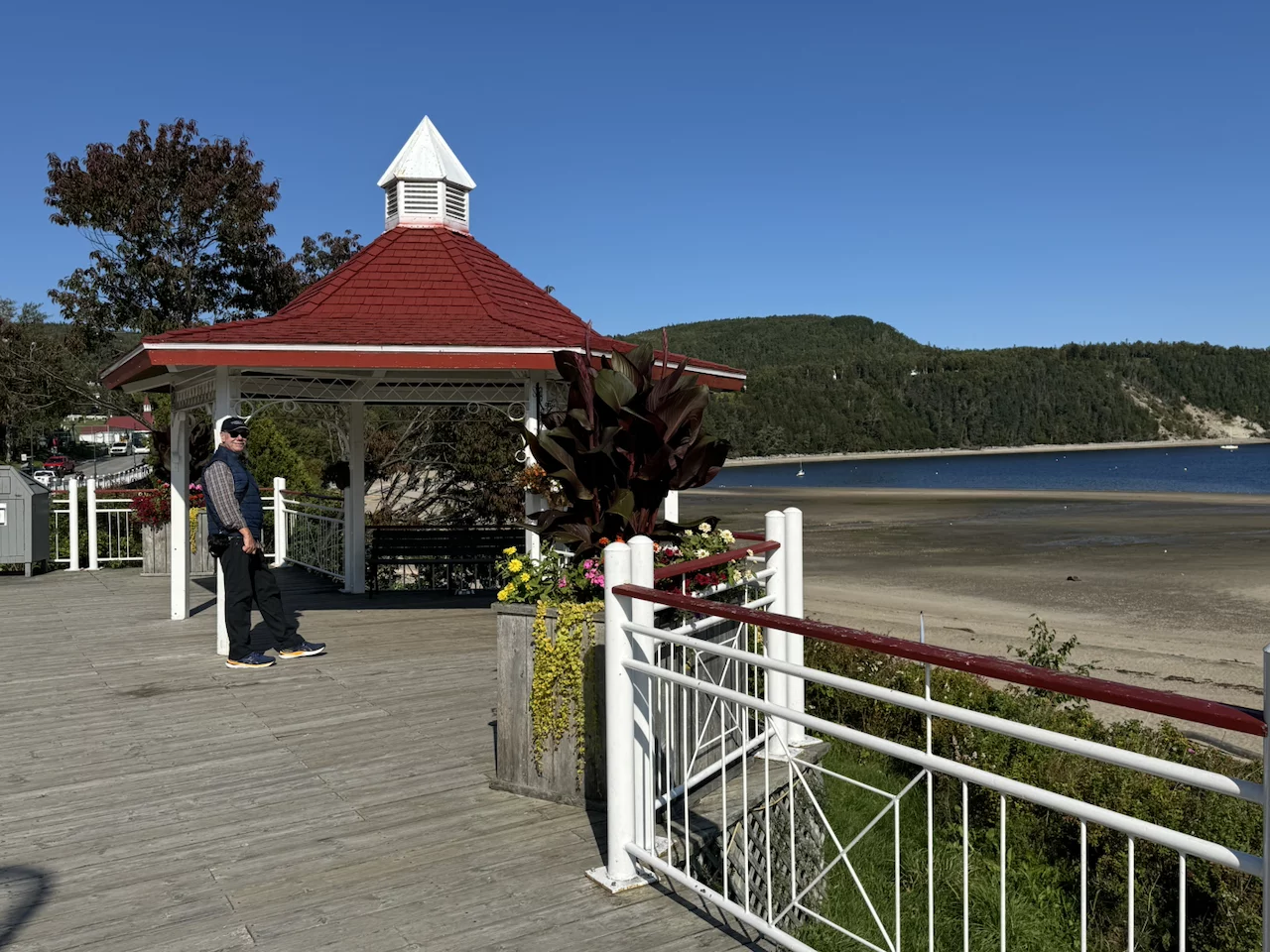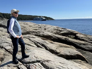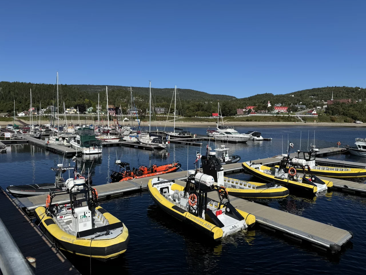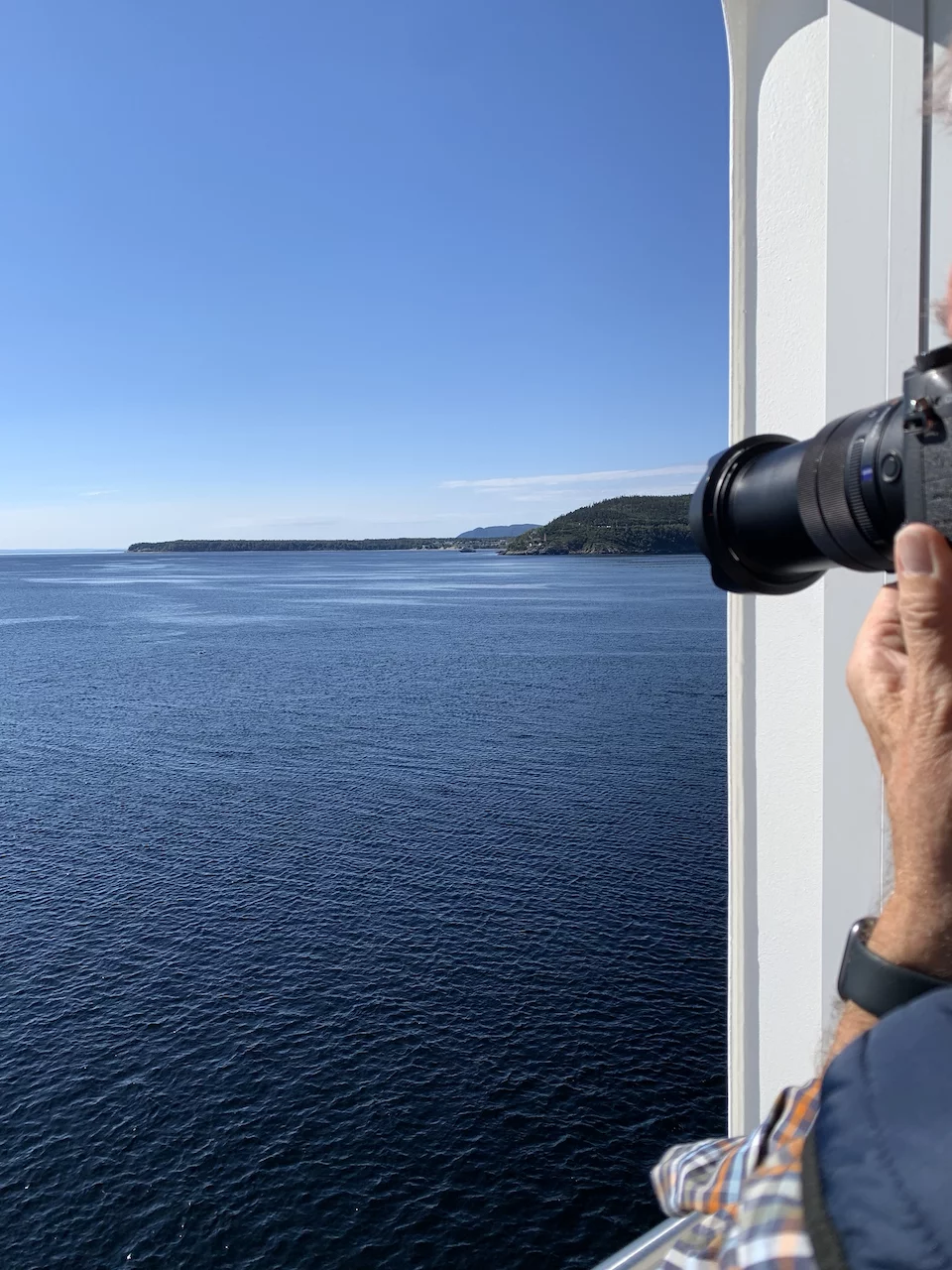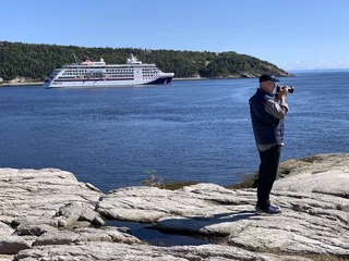 Pünktlich um 9:00 Uhr fiel der Anker in der Bucht von Tadoussac. Wir saßen gerade beim Frühstück, da kam die erste Meldung von der Brücke, dass man direkt vor dem Bug 2 Beluga-Wale gesichtet hatte. Einige sind sofort an Deck gerannt, kamen aber mit enttäuschten Gesichtern zurück. Die Wale waren wohl nur kurz aufgetaucht und dann wieder verschwunden.