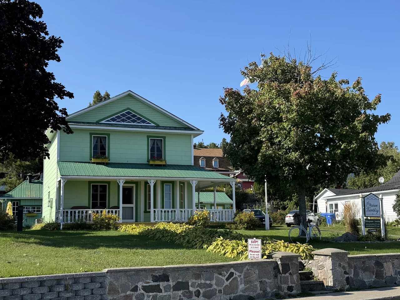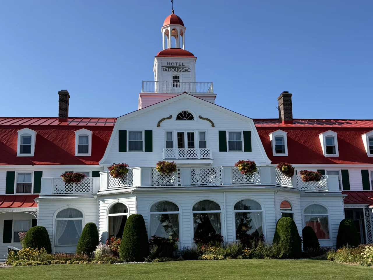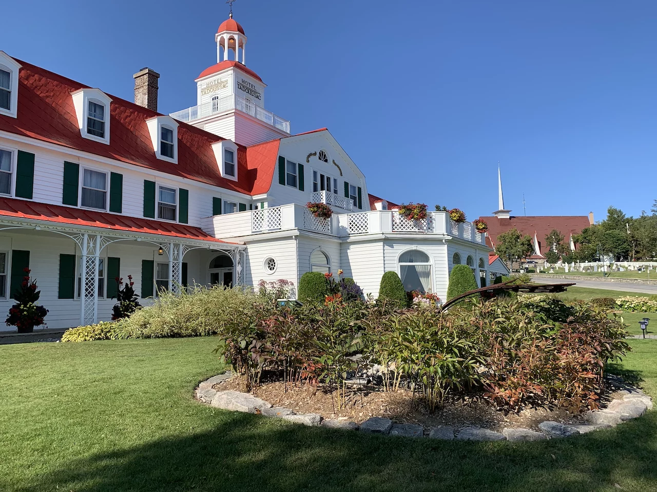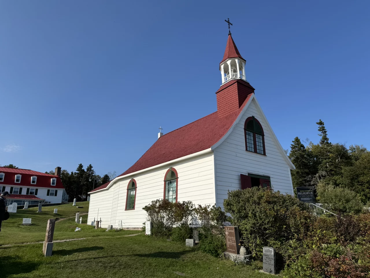 Am Nachmittag haben wir dem Dorf einen Besuch abgestattet. Tadoussac ist ein hübsches Dorf mit vielen bunten Fassaden. Das prachtvolle „Hotel Tadoussac" aus dem Jahr 1864 dominiert bis heute das Ortsbild. 1984 diente das Hotel als Kulisse für den Film „Hotel New Hampshire” mit Jodie Foster. Es ist auch heute noch ein sehr schönes Fotomotiv. Ins Auge sticht auch die Chapelle de Tadoussac - die älteste Holzkirche Nordamerikas. Sie wurde im Jahr 1747 erbaut und ist auch als "Indianerkapelle" bekannt. Jesuitenpriester feierten die erste Messe am 24. Juni 1750.