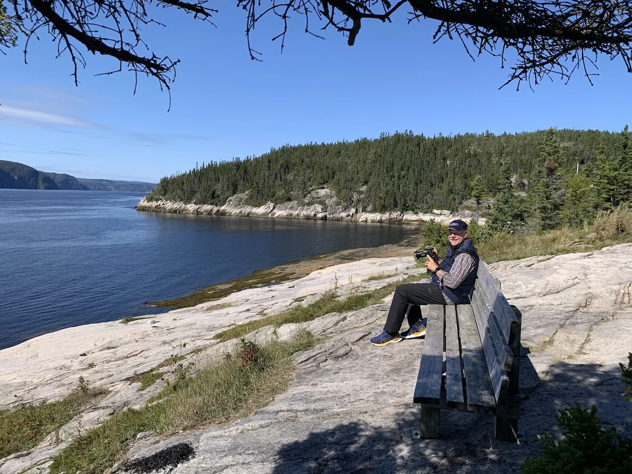 Abgesehen von den Walen, sollte man aber auch die wunderschöne Landschaft an diesem Fjord nicht aus dem Auge verlieren. Besonders dann nicht, wenn man so wie wir absolutes “Kaiserwetter” hat. Wir sind später einem gut ausgebauten, von herrlich duftenden Pinien gesäumten, Spazierweg entlang des Fjordufers gefolgt, haben auf diversen Bänken Pause gemacht und diese herrliche Umgebung genossen.