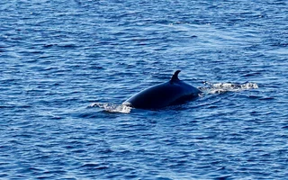 Ersten Erfolg hatten wir noch an Bord, denn wir bekamen direkt einige Minkwale vom offenen Fenster unserer Kabine aus vor die Linse. Später ging es dann mit dem Tender an Land und mit einer Kletterpartie über den felsigen Uferbereich zum nächstgelegenen Beobachtungsplatz. Auch hier tauchten immer wieder Wale auf, doch zumeist in ziemlicher Entfernung. Da ist man für ein vernünftiges Teleobjektiv an der Kamera dankbar. Es sind uns ein paar schöne “Schüsse” gelungen. Trotzdem ist es ein zähes Geduldspiel, denn so schnell wie sie auftauchen sind sie auch wieder abgetaucht.