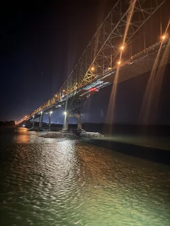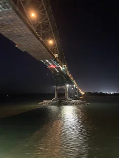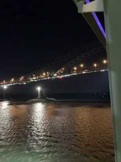 Um 5:20 Uhr heute morgen wurden wir kurzzeitig von 3 Typhon-Signalen der Inspiration aus dem Schlaf gerissen. Offensichtlich hatten diese mit dem Lotsenwechsel zu tun. Vielleicht wollte der Käpt’n aber auch nur die kanadischen Frühaufsteher grüßen, denn kurz darauf unterquerten wir eine viel befahrenen Brücke😉😉.