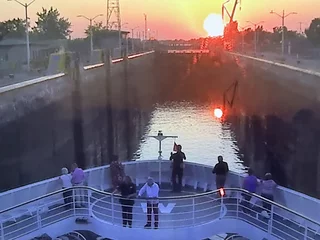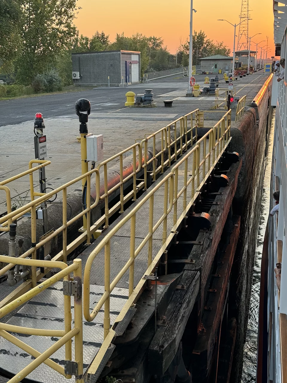 Bedingt durch die Verspätung des Lotsen kam unser Zeitplan für die heutigen Schleusendurchfahrten etwas ins Rutschen. Die zweite Schleuse haben wir in der Dämmerung noch geschafft.