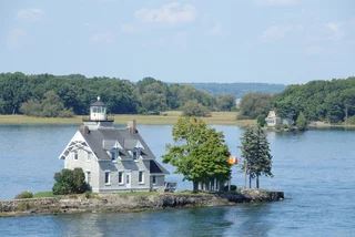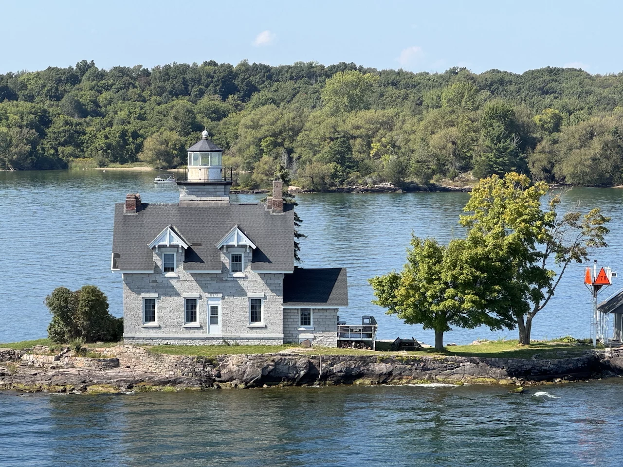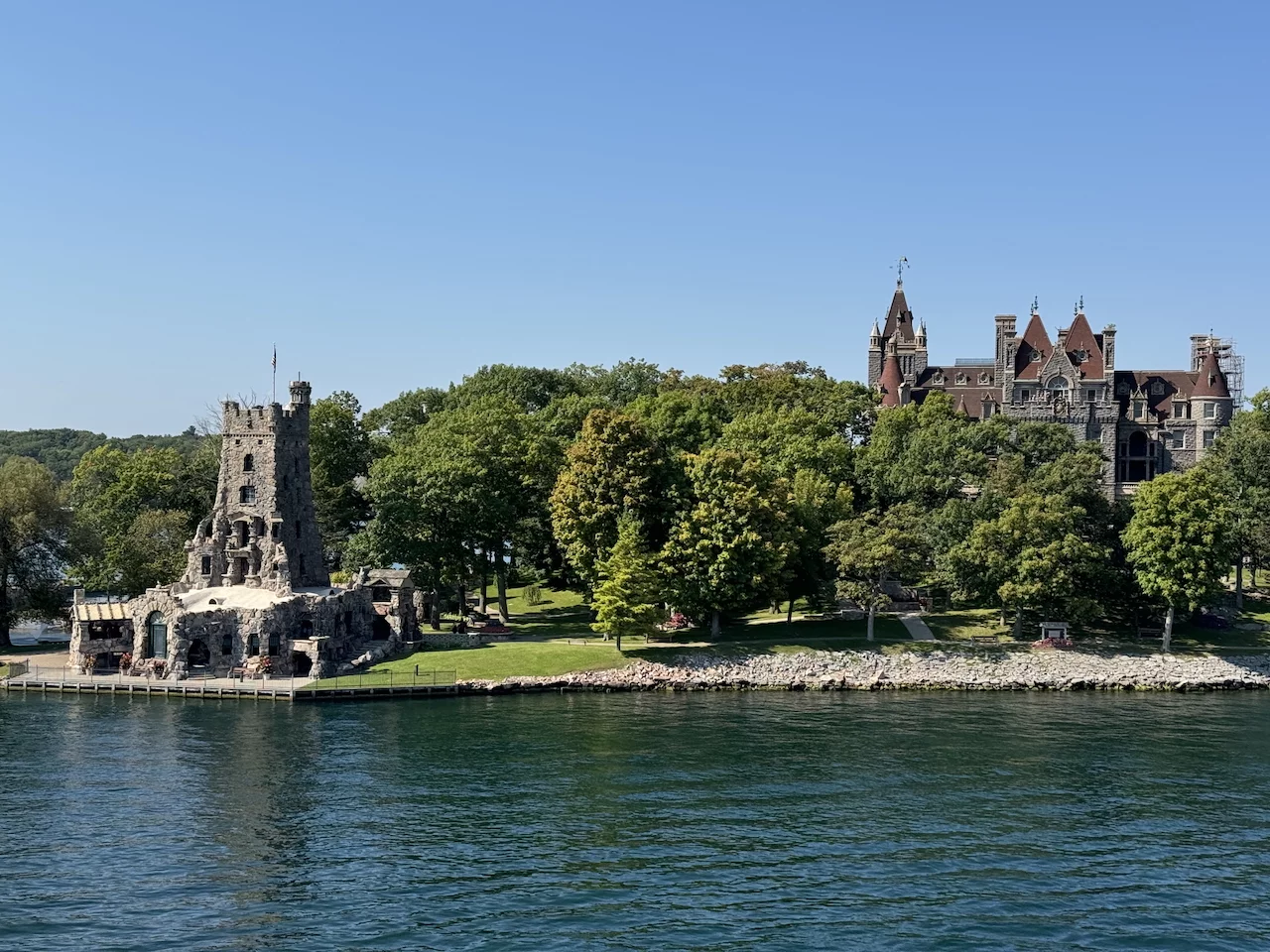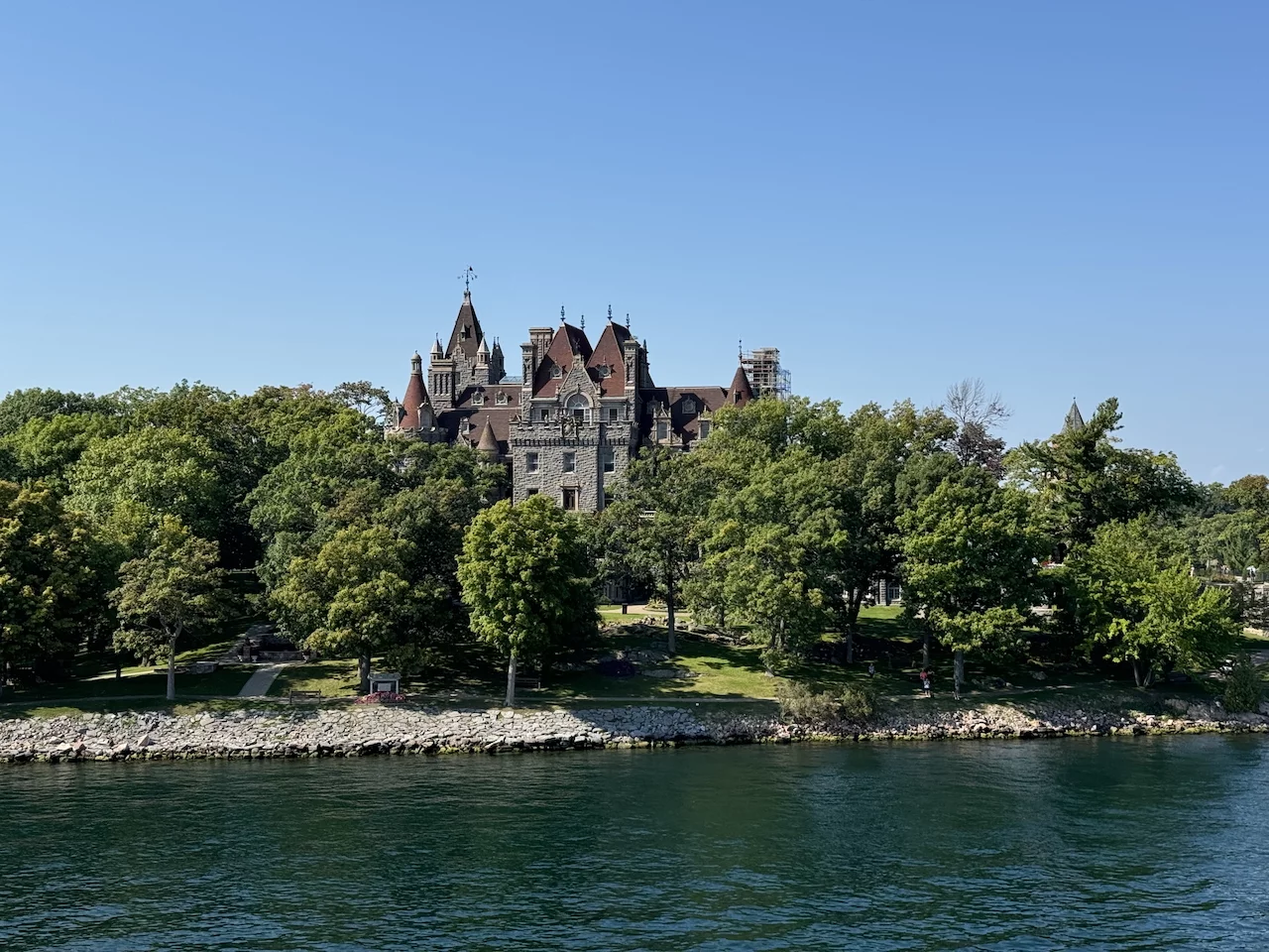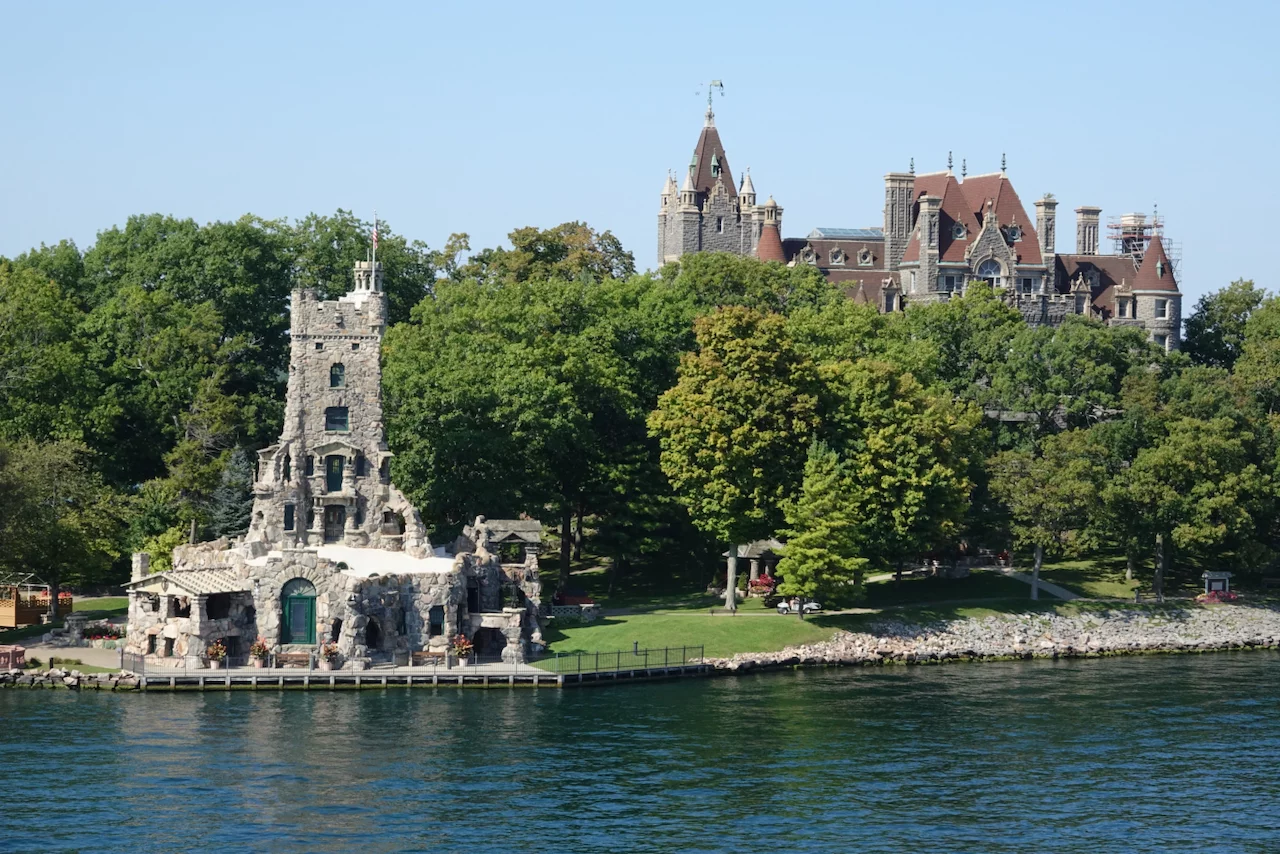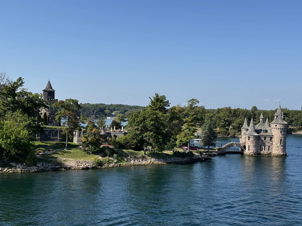 Über den heutigen Tag gibt es nicht viel zu berichten. Wir haben einfach nur diese traumhafte Fahrt durch das Gebiet "Thousand Islands" im Sankt-Lorenz-Strom genossen. Nichts als purer Sonnenschein, Hapag Lloyd Verwöhnprogramm und eine vorbeiziehende Landschaft, die einen aus dem Staunen nicht mehr herauskommen läßt. Auf den nächsten 75 Kilometern 1864 große und kleine, bebaute und unbebaute Inseln. Viele davon bestückt mit den tollsten Villen und Wochenendhäusern, natürlich immer mit Bootsanleger und Parkplatz für den Jetski. Wer eine sichtbare Definition für das Wort Dekadenz sucht, hier ist er richtig!!!