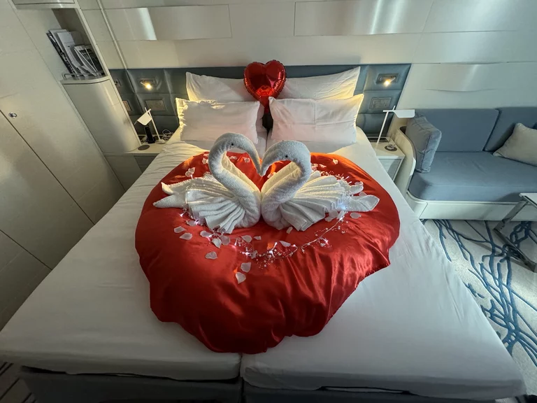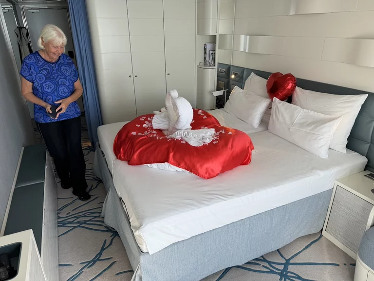 Irgendjemand muß HLC "geflüstert" haben, dass wir heute etwas zu feiern haben. Jedenfalls gab es eine sehr nette Überraschung, als wir nach dem Frühstück zurück zur Kabine kamen war
