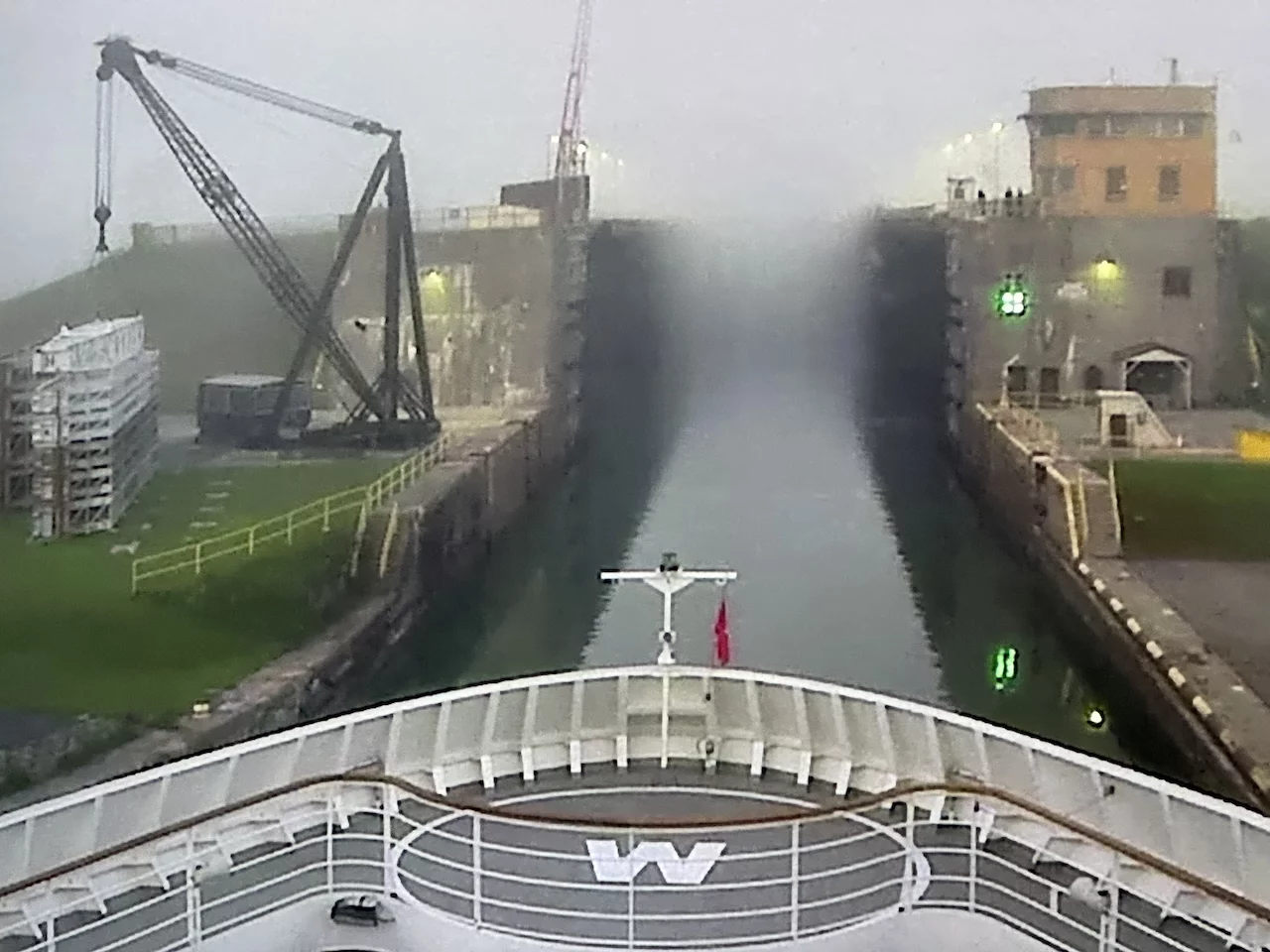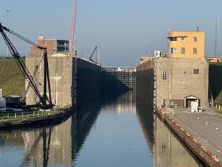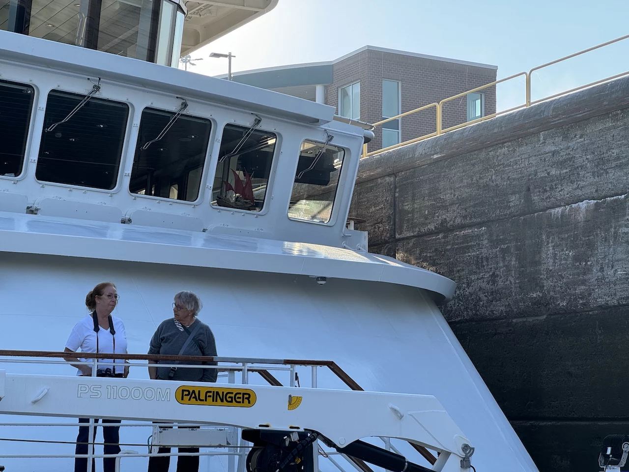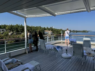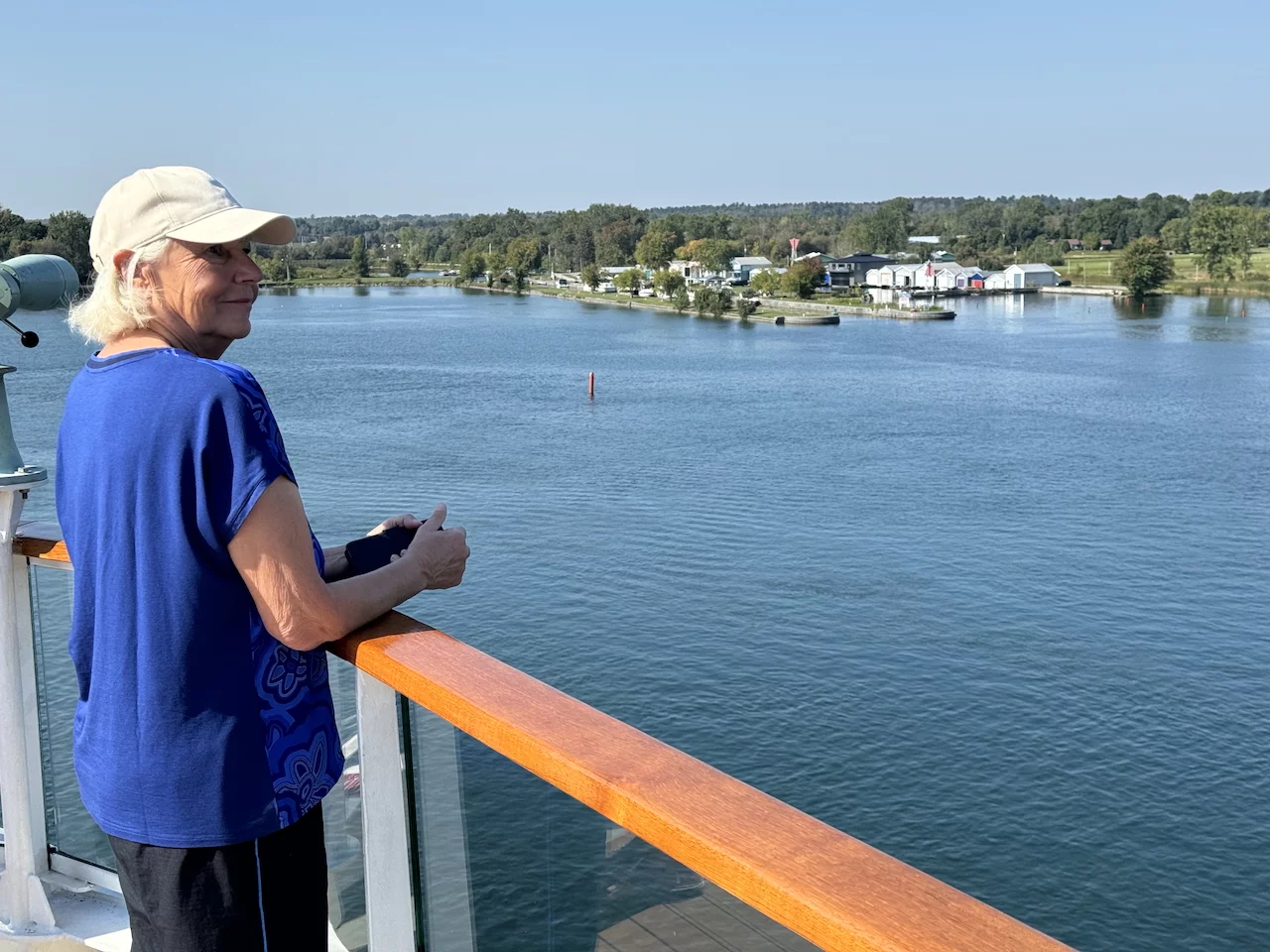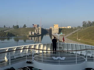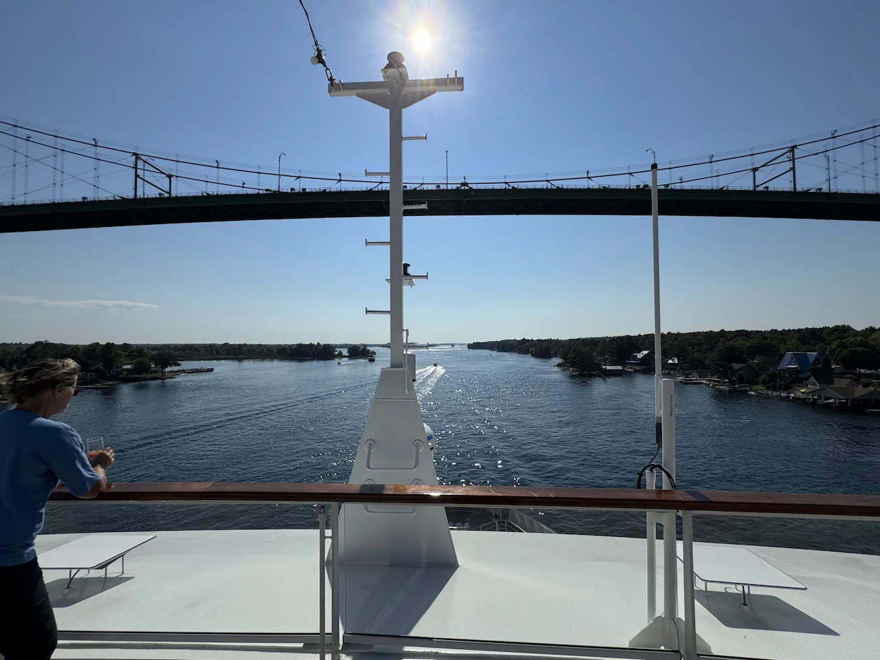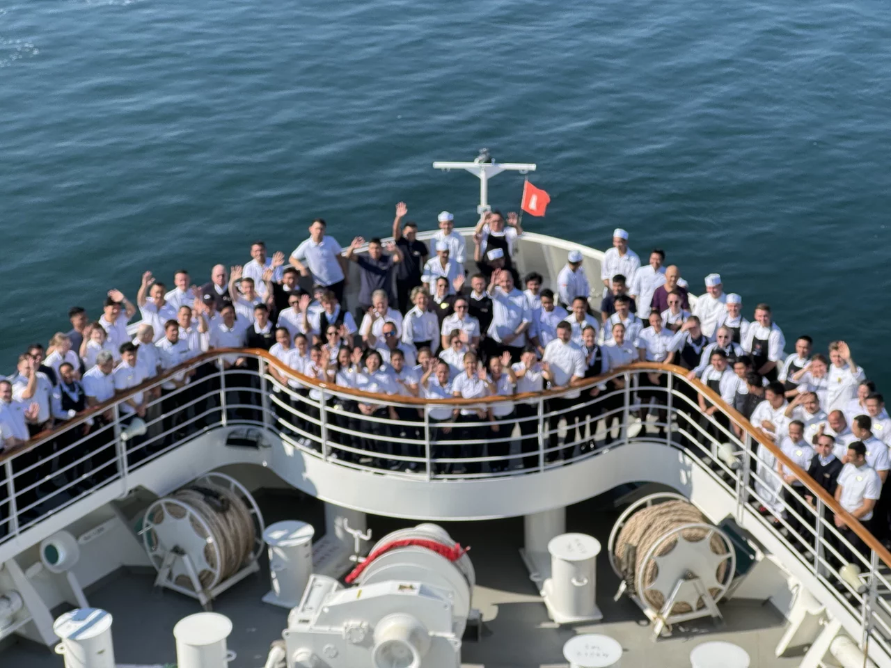 Kurz nach Sonnenaufgang passierten wir die letzte Schleuse auf unserer Fahrt in den Lake Ontario. Am Ufer fanden sich etliche Zuschauer ein, denn ein Kreuzfahrtschiff kommt hier eher selten vorbei. Gegen Mittag fand sich ein großer Teil der 158 Crew-Mitglieder auf dem "Inspiration Walk" am Bug ein um sich von den Passagieren zu verabschieden, denn heute ist unser letzter Tag an Bord dieses schönen Schiffes. Morgen früh erreichen wir das Ziel unserer Reise, Toronto.