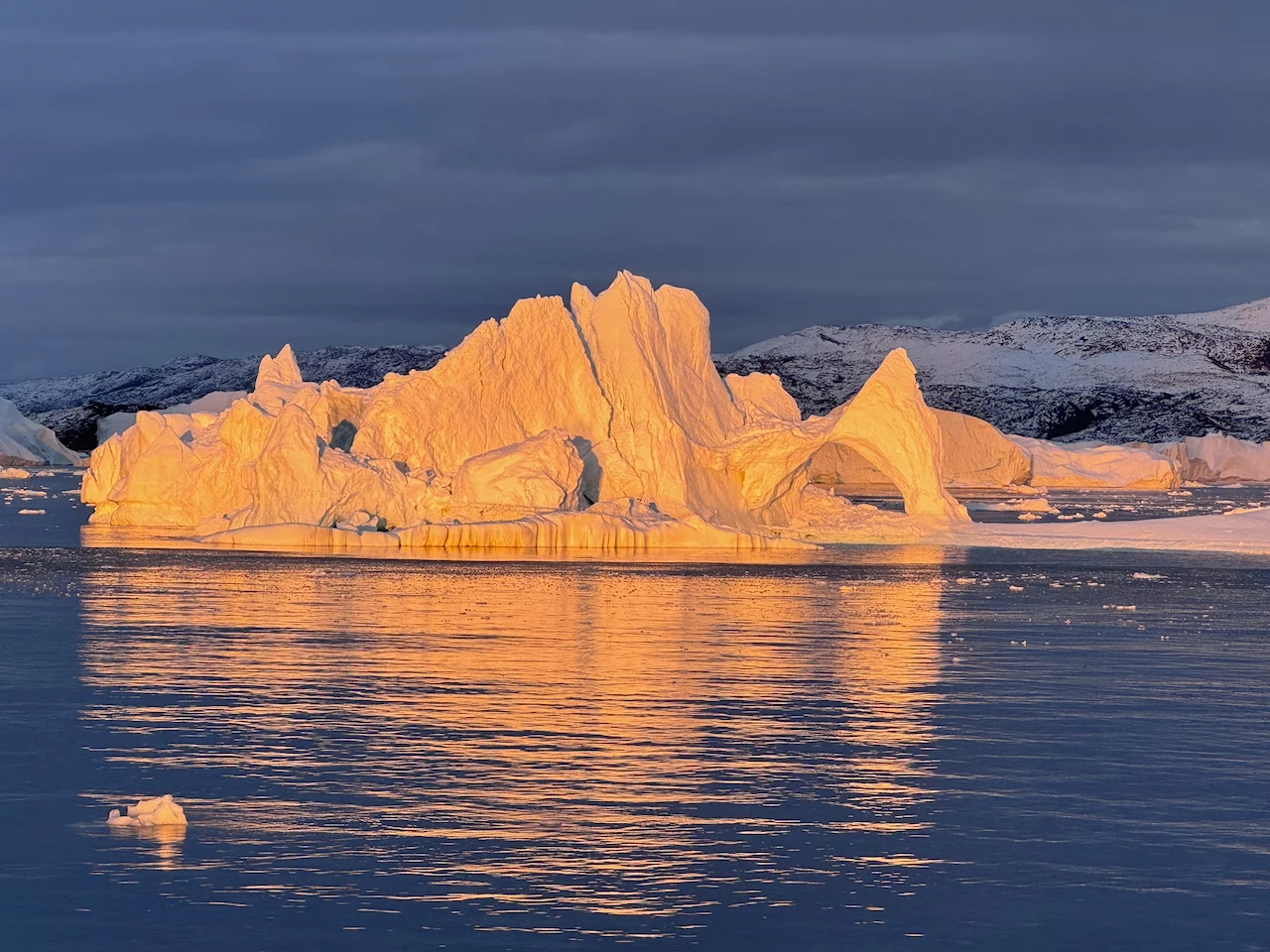 Zum “Dessert” gab es dann noch einen traumhaft schönen arktischen Sonnenuntergang, inklusive eines im untergehenden Sonnenlicht glühenden Eisbergs. Der absolut passende Abschluss eines perfekten Tages. Ich denke, auch diese Bilder sprechen für sich.