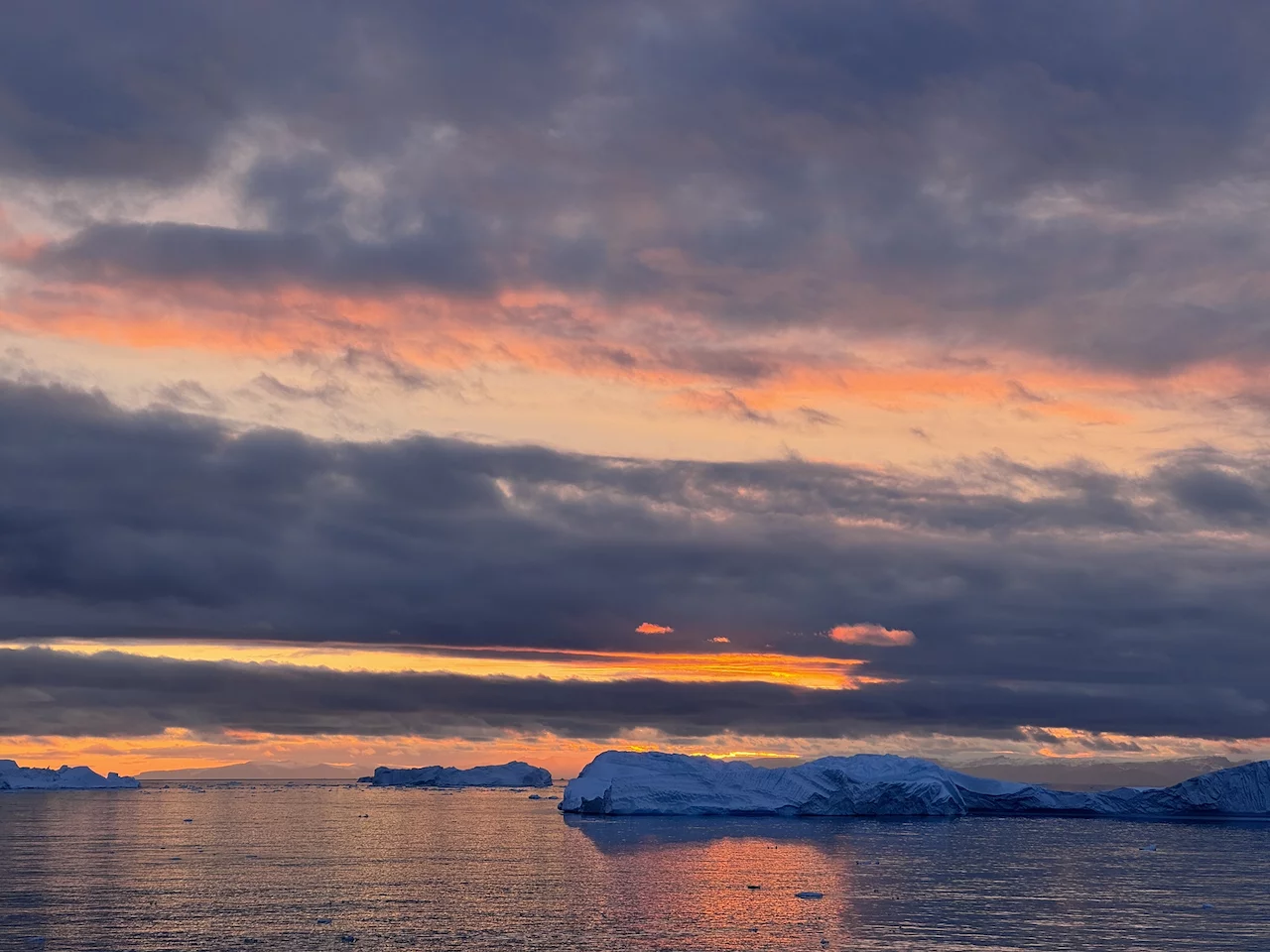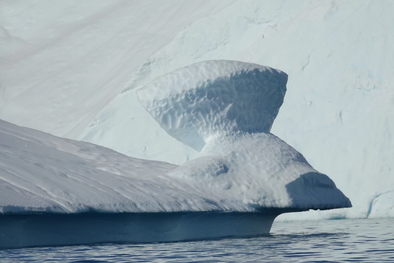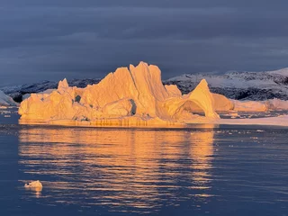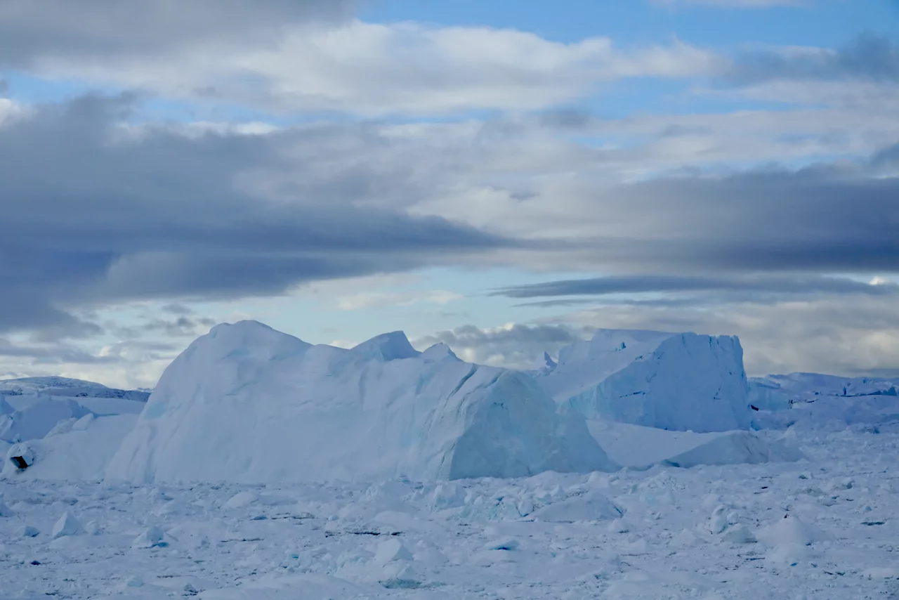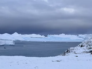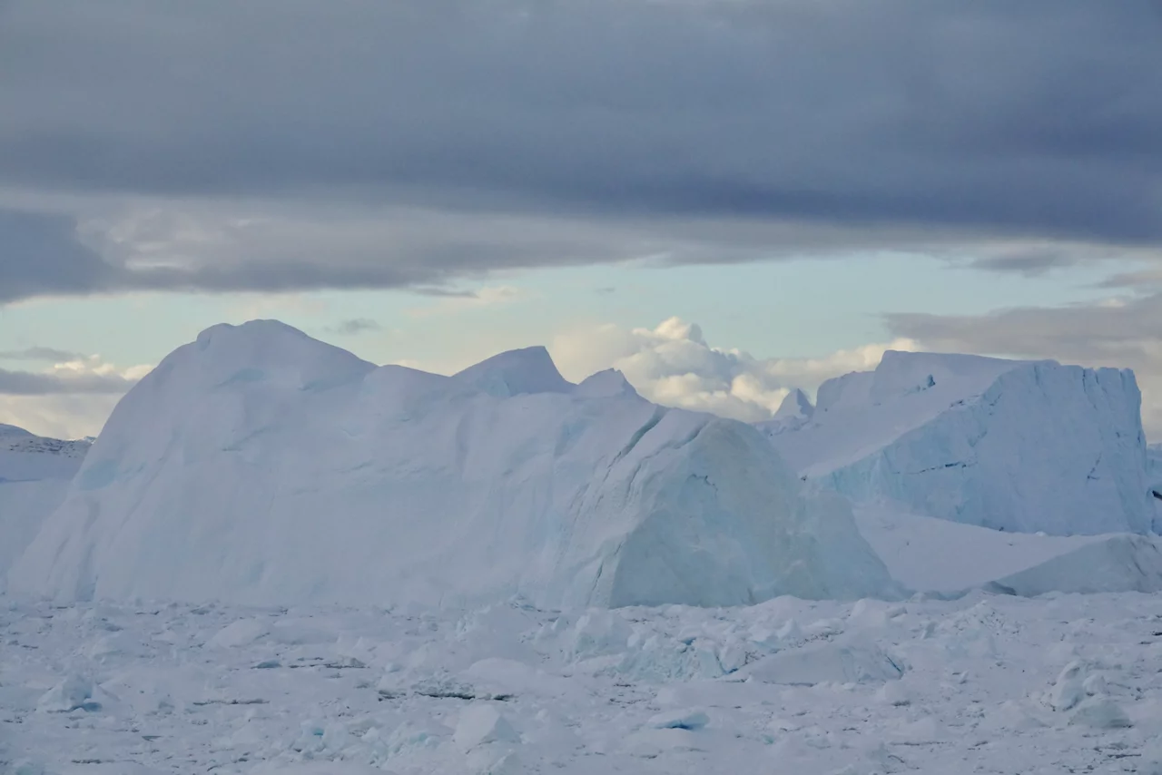 Die Eisberge im Fjord sind zum Teil riesig und von fast allen Stellen der Stadt zu sehen. Sie kommen vom Sermeq Kujalleq, dem größten Gletscher der nördlichen Halbkugel. Er ist auch einer der schnellsten Gletscher der Welt, denn er bewegt sich täglich ca. 40 Meter vom Inlandeis weg (andere Gletscher bewegen sich nur einige Millimeter am Tag). Dabei werden teilweise riesige Eisberge “produziert”, die sich Richtung Diskobucht bewegen. Kurz vor der Mündung der Bucht verringert sich die Wassertiefe des Fjords deutlich. Das führt dazu, dass manche der großen Eisberge schlichtweg hängen bleiben und somit einen regelrechten Stau verursachen. Durch den Druck der nachfolgenden Eismassen brechen sie früher oder später auseinander und fließen als spektakuläre “Eisskulpturen” in die Diskobucht.