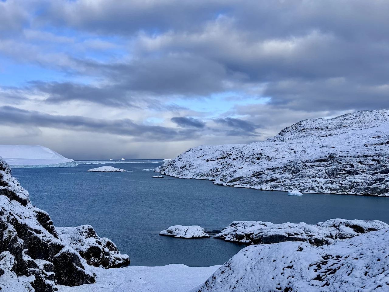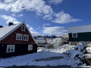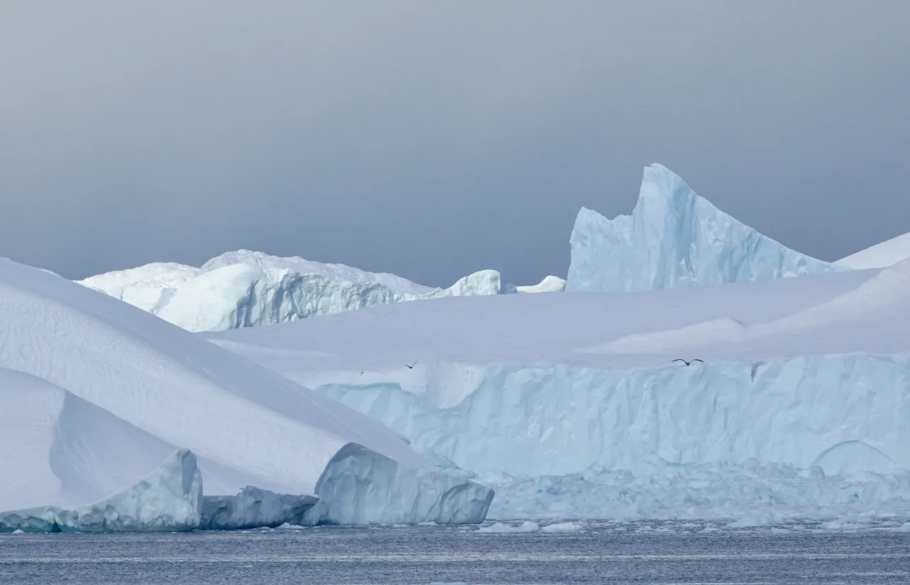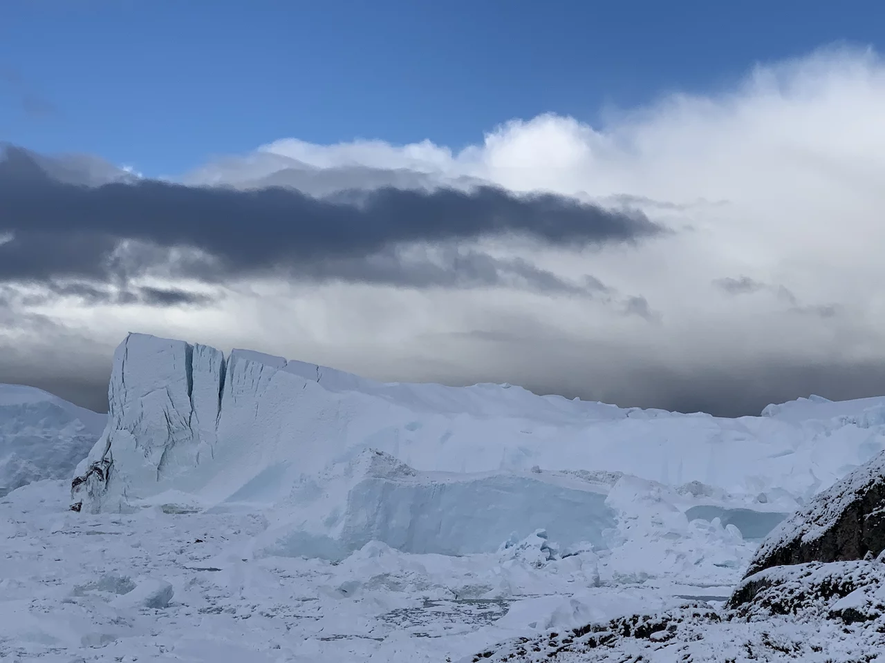 Die Eisberge im Fjord sind zum Teil riesig und von fast allen Stellen der Stadt zu sehen. Sie kommen vom Sermeq Kujalleq, dem größten Gletscher der nördlichen Halbkugel. Er ist auch einer der schnellsten Gletscher der Welt, denn er bewegt sich täglich ca. 40 Meter vom Inlandeis weg (andere Gletscher bewegen sich nur einige Millimeter am Tag). Dabei werden teilweise riesige Eisberge “produziert”, die sich Richtung Diskobucht bewegen. Kurz vor der Mündung der Bucht verringert sich die Wassertiefe des Fjords deutlich. Das führt dazu, dass manche der großen Eisberge schlichtweg hängen bleiben und somit einen regelrechten Stau verursachen. Durch den Druck der nachfolgenden Eismassen brechen sie früher oder später auseinander und fließen als spektakuläre “Eisskulpturen” in die Diskobucht.