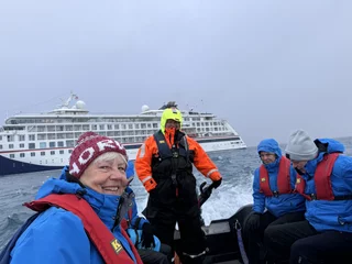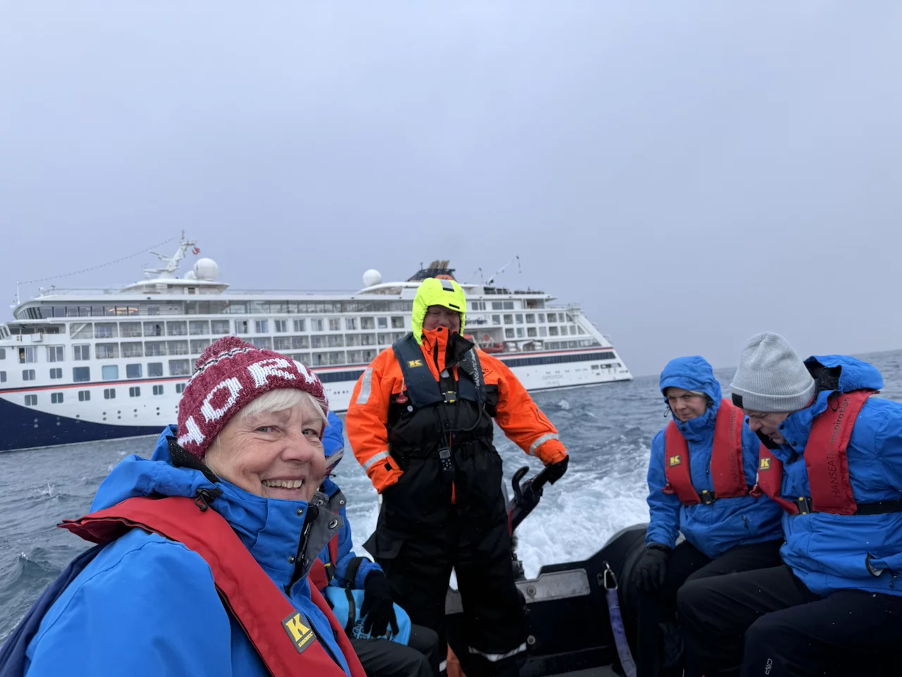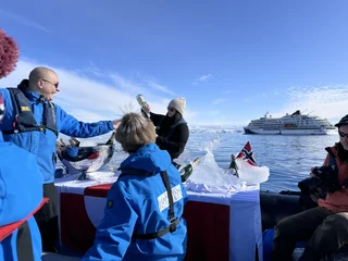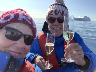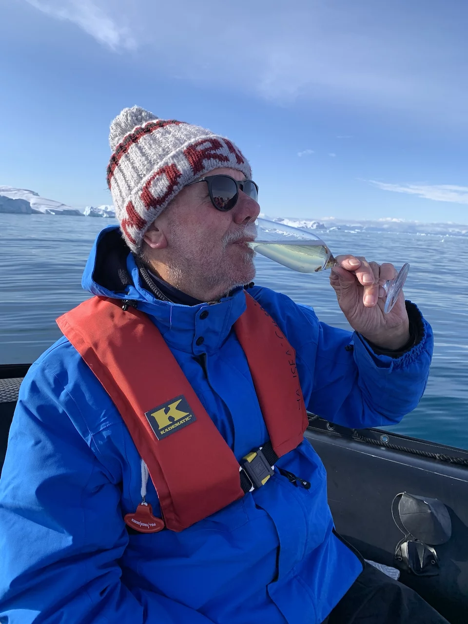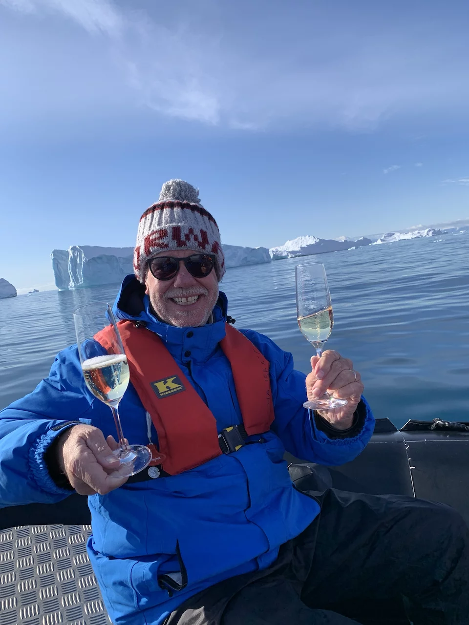 Am Ende der Rundfahrt wurden wir noch mit einem flüssigen Highlight bedacht, denn es erwartete uns bereits ein zu einer Champagner-Bar “umfunktioniertes” Zodiac. Die fürsorgliche Crew an Bord hatte schon die gefüllten Gläser parat, damit wir auf diesen wunderschönen und gelungen Tag gebührend anstoßen konnten.