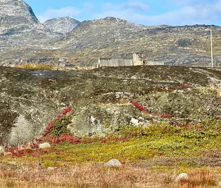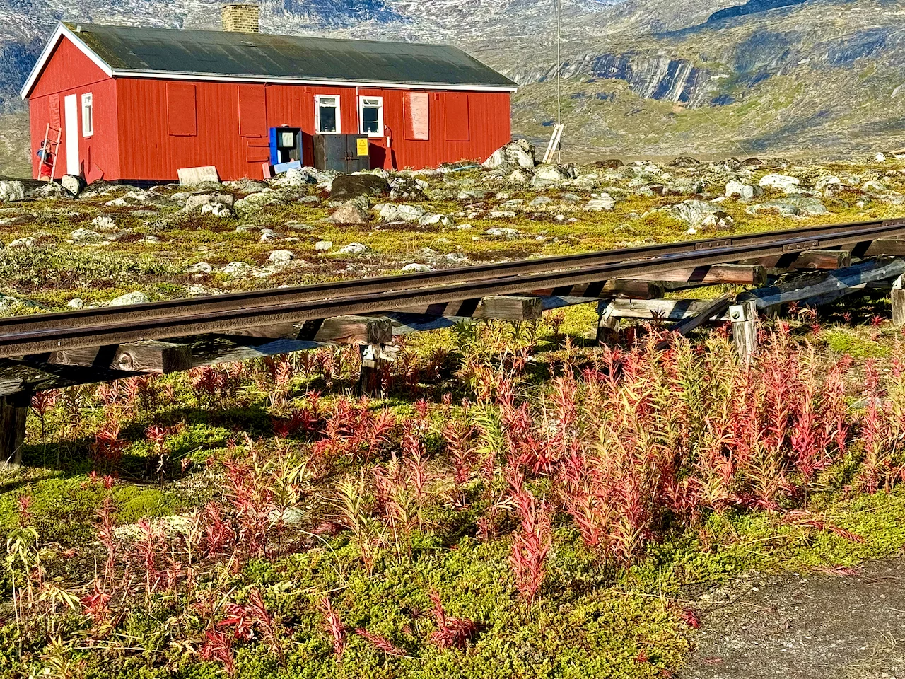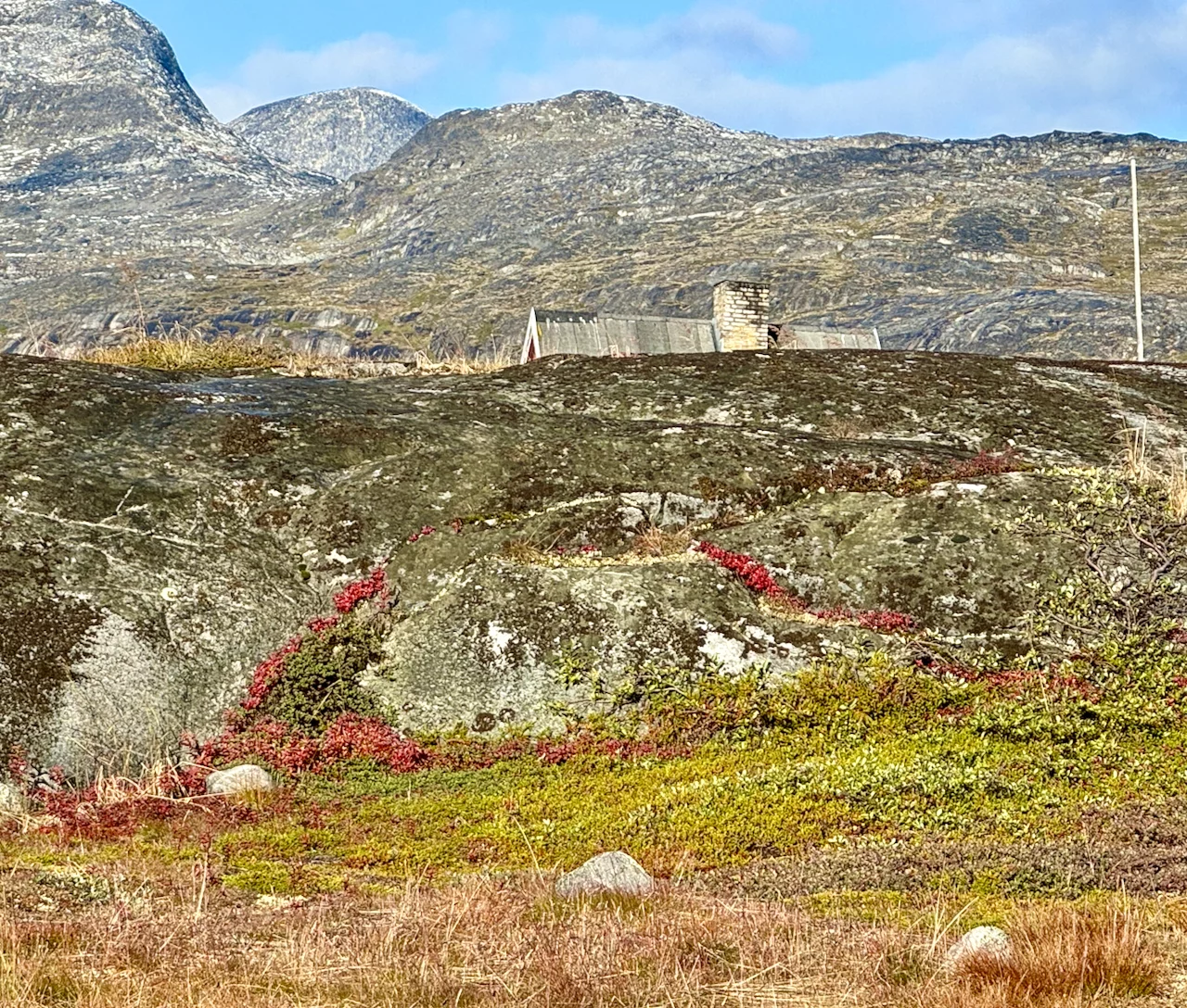 Abgesehen von diesem “Treffen” war es ein wundervoller Spaziergang durch dieses “verlassene” Dorf mit seinen 15 Häusern, einem Friedhof, einem Bolzplatz und einer verfallenen Fischfabrik. Der Wettergott hielt - mal wieder - seine schützende Hand über uns. Bei strahlendem Sonnenschein und Temperaturen zwischen 3° bis 6° kam der Indian Summer in der flachen Vegetation im Dorf wunderschön zur Geltung.