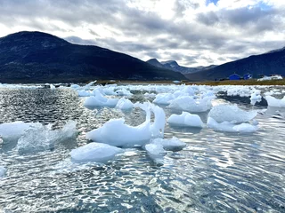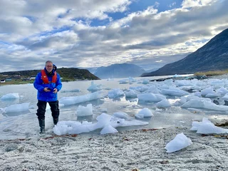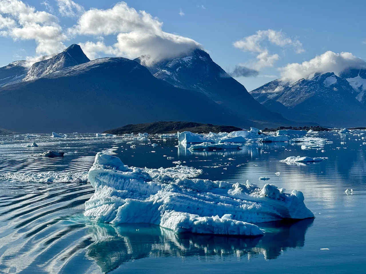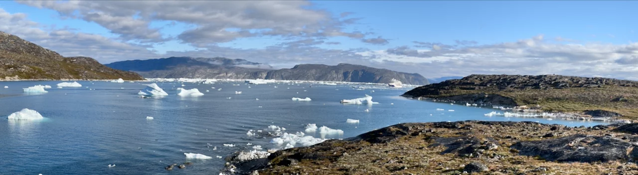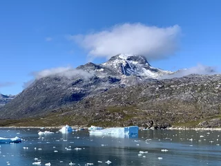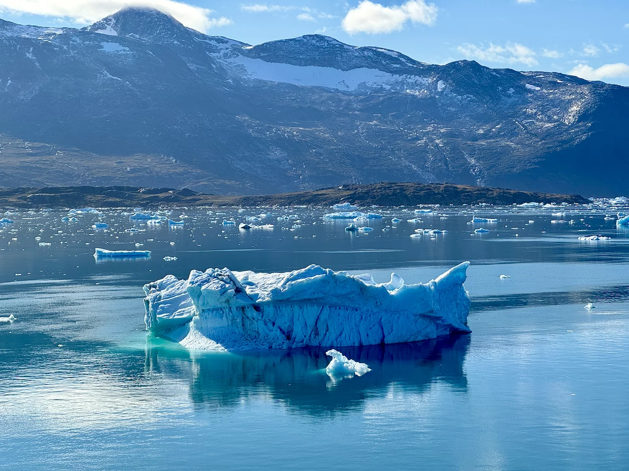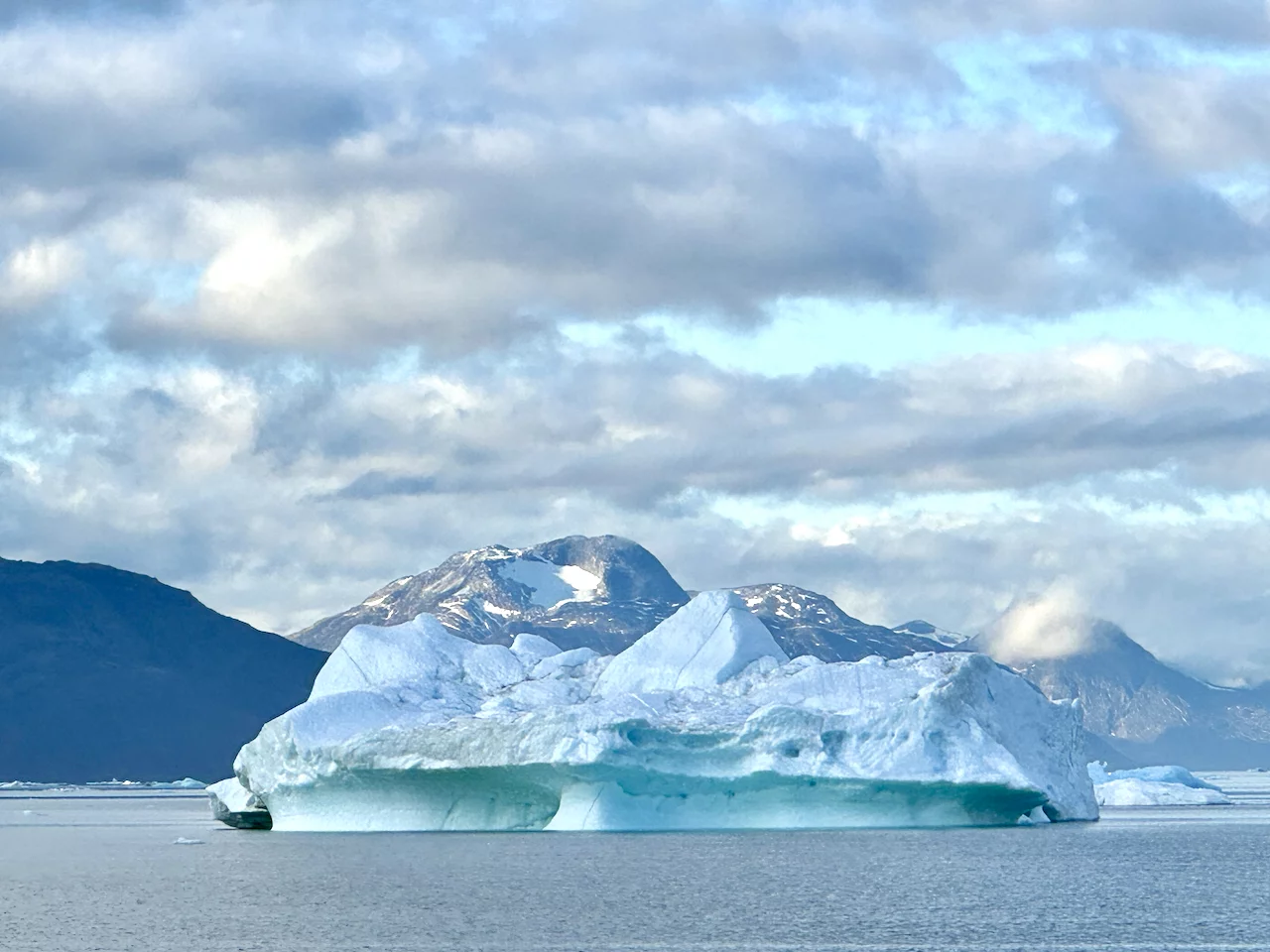 Leider mussten wir diese wundervolle Bucht bereits um 11:00 Uhr wieder verlassen, denn bis zu unserem nächsten Ziel Qassiarsuk sind es 384 Seemeilen = 690km. Dort wollen wir morgen Nachmittag gegen 15:00 Uhr ankommen. Der Fjord ist voll mit größeren und kleinen Eisbergen, die von verschiedenen nördlich gelegenen Gletschern abgekalbt sind, und verlangt der Brücken-Crew einiges ab. Teilweise hatte es etwas wie Slalom fahren zwischen Eisbergen an sich.