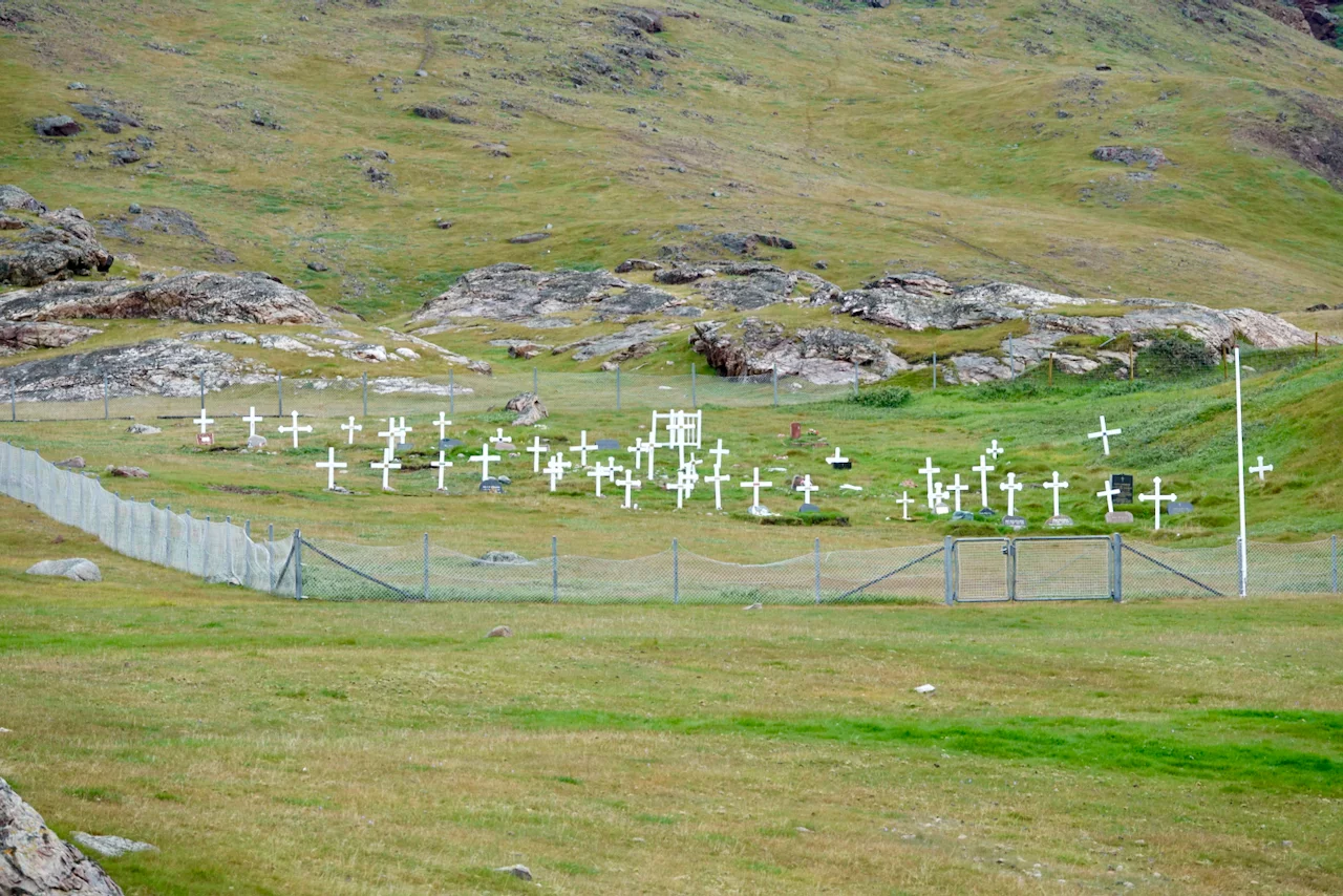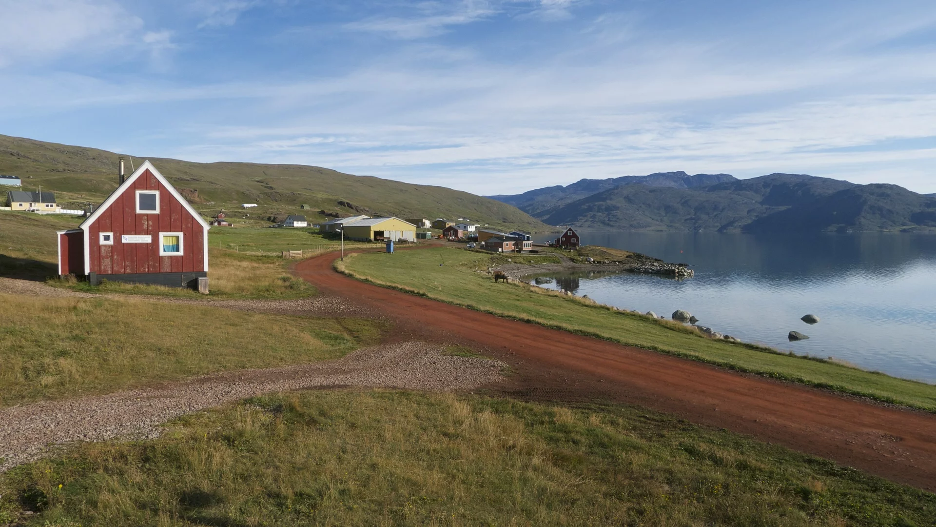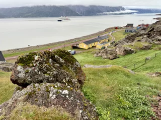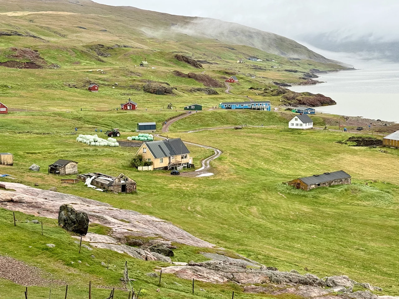 Irgendwie war der Blick auf das Wasser draußen etwas irritierend. Seit der Einfahrt in die südgrönländische Fjordwelt heute Vormittag sahen wir nur schönes türkisfarbenes Gletscherwasser und unzählige vorbei treibende Eisberge. In diesem Fjordarm allerdings sah die “Brühe” da draußen eher aus wie der Amazonas. Vielleicht hatte es mit dem Regen zu tun, der bereits seit geraumer Zeit fiel. Qassiarsuk liegt tief im Inneren des Tunulliarfik (Eriksfjord). Hier hat Erik der Rote um 985 Grönland besiedelt und die Siedlung Brattahlíð gegründet. Damit war der Ort die erste Ansiedlung der jahrhundertelang in Grönland lebenden Grönländer. Der heutige Ort wurde 1924 von dem Schafzüchter Otto Frederiksen gegründet. Im Laufe der Jahre schwankte sowohl die Einwohnerzahl als auch die Anzahl an Schafen stark. Heute ist Qassiarsuk mit ca. 10.000 Schafen die größte Schäfersiedlung Grönlands und hat als solche den Status eines Dorfs.