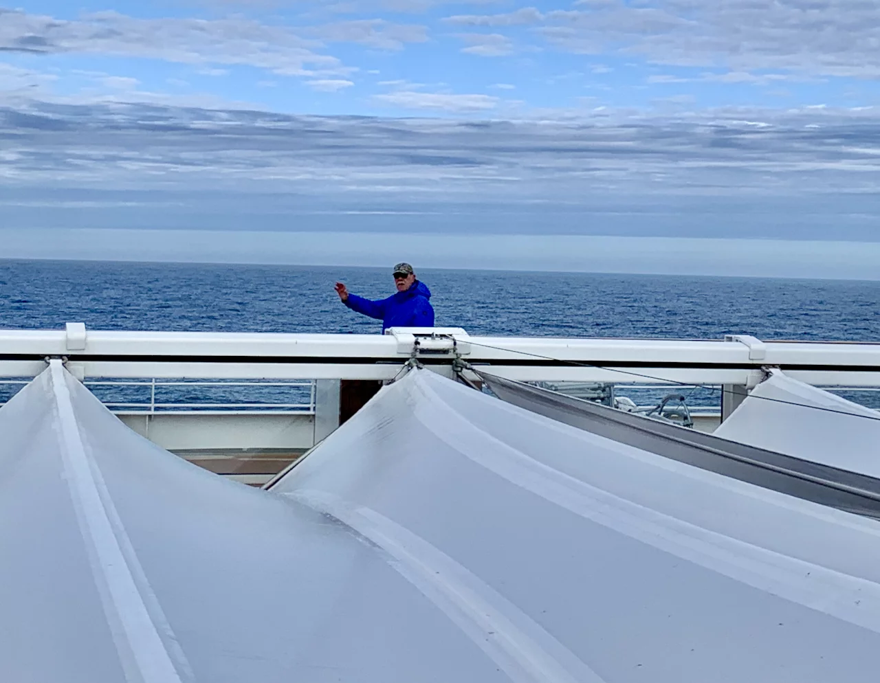 Inzwischen haben wir fast 2/3 der Strecke bis Neufundland hinter uns gebracht. Und wenn sich laut Kapitän keiner beim Uhr umstellen vertut, werden wir wie geplant morgen, Samstag den 07.09.2024 um 13:00 Uhr in L’Anse aux Meadows ankommen. Nebenbei erwähnte er auch noch, dass falls jemand unter den Passagieren etwas über 3,5km groß sein sollte, er/sie hier stehen könnte, denn die Wassertiefe läge an unserer momentanen Position bei 3500m.