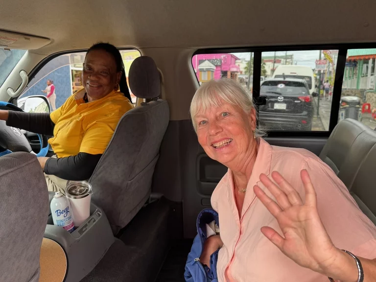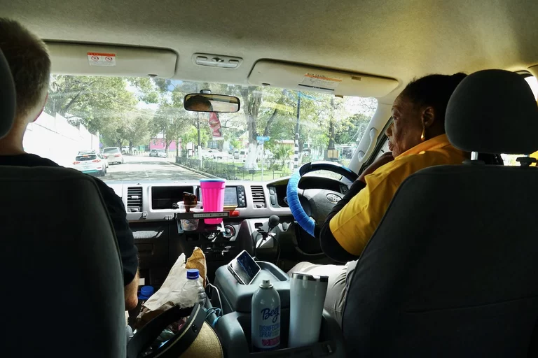 Glücklicherweise sind wir direkt am Hafenausgang auf Audrey gestoßen, die gerade ihre Mittagspause beendet hatte. Nach einer kurzen Preisverhandlung hatten wir uns dann geeinigt und die "Reise" konnte beginnen. Ihr Toyota Van war zwar schon etwas in die Jahre gekommen, bot uns aber viel Platz und war auch ansonsten in Ordnung.