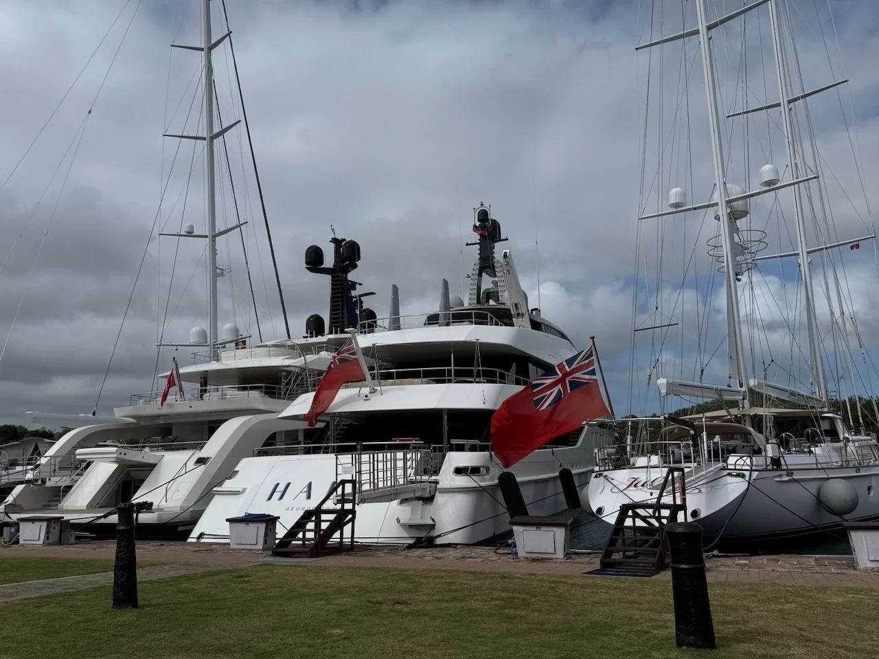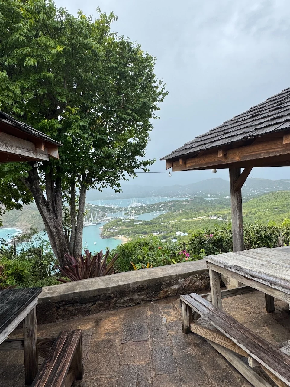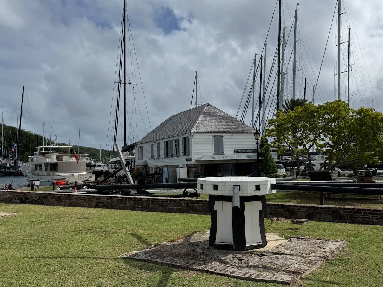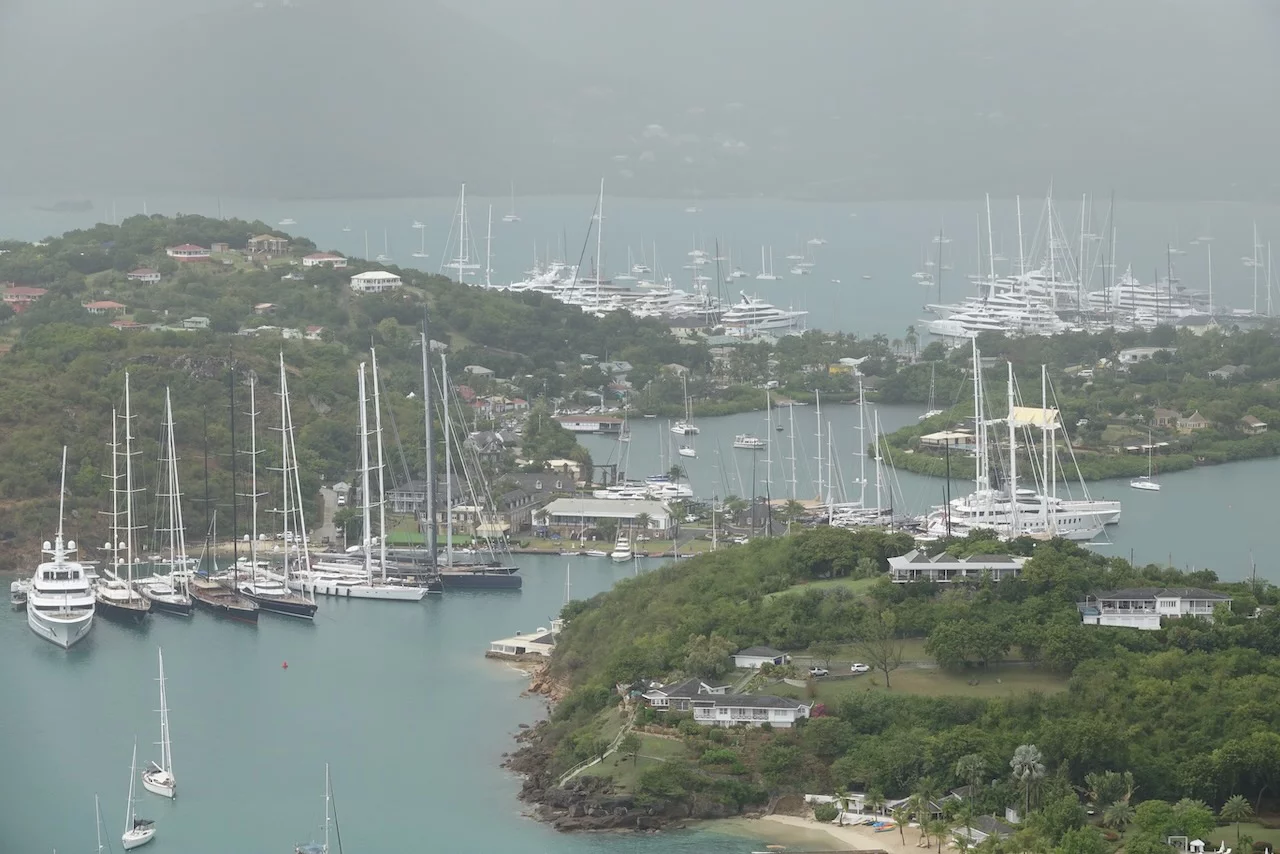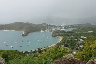 An einen der 365 Strände zu fahren machte unter den gegebenen Wetterkonditionen keinen großen Sinn. Unser Hauptziel waren deshalb der berühmte Aussichtspunkt Shirley Heights. Von dort hat man einen fantastischen Ausblick über die südliche Küstenlinie der Insel mit dem English Harbour und Nelsons Dockyard. Selbige ist weltweit die Einzige im gregorianischem Baustil errichtete Werft