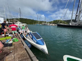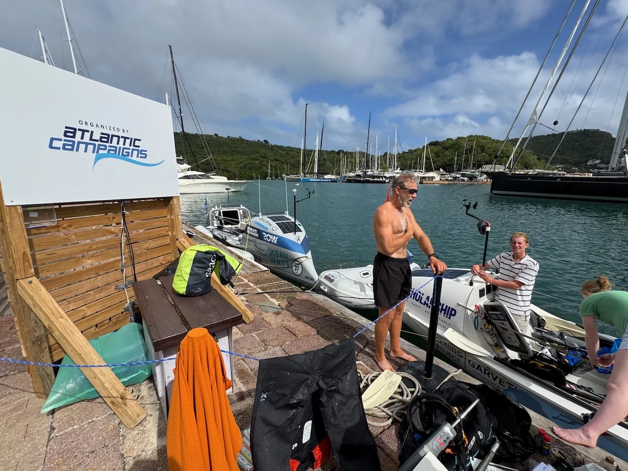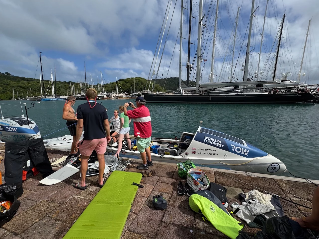 In Nelsons Dockyard liegen nach wie vor die tollen Yachten der Superreichen. Heute gab es aber noch etwas anderes, viel Faszinierenderes zu sehen. Nur ein paar Stunden vorher war ein Zweier-Ruderboot (!!!) nach 42 Tagen Überfahrt von der kanarischen Insel La Gomera hier angekommen. Die Crew bestand aus Vater und Sohn, die sich stolz den Offiziellen und Touristen an der Pier präsentierten.