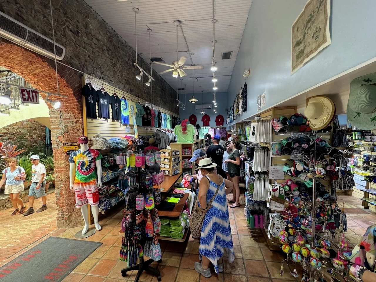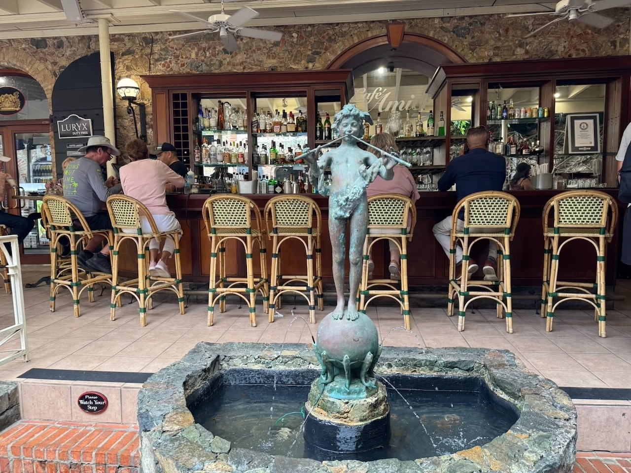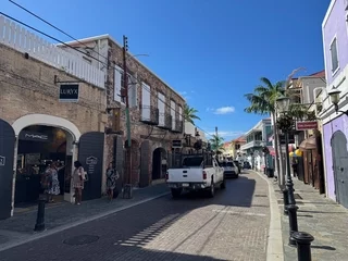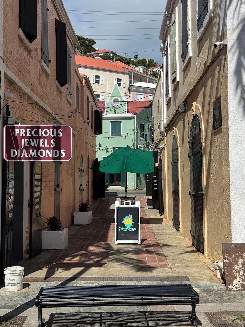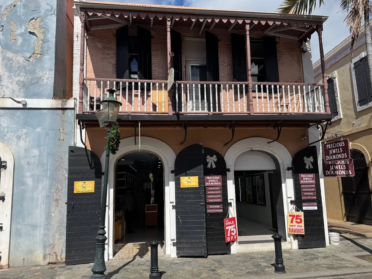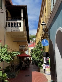 In der Stadt hat sich in den letzten 14 Jahren nicht viel geändert. Nach wie vor finden sich in den kleinen Gassen Shop neben Shop. Hauptsächlich sind es Juweliere, Parfümerien, Schnaps und Bekleidung. Alles was Rang und Namen hat (Hilfiger, Boss, Rolex, Cartier, Luis Vitton, Prada etc..) ist gleich mehrfach vertreten. St. Thomas ist zollfreies Gebiet und entsprechend ist der Andrang der überwiegend amerikanischen Kreuzfahrttouristen. Selbst die Öffnungszeiten sind auf die Ankunfts-und Abfahrtszeiten der Schiffe ausgerichtet. Das gilt in gleichem Maße für die zahlreichen Restaurants, Bistros und Cafés. Und die Preise hier sind trotz Duty Free gepfeffert und natürlich abgesprochen unter den Händlern.