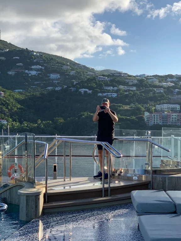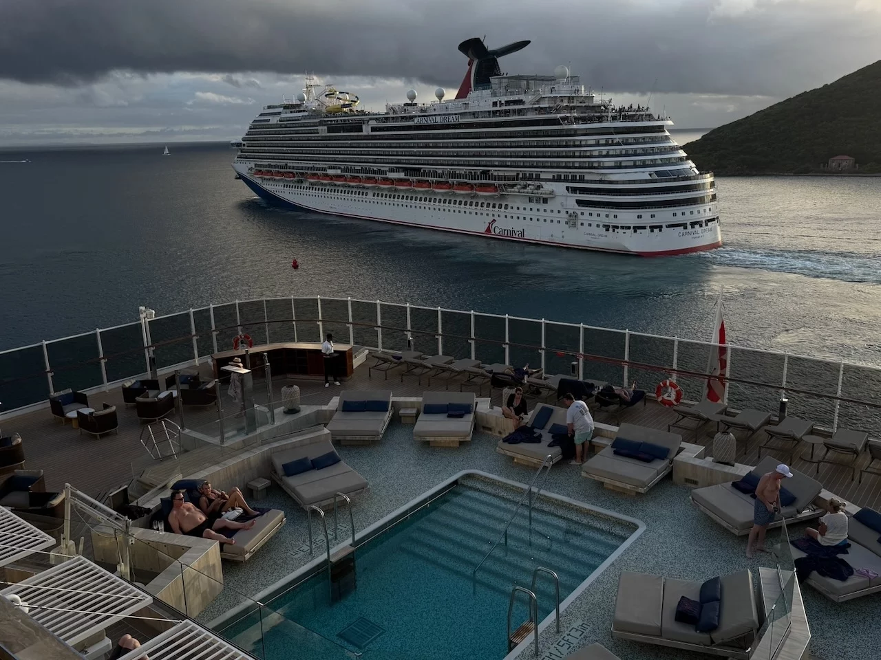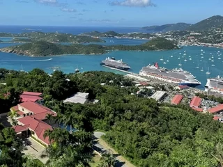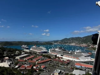 Am späteren Nachmittag verlies die Carnival Dream St. Thomas. Für Laien ohne Kapitänspatent ein interessant zu beobachtendes Manöver, denn sie lag quasi im Sandwich zwischen uns und der MSC Meraviglia. Nun braucht so ein 306m langer und 37m breiter Riese schon etwas Platz zum "Ausparken". Und wenn es im Hafen von Charlotte Amalie etwas nicht gibt, dann ist es Platz.