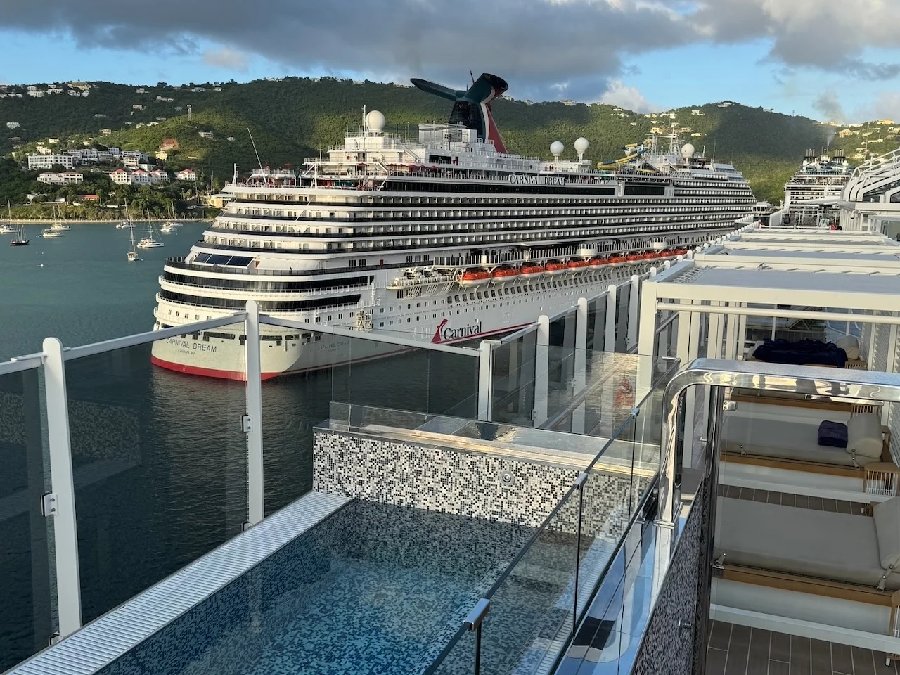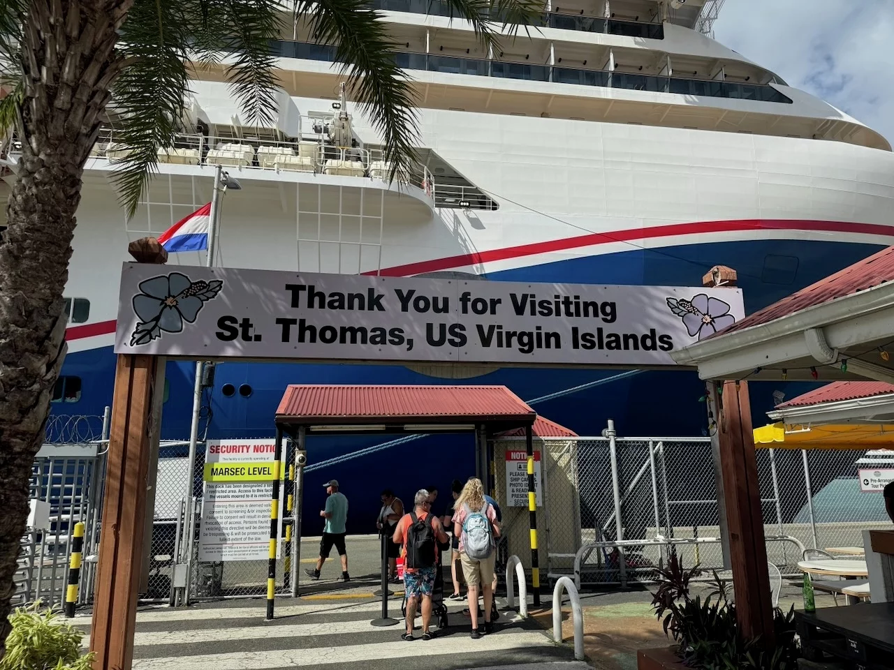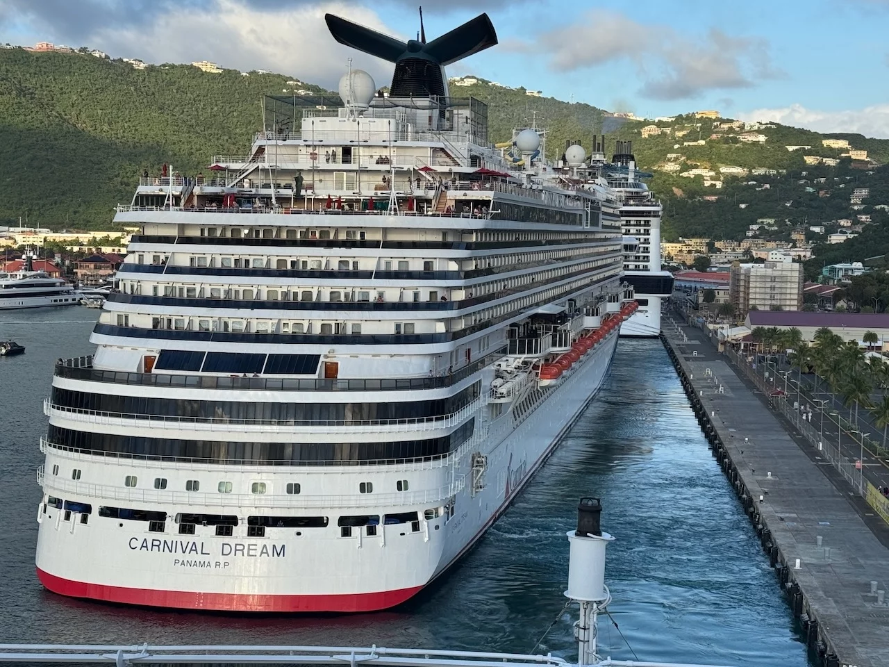 Pünktlich um 9:00 haben wir auf der Insel Saint Thomas in der Hauptstadt Charlotte Amalie festgemacht. Mit der Carnival Dream und der MSC Meraviglia lagen bereits zwei deutlich größere Pötte an der Pier.