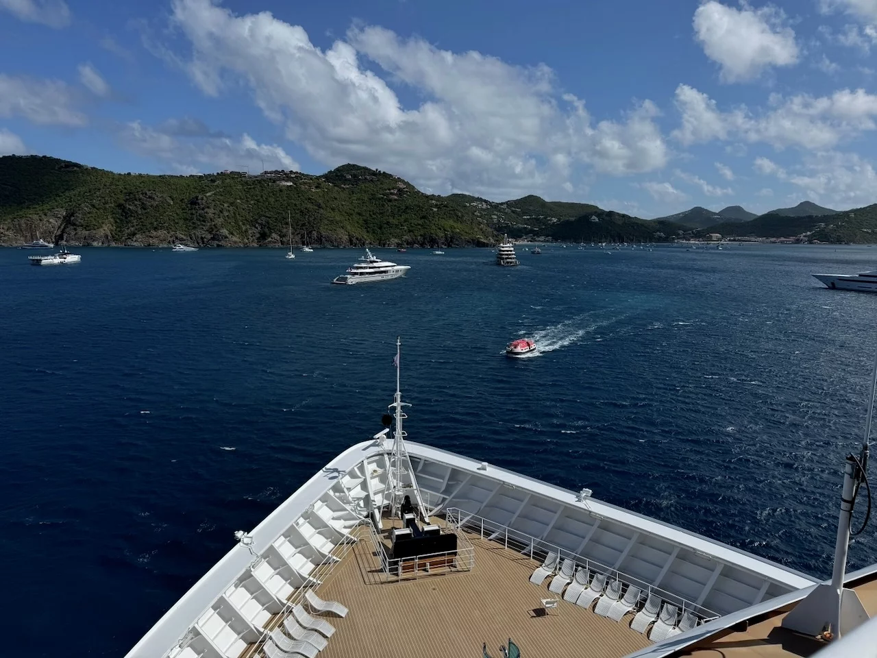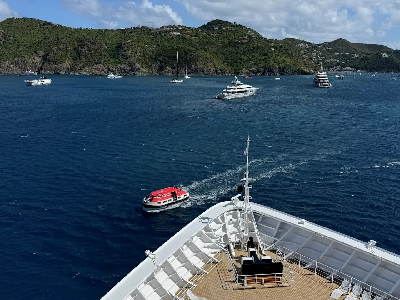 Heute morgen sind wir in St. Barth vor Anker gegangen. Richtigerweise müsste es heißen: in Gustavia, der Hauptstadt der Insel Saint Barthélemy, eines der französischen Übersee-Departments. Die Insel wird in der Umgangssprache aber nur Saint Barth genannt.
