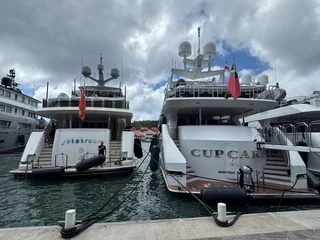 Bei der Überfahrt bekamen wir bereits eine Idee, warum die Insel ihren Beinamen trägt, denn es war ein kleiner "Slalom" durch die vor Anker liegenden Jachten.