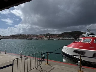 Das Wetter war sehr durchwachsen mit ständigen Wechseln zwischen Sonne und Wolken, garniert mit einem gelegentlichen Regenschauer. Leider führte das auch dazu, dass das Tendern deutlich erschwert war. Kurze Wellen mit einer Höhe zwischen 1-1,5 Metern ließen das Tenderboot sehr stark schwanken. Für den Umstieg vom Schiff zum Tender wurden viele helfende Hände gebraucht. Der Umstieg an Land war auch nicht viel einfacher, obwohl hier nur der Tender schwankte.