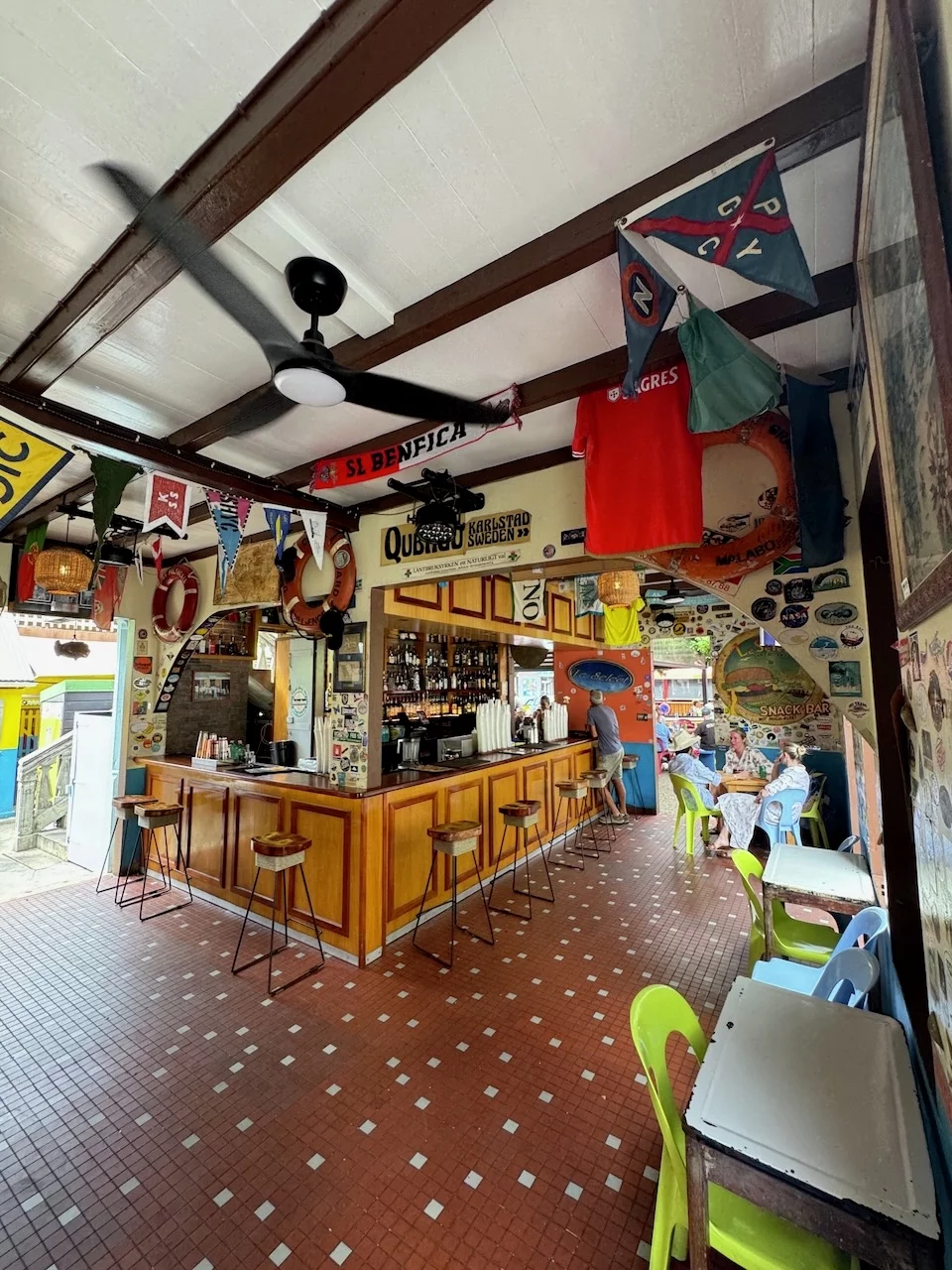 Weicht man ein wenig ab von den ausgetretenen Touristenpfaden, dann hat Gustavia allerdings seinen ganz eigenen Charme. Es hat sich gelohnt, trotz Hitze (30°) und Schwüle (90%) einer steilen Straße bergauf zu folgen. Die Belohnung war ein grandioser Ausblick über Stadt und Hafen.