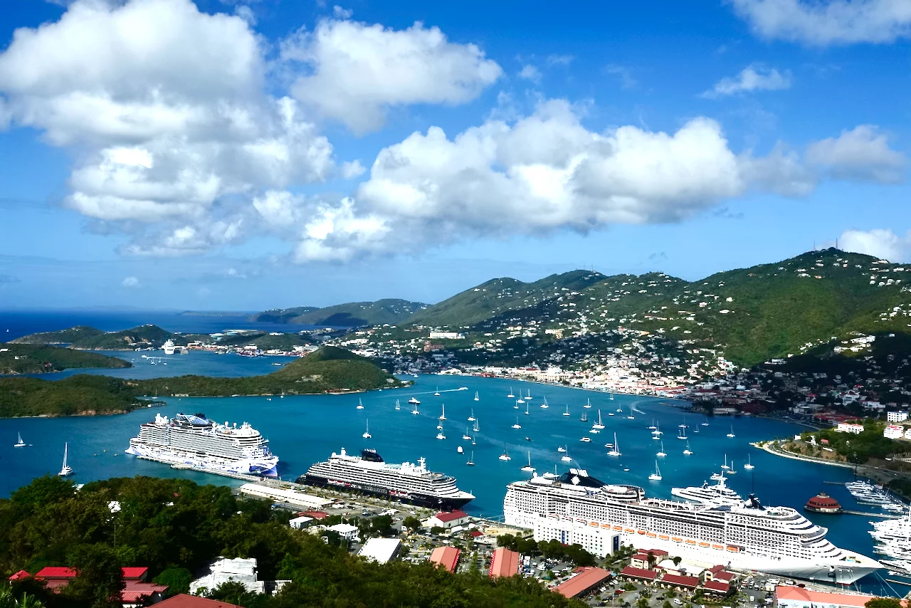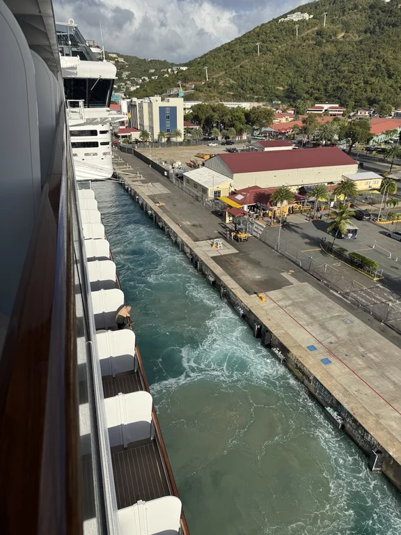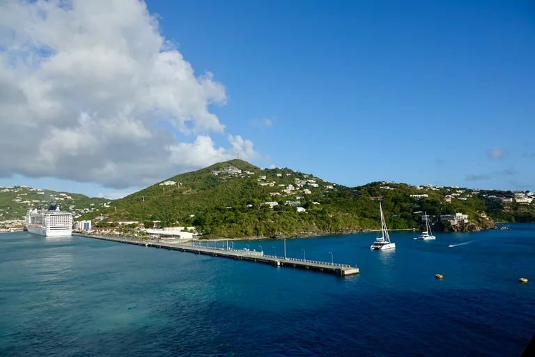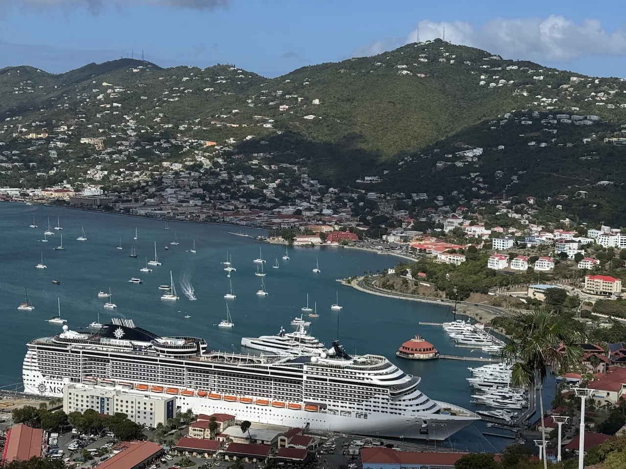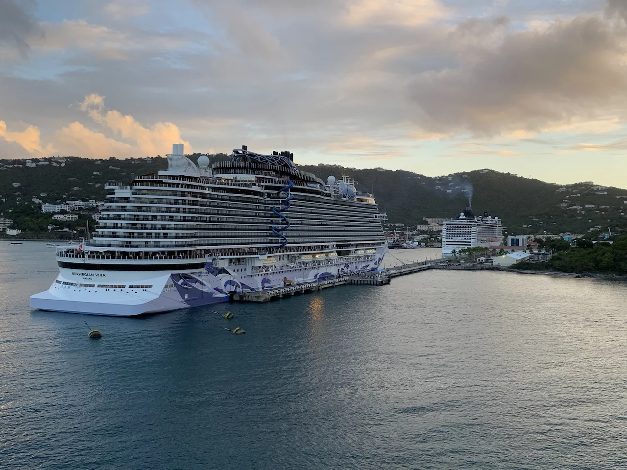 Pünktlich um 8:00 haben wir auf der Insel Saint Thomas in der Hauptstadt Charlotte Amalie zwischen der MSC Divina und der Norwegian Viva festgemacht.
