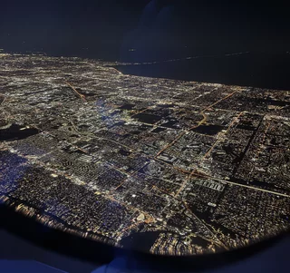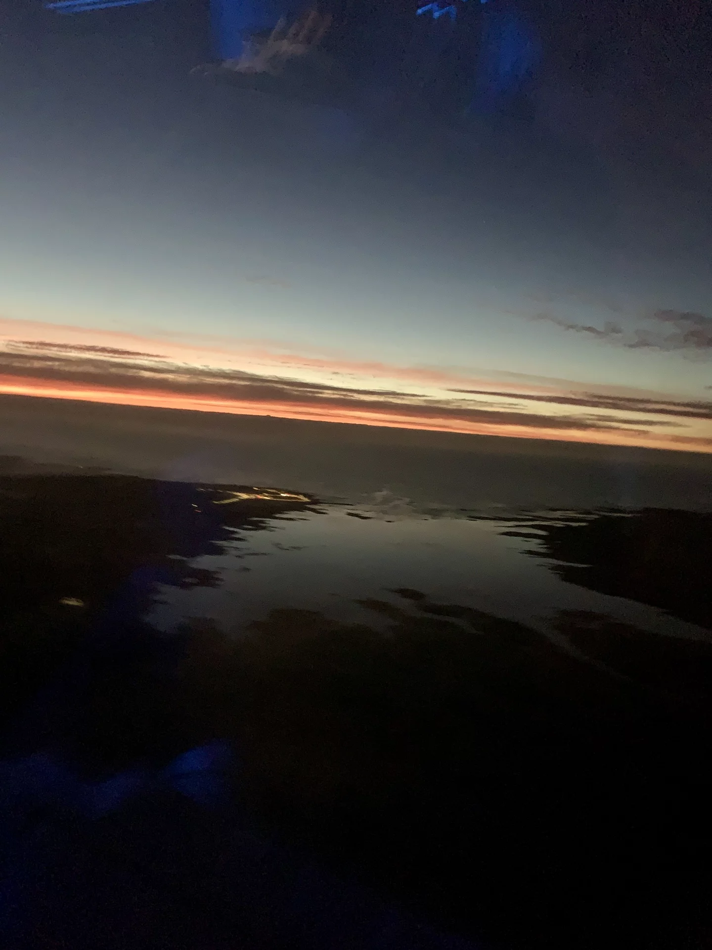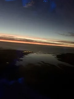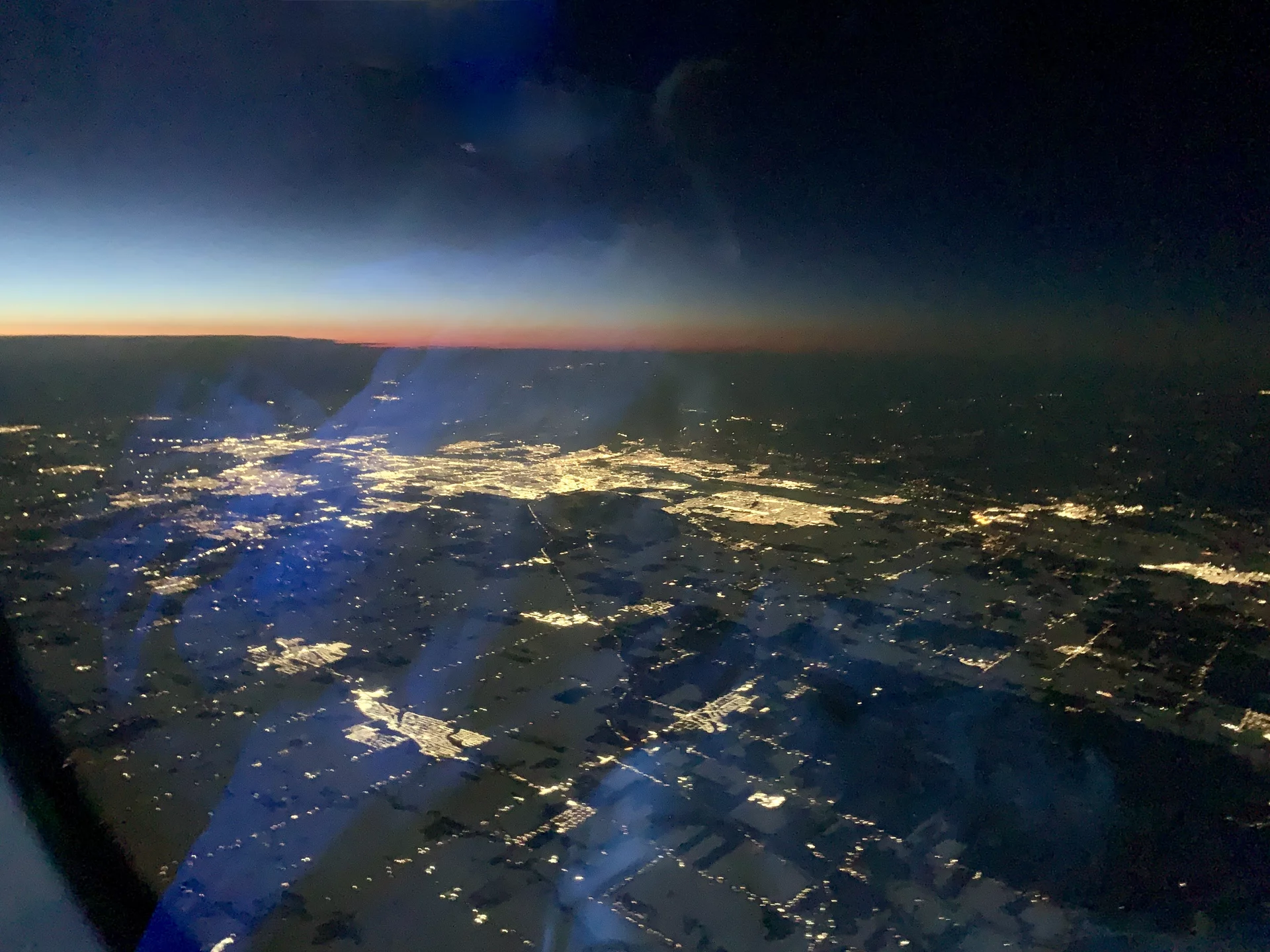 Irgendwie war die Szenerie draußen etwas seltsam und schön zugleich. Beim Abflug war es fast schon dunkel. Doch als wir die Reiseflughöhe von etwas über 10.000m erreicht hatten, bekamen wir quasi einen dauerhaften Sonnenuntergang geboten, weil die südwestliche Route fast konstant an der Tag/Nacht Grenze entlang führte. Erst beim Anflug auf Miami - es war schon kurz nach 20:00 Uhr Ortszeit - wurde es richtig dunkel, abgesehen vom Lichtermeer der großen Stadt unter uns.