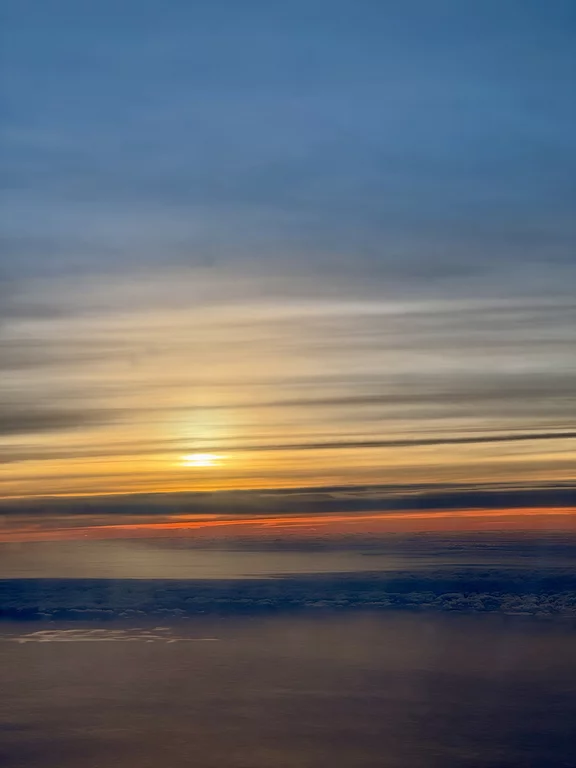 Nach einer knappen halben Stunde ging es dann endlich los. Sobald wir die dicke Schicht aus Regenwolken und Nebel durchflogen hatten, wurde die Welt wieder heller und wir konnten den sehr guten Service der Kabinencrew genießen.