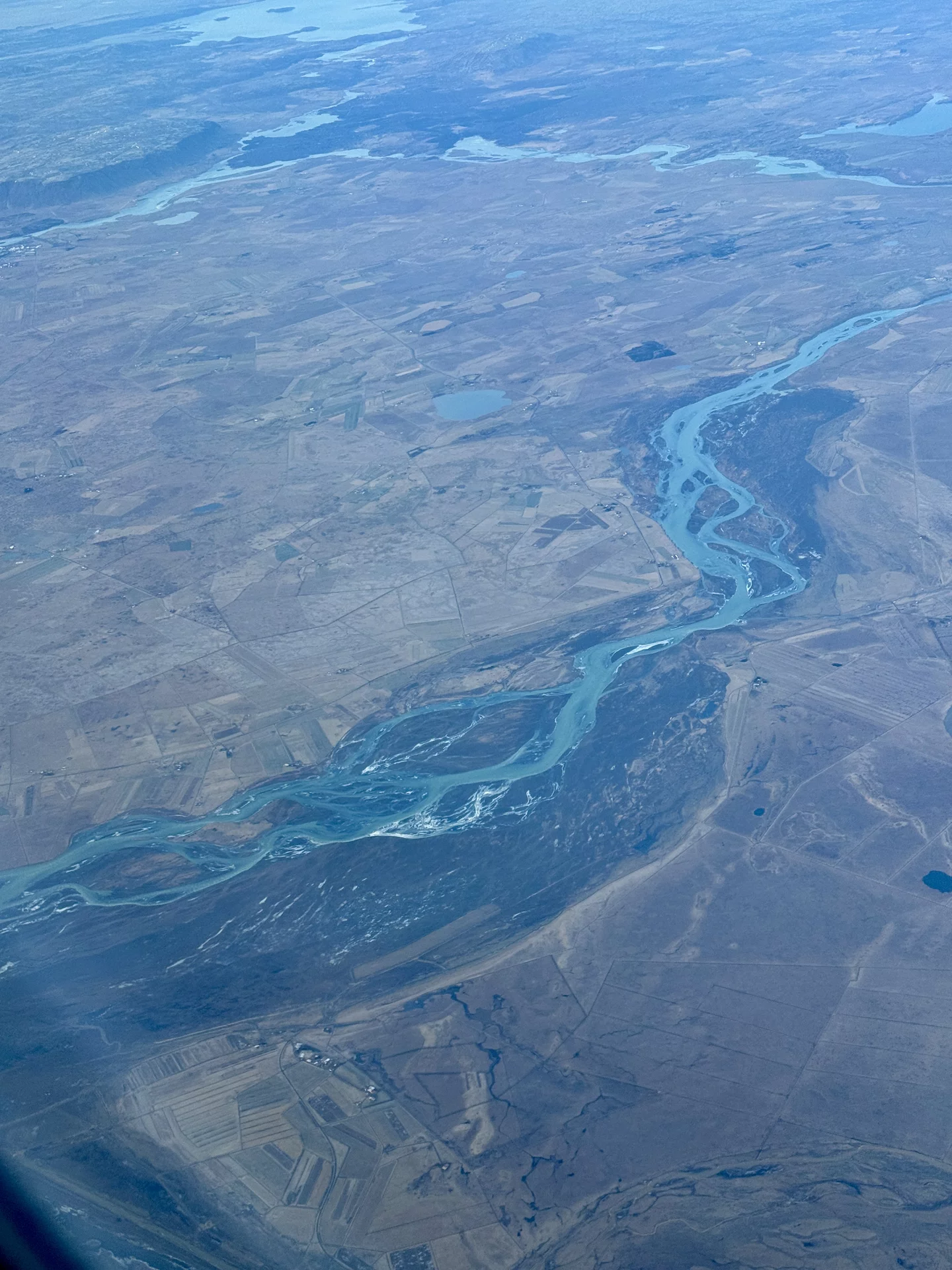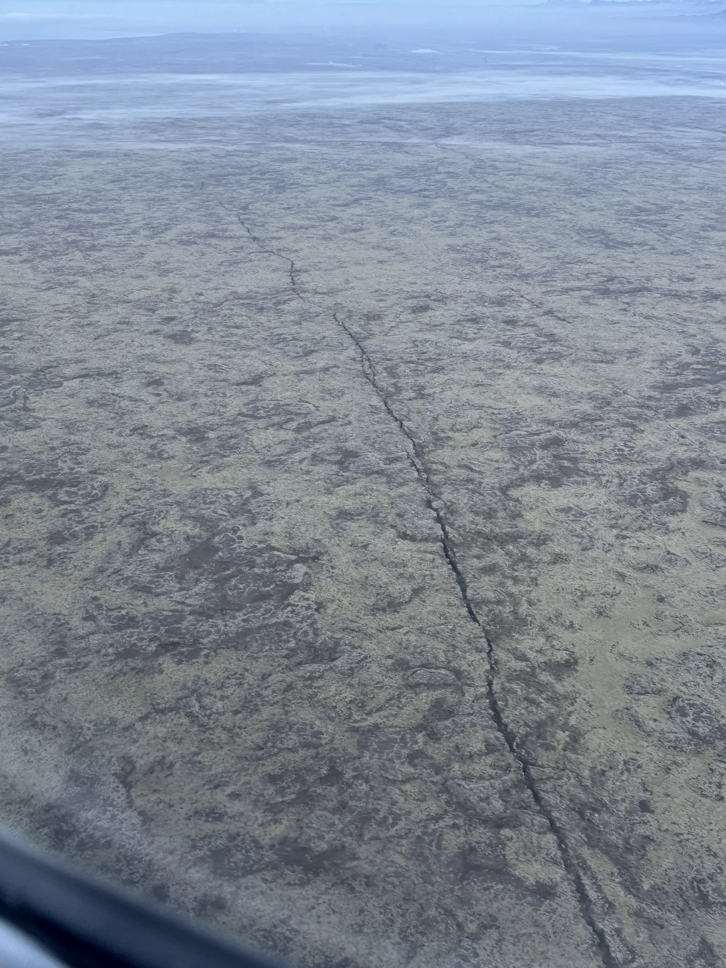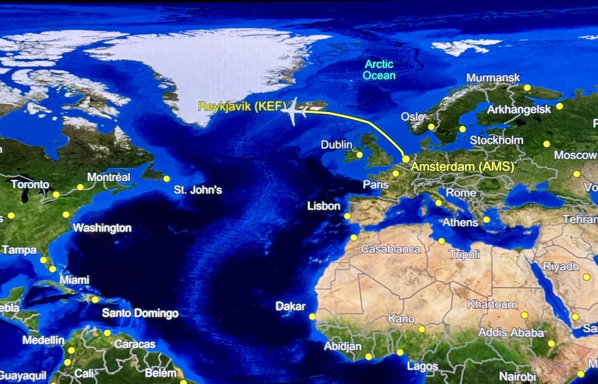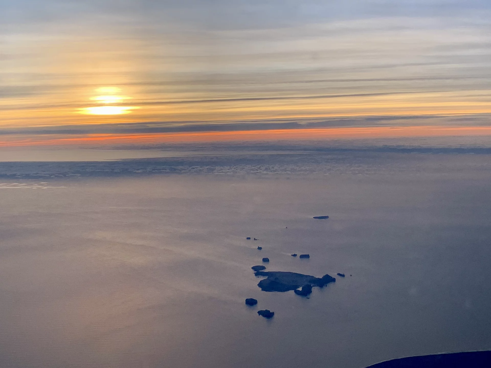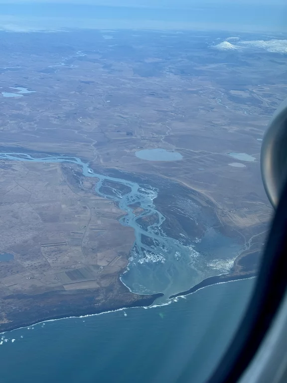 Der weitere Flug verlief ruhig, durch die Wolken unter uns gab's nichts zu sehen und so konnten wir ein wenig versäumten Schlaf nachholen. Kurz vor Island brach die Wolkendecke auf und wir hatten im Anflug auf Keflavijk einen spektakulären Blick auf Island von oben.