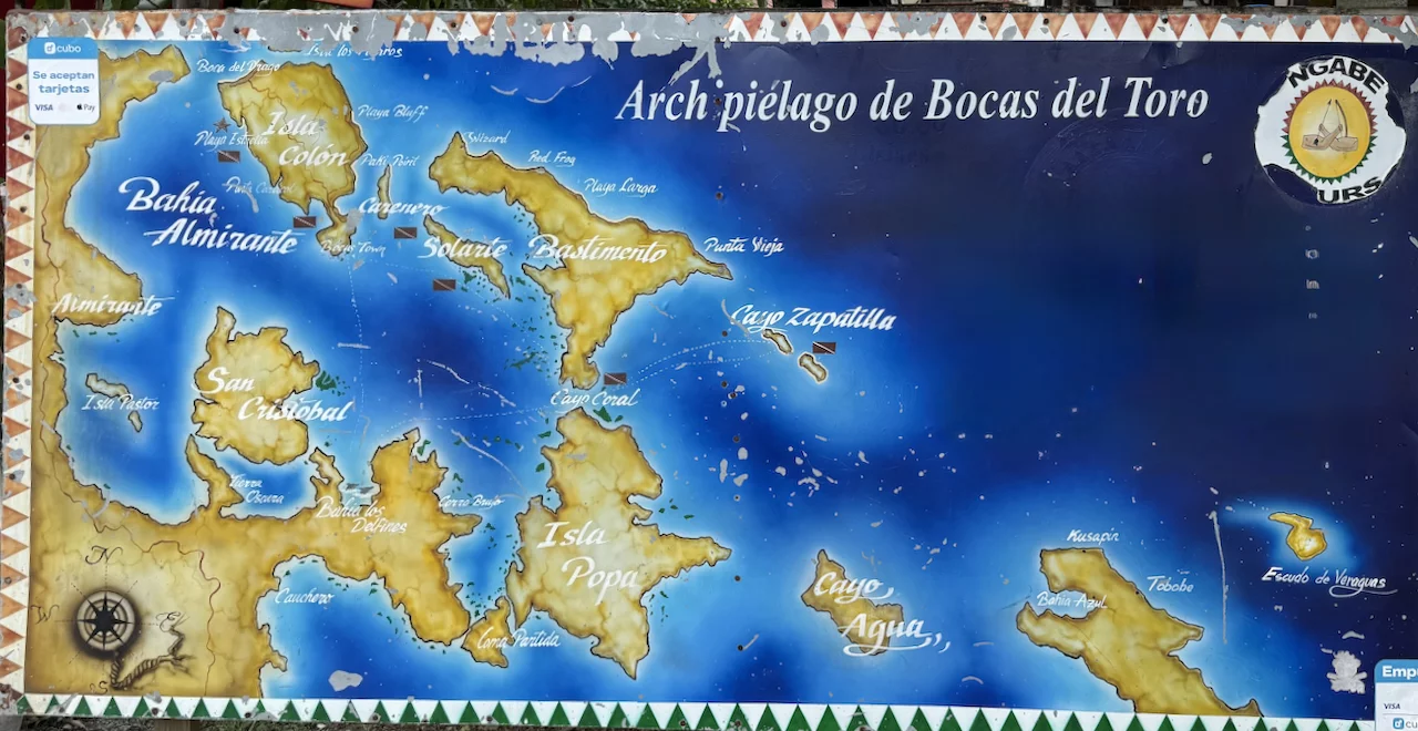 Heute waren wir in Bocas del Toro im Norden an der Grenze von Panama nach Costa Rica. Es ist ein Archipel, das aus mehreren Insel besteht. Interessanterweise heißt die Hauptinsel "Isla Colon". Übersetzt bedeutet Bocas del Toro „Münder des Stiers“. Warum sie den Plural von Boca = Mund gewählt haben ist nicht überliefert.