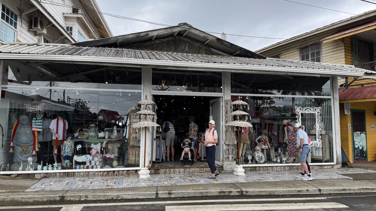 Viele Häuser der Stadt, die nah am Ufer liegen, sind quasi direkt ins Wasser gebaut und stehen deshalb auf der Wasser zugewandten Seite auf Stelzen. Ähnlich wie gestern in Colon war auch hier deutlich zu sehen, dass diese Stadt nicht gerade mit Reichtum gesegnet ist. Aufgefallen ist uns allerdings, dass die Leute ausgesprochen freundlich waren. Man konnte völlig unbehelligt in die Schaufenster schauen oder auch durch die Geschäfte laufen. Niemand hat versucht uns irgend etwas anzudrehen. Noch einer circa zweistündigen Runde sind wir mit unseren Eindrücken zurück zum Schiff. Hier ist eine kleine Auswahl.