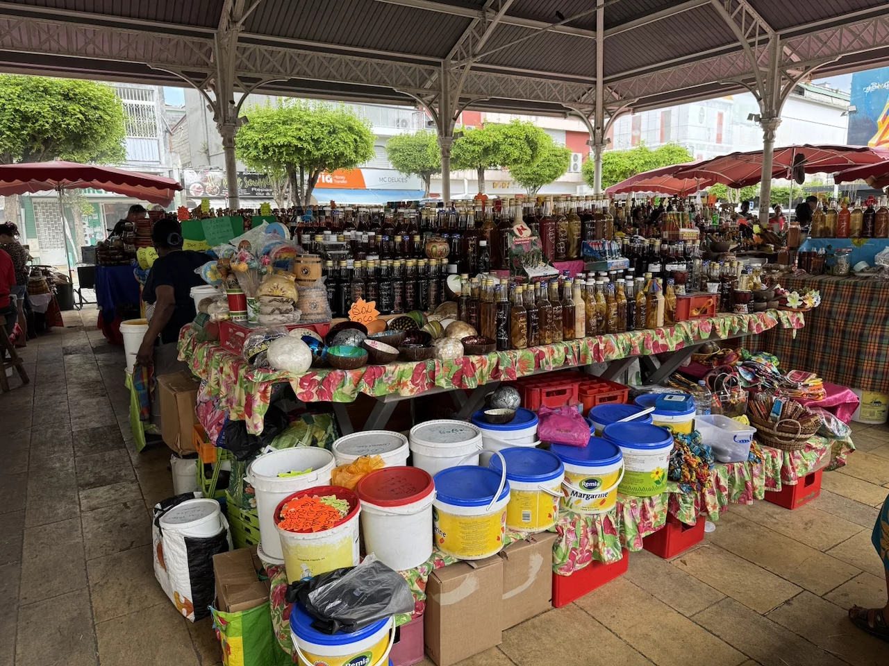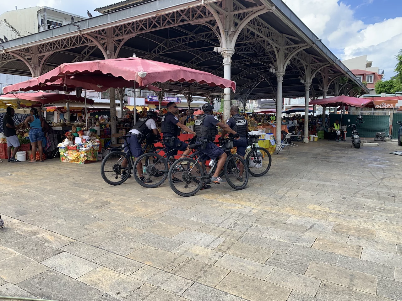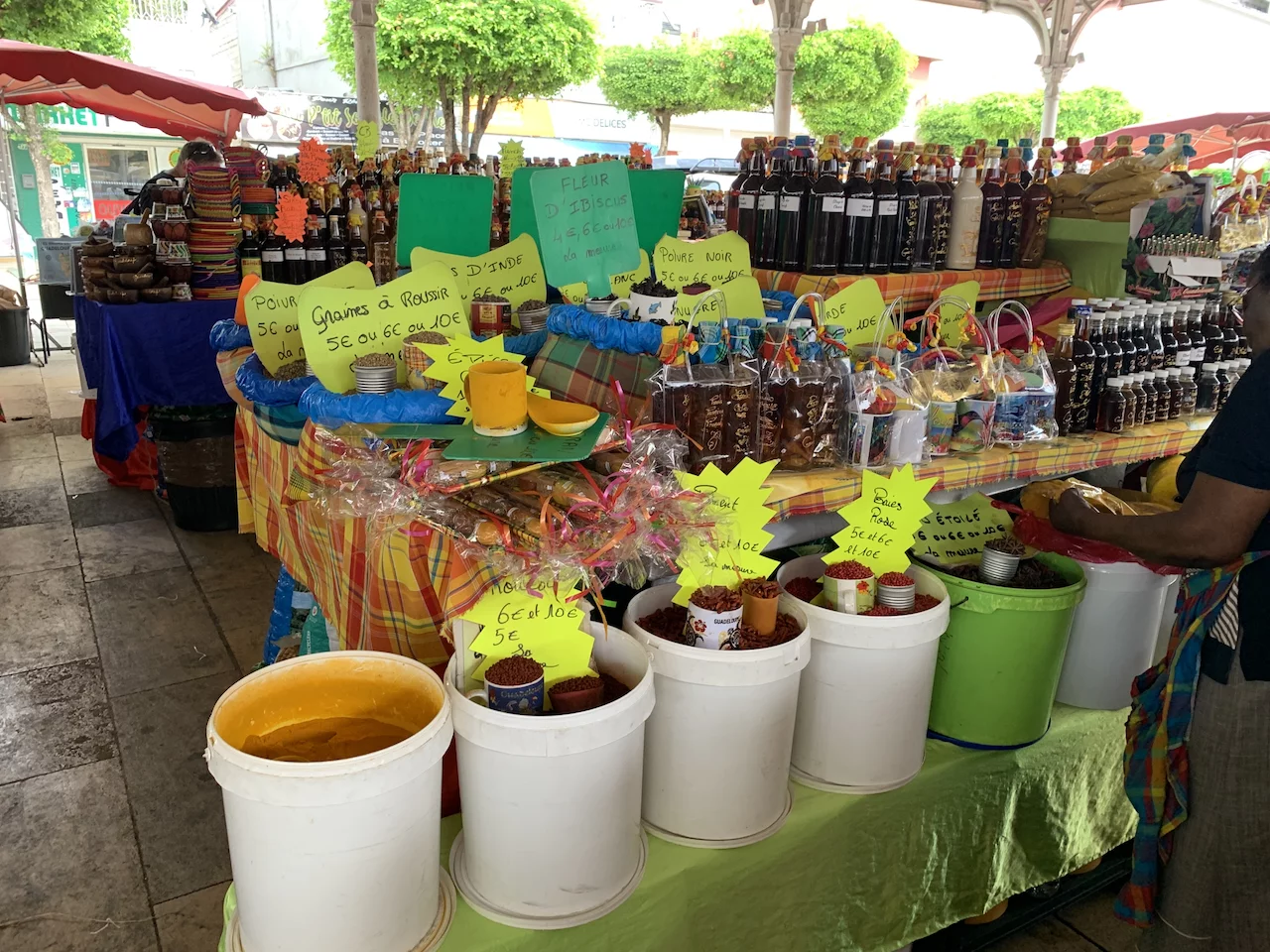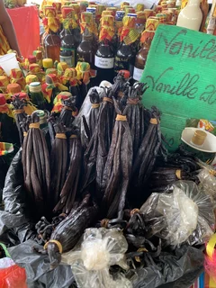Obwohl es Sonntag war, hatte der Gewürzmarkt geöffnet. Es duftete kräftig nach Curry und vielen anderen Gewürzen. Jeder Stand bot neben Gewürzen auch Obst, Gemüse sowie ganze Bündel von Vanilleschoten an. Natürlich gab es keinerlei Preisunterschiede!! Und auch die radfahrende Gruppe von Polizisten war wieder da.