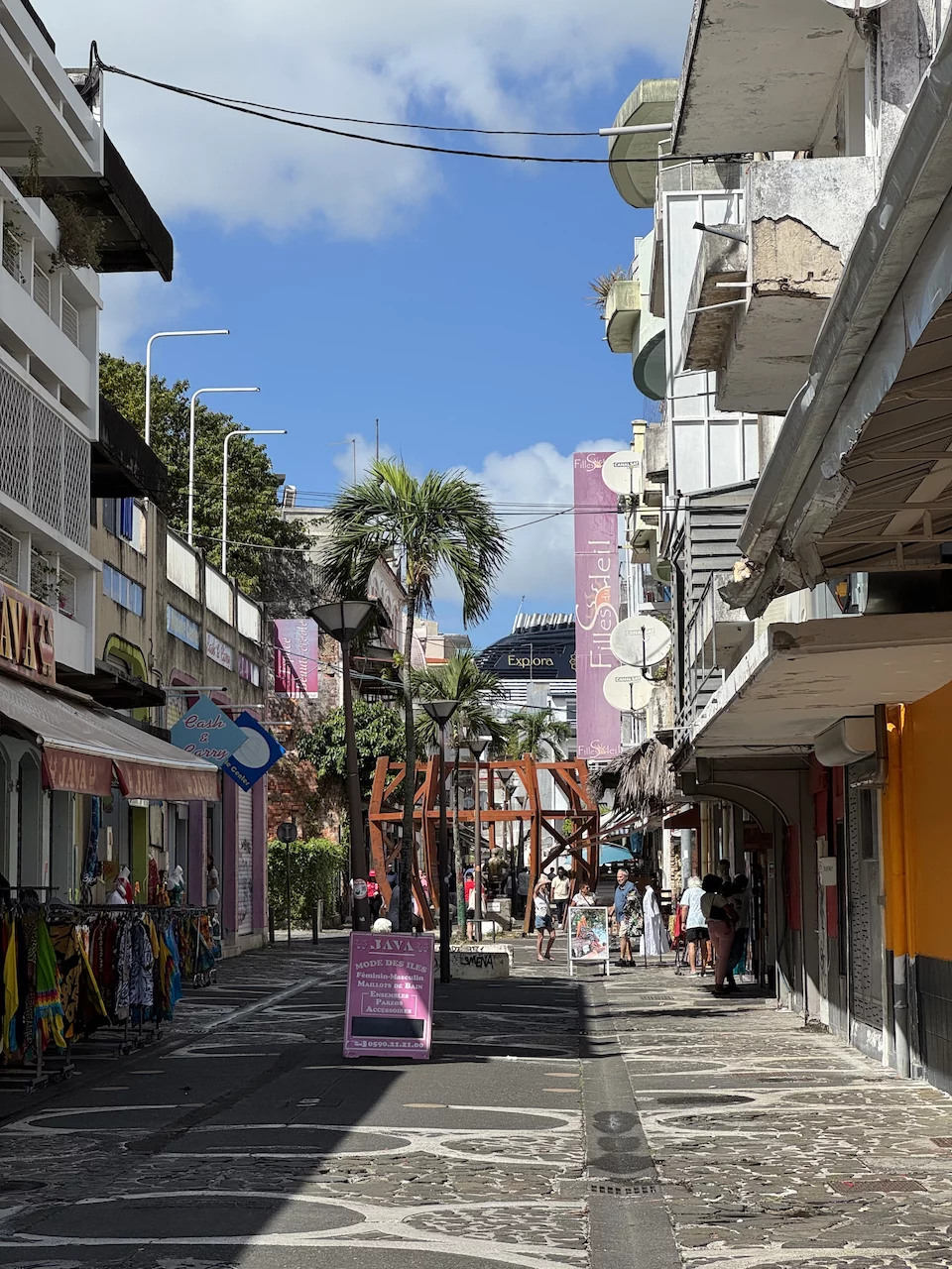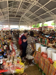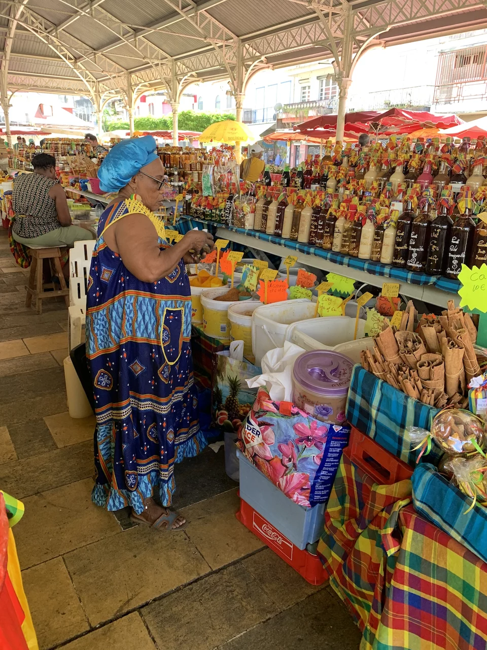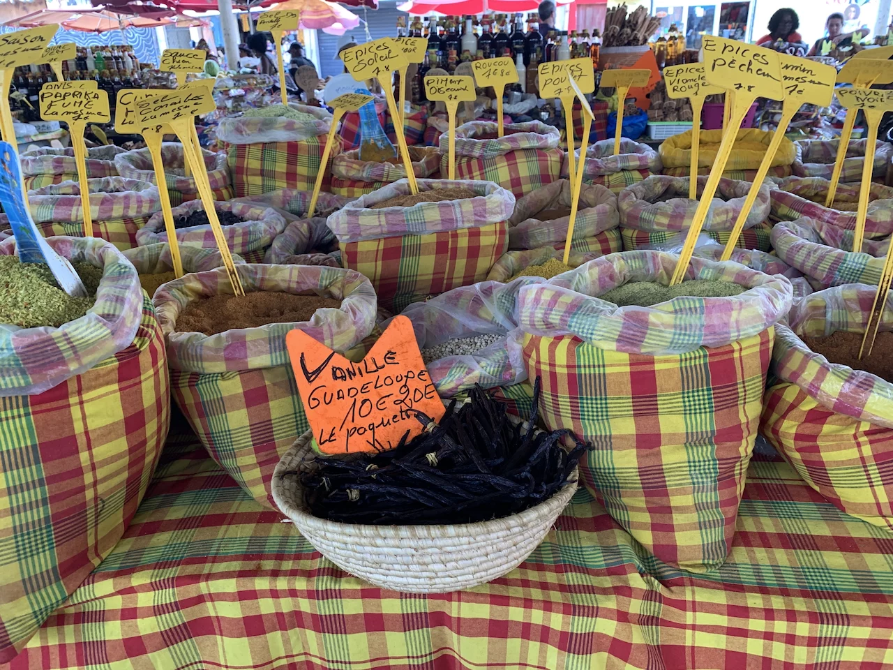 Obwohl es Sonntag war, hatte der Gewürzmarkt geöffnet. Es duftete kräftig nach Curry und vielen anderen Gewürzen. Jeder Stand bot neben Gewürzen auch Obst, Gemüse sowie ganze Bündel von Vanilleschoten an. Natürlich gab es keinerlei Preisunterschiede!! Und auch die radfahrende Gruppe von Polizisten war wieder da.