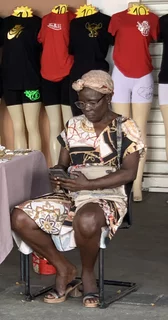 Immer wieder sieht man Frauen neben einem Tisch mit billigen