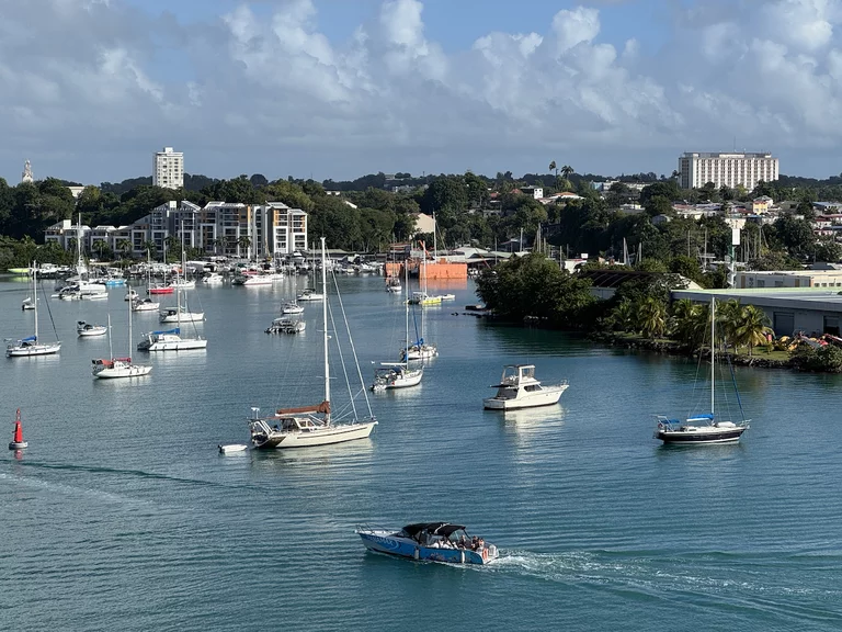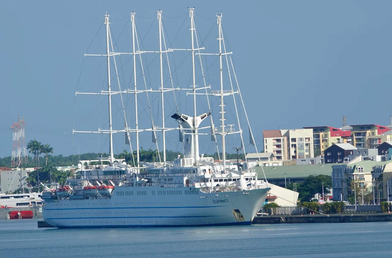 Hauptinseln Basse Terre und Grand Terre. Die Kreuzfahrtschiffe