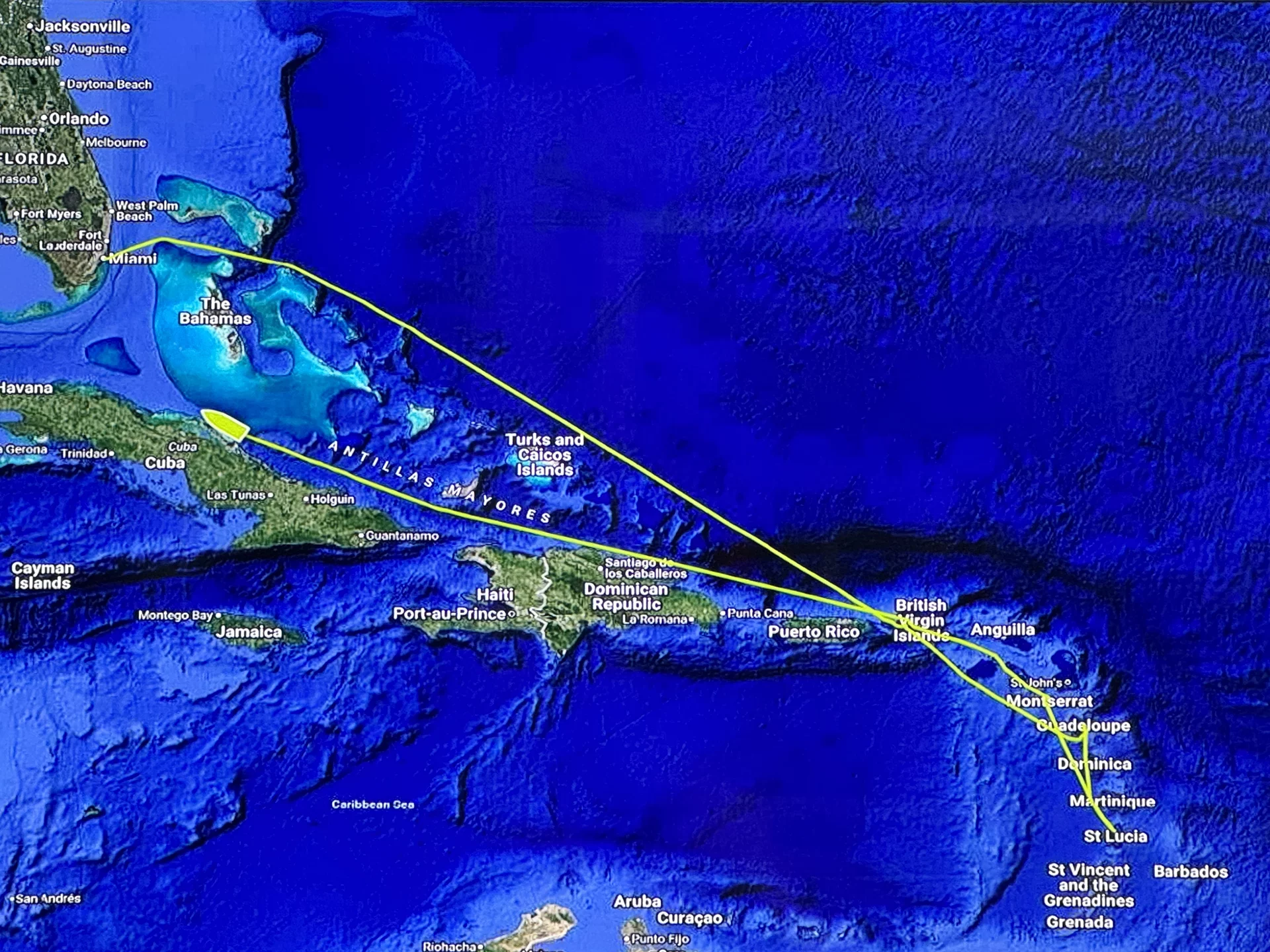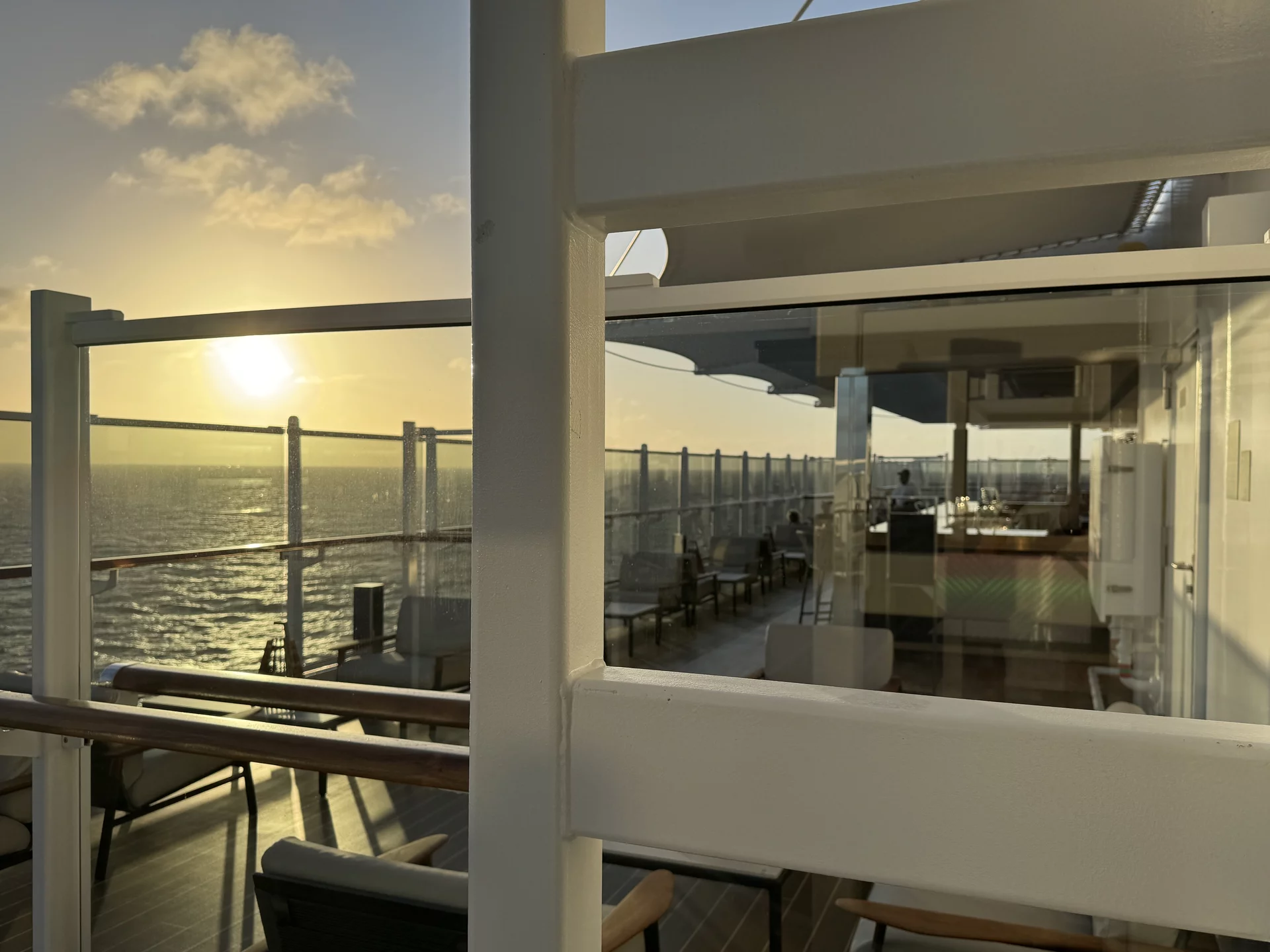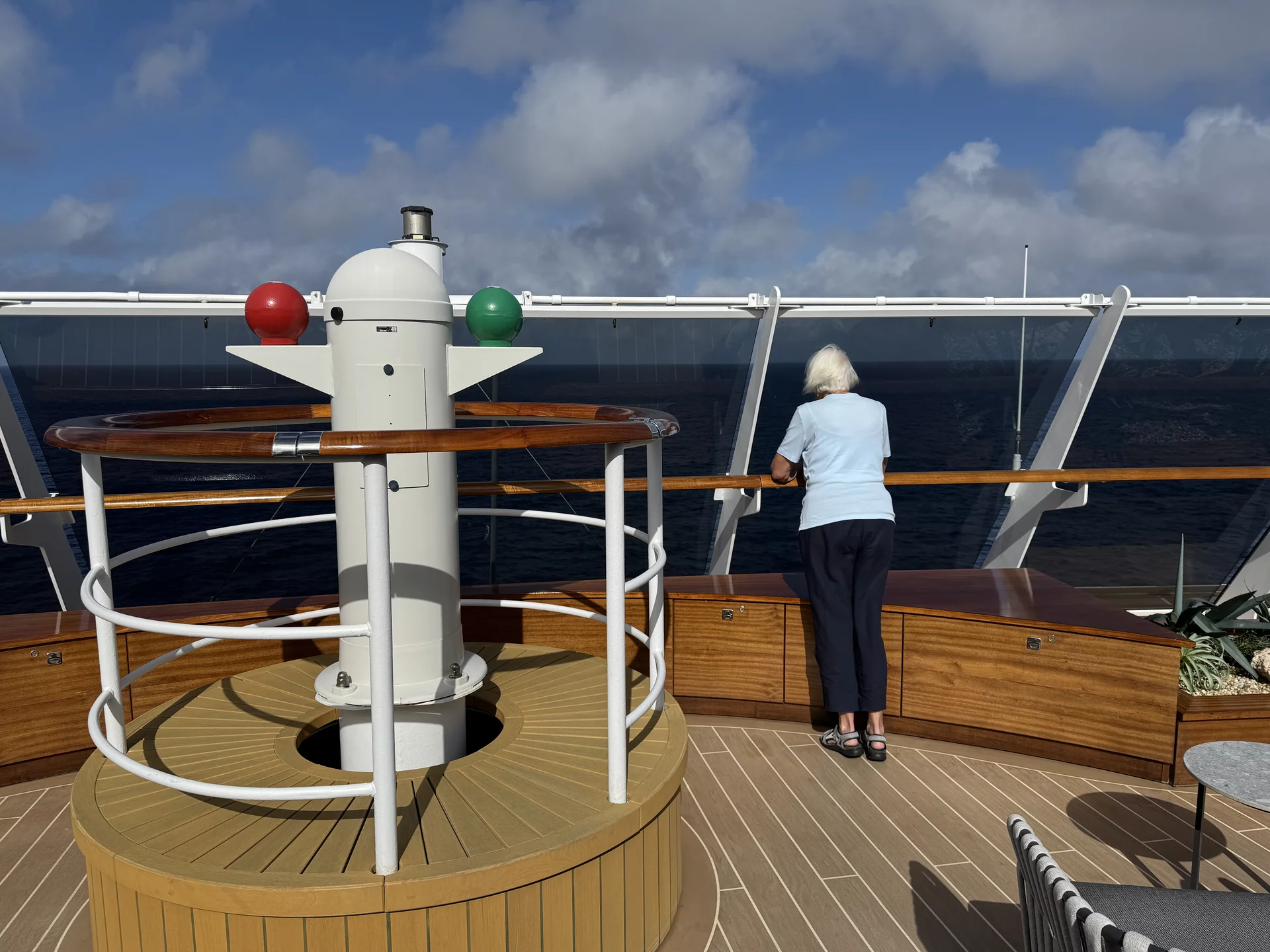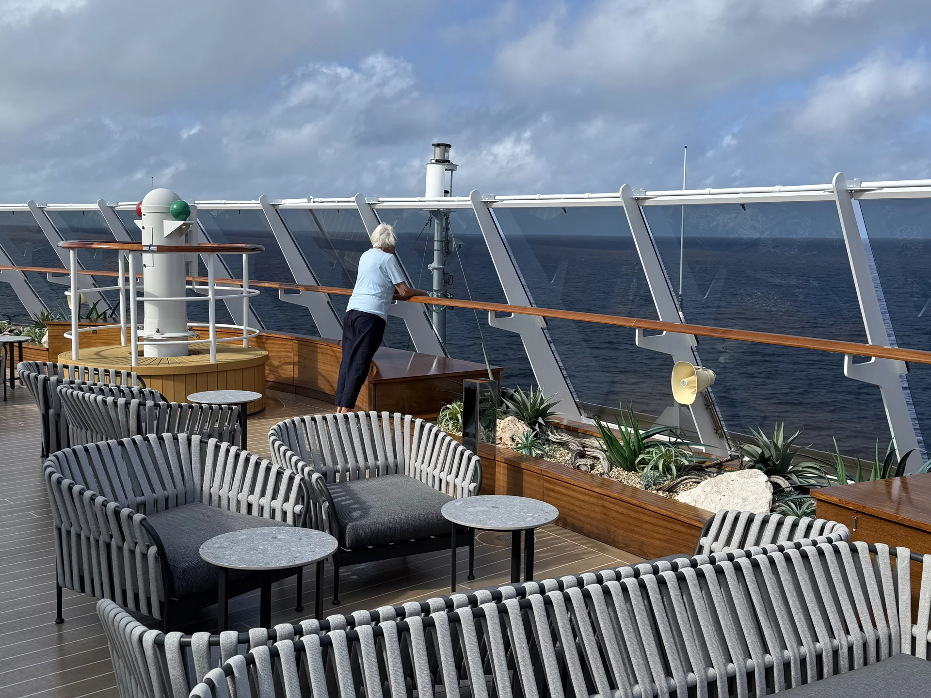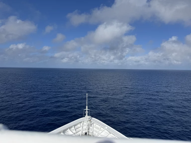 Am Samstagmorgen befanden wir uns bereits zwischen Kuba und den Bahamas. Das Positionsbild zeigte leider nur zu deutlich, es ist nicht mehr weit bis Miami. Also schnell nochmal ein paar Bilder für schöne Erinnerungen an den Blick auf den Ozean und dieses herrliche Schiff machen.