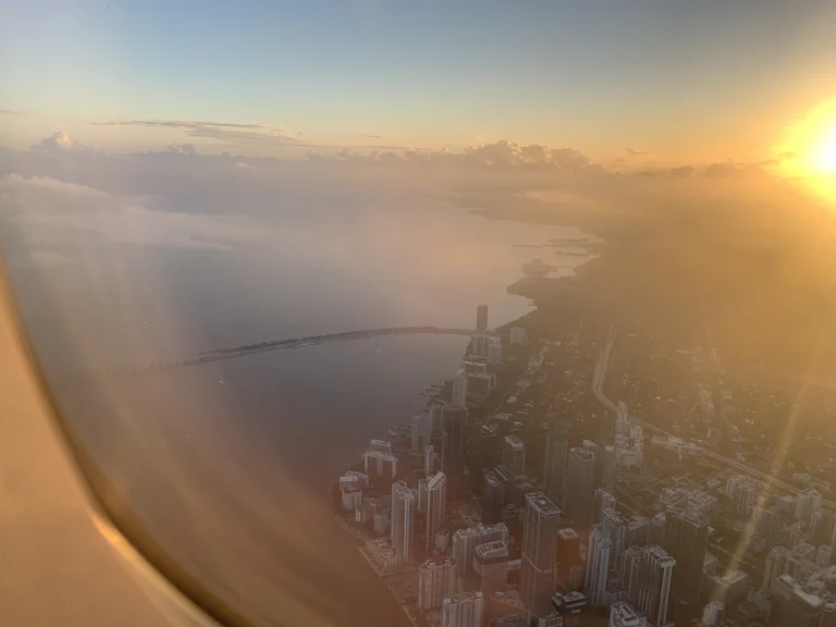 Der ging dann auch recht pünktlich. Lottchen hat noch ein paar schöne Bilder beim Start von der abendlichen Wolkenbildung gemacht. Vielleicht waren diese Wolken bereits ein Zeichen von dem, was wir auf dem Rest des Fluges von Miami nach Keflavik erleben sollten.