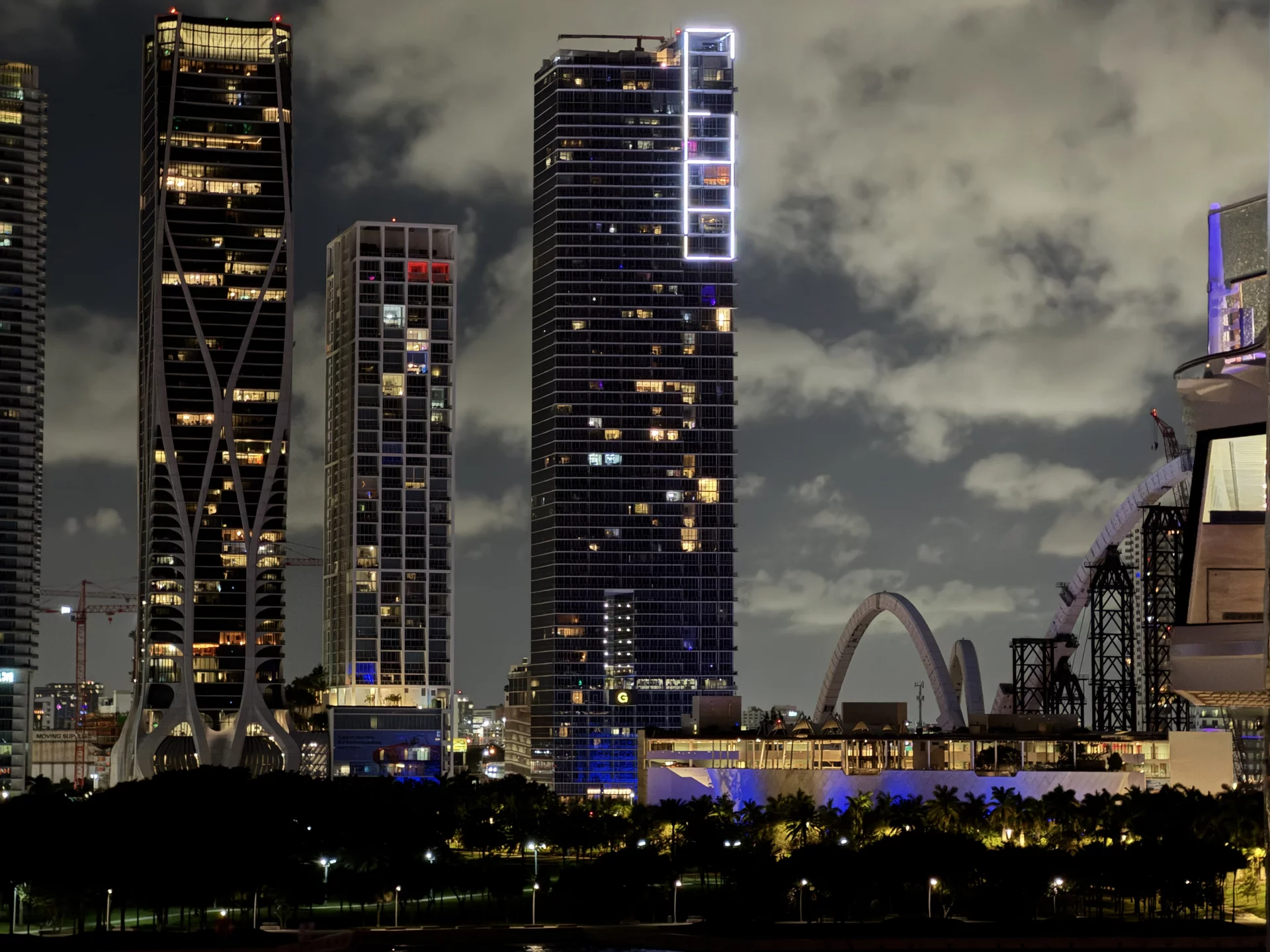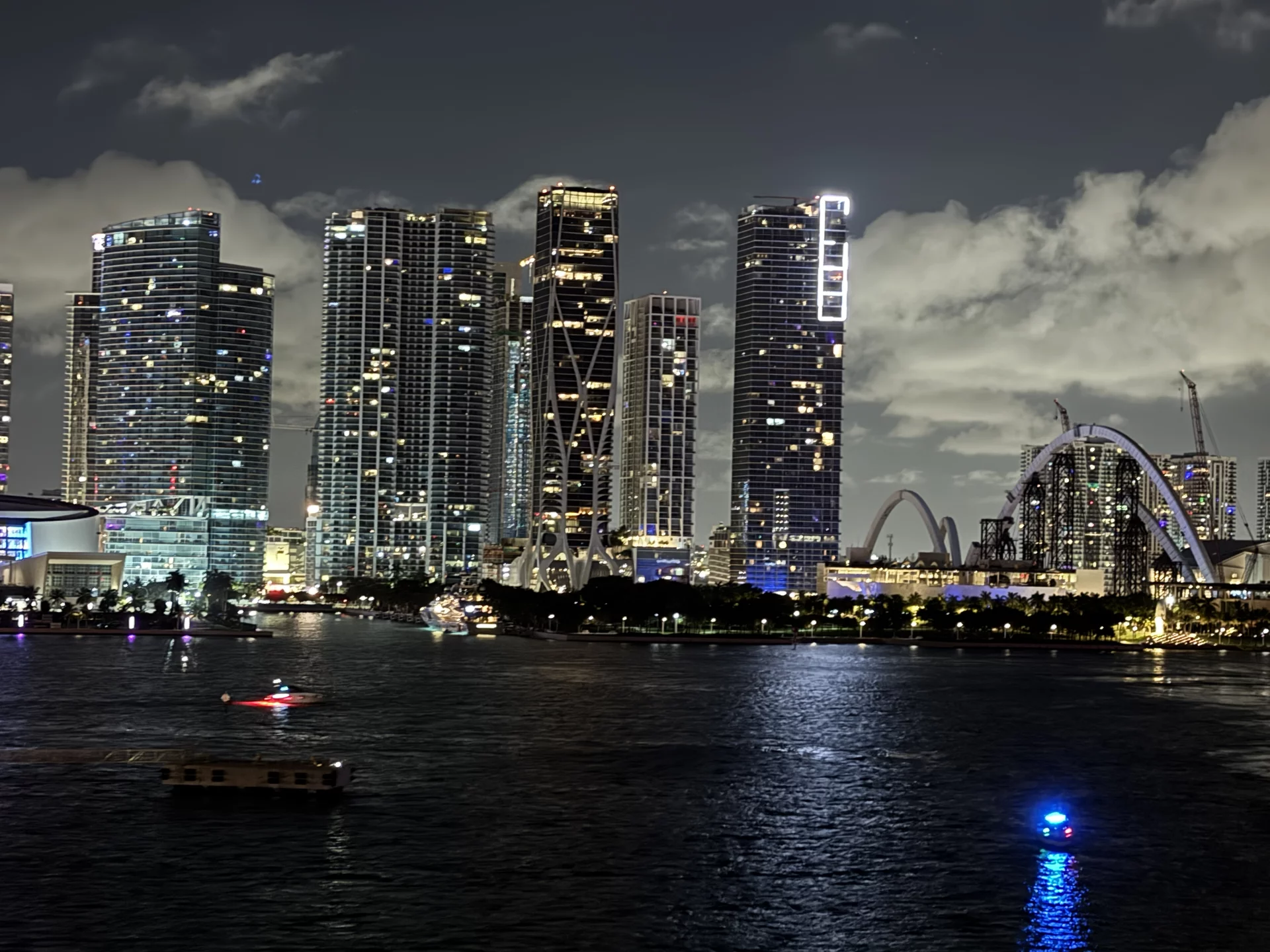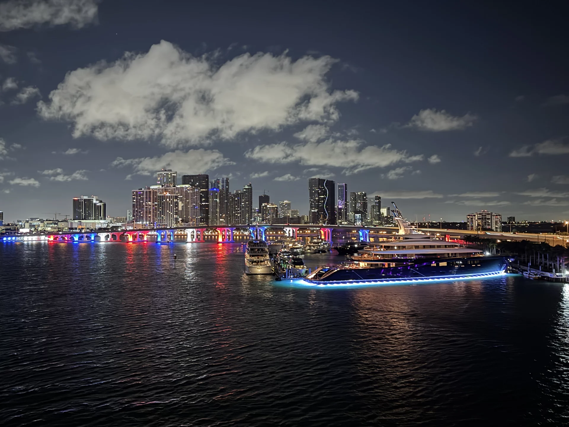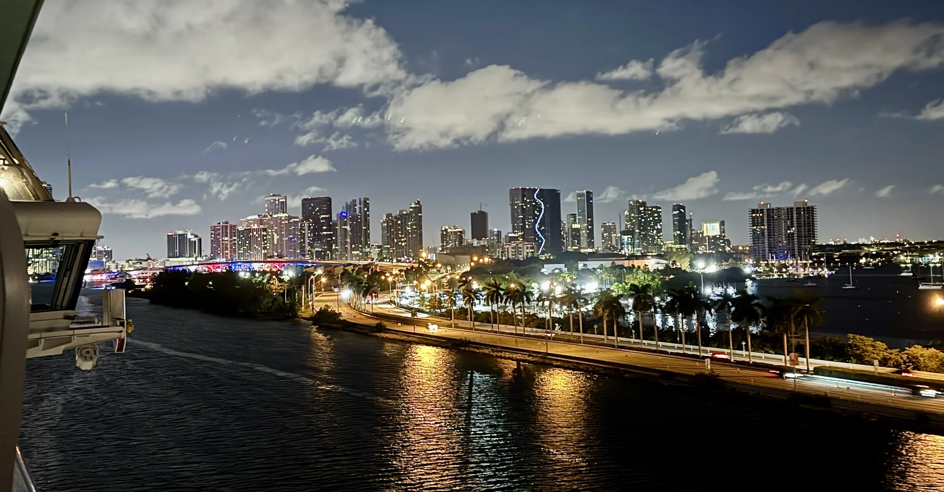 Erlebnis, bei Dunkelheit im Miami Cruise Port