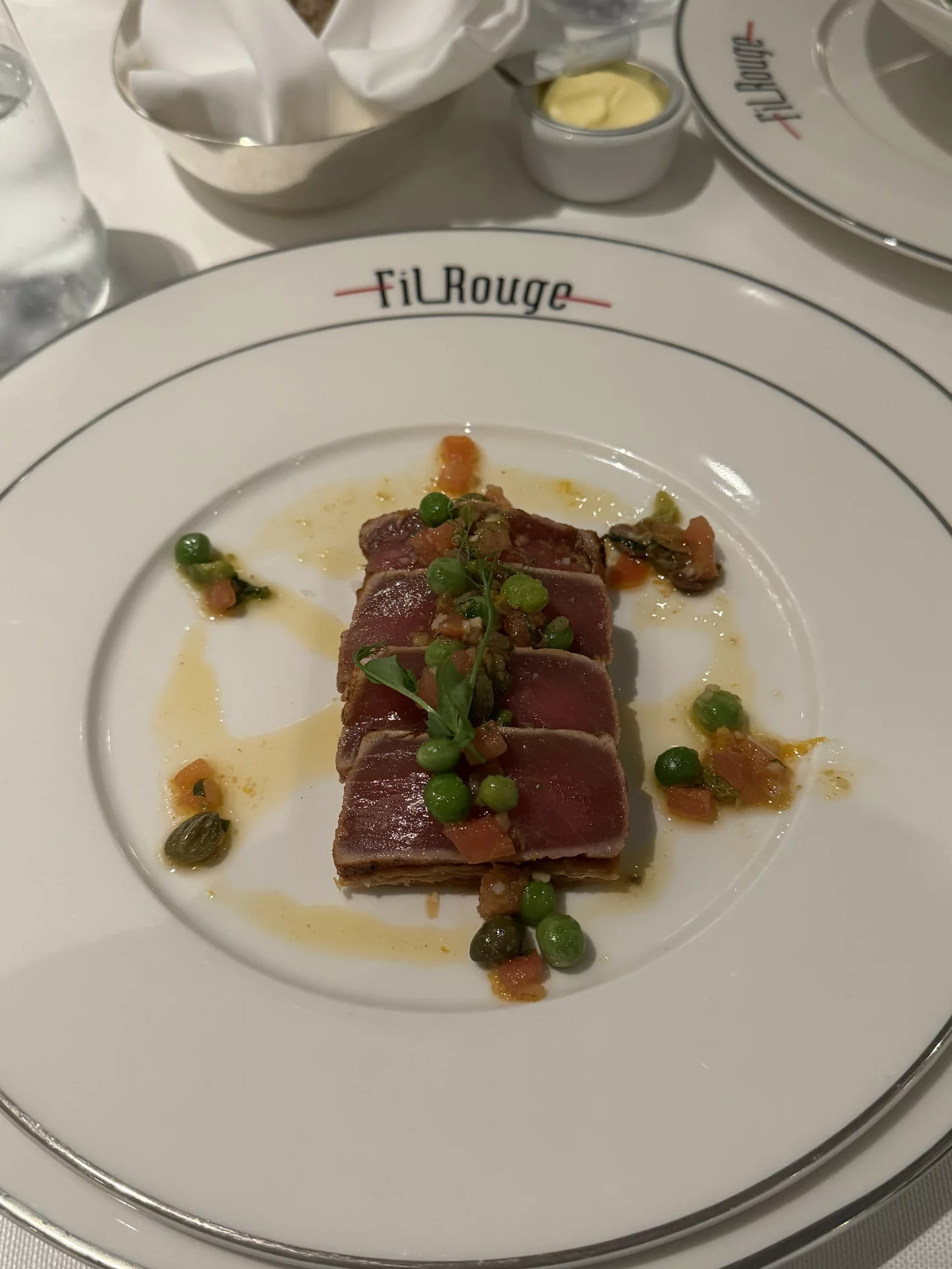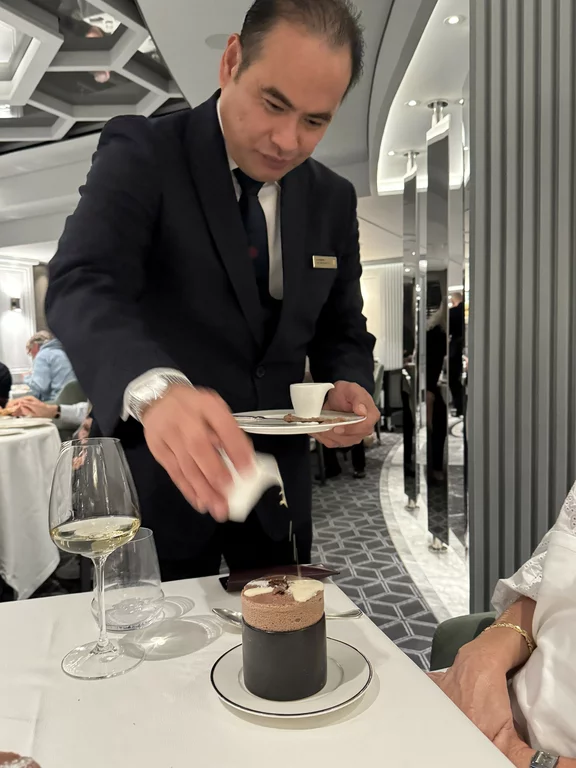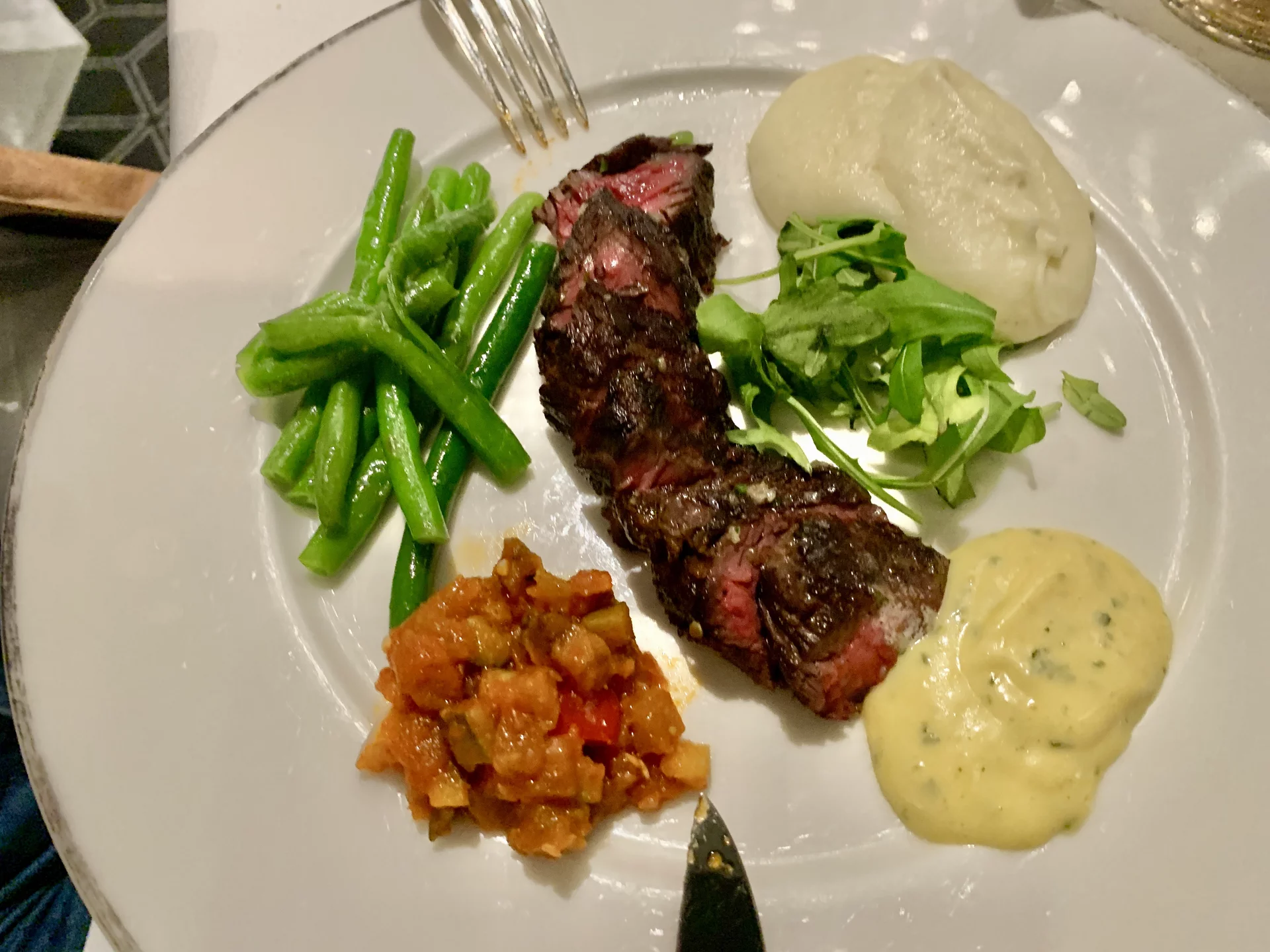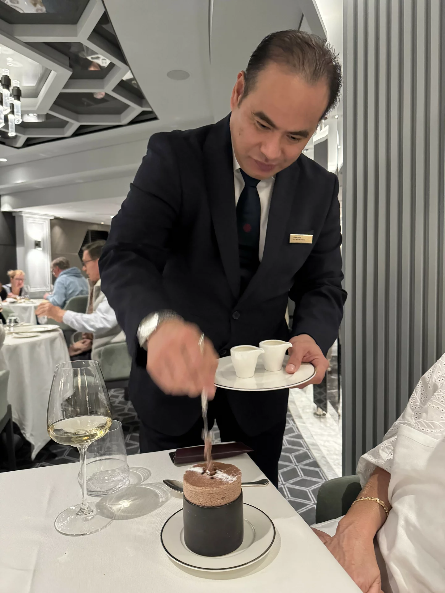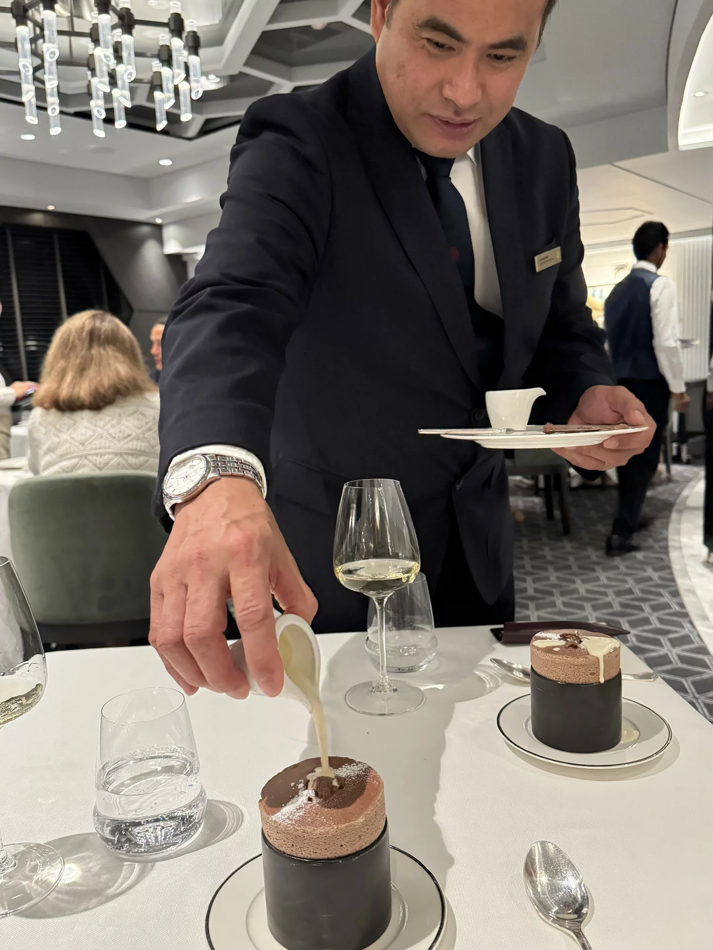 Am Samstagabend hatten wir nochmal eine Reservierung in unserem Lieblings-Restaurant "Fil Rouge" . Am letzten Tag der Reise gibt es dort traditionell das Chocolat Soufflee zum Dessert. Das wollten/konnten wir uns einfach nicht entgehen lassen. So wie es momentan aussieht, gibt es das für uns erst wieder im Juni 2027 in Alaska. Es sei bemerkt, nicht nur das Soufflee, sondern das gesamte Dinner war köstlich.