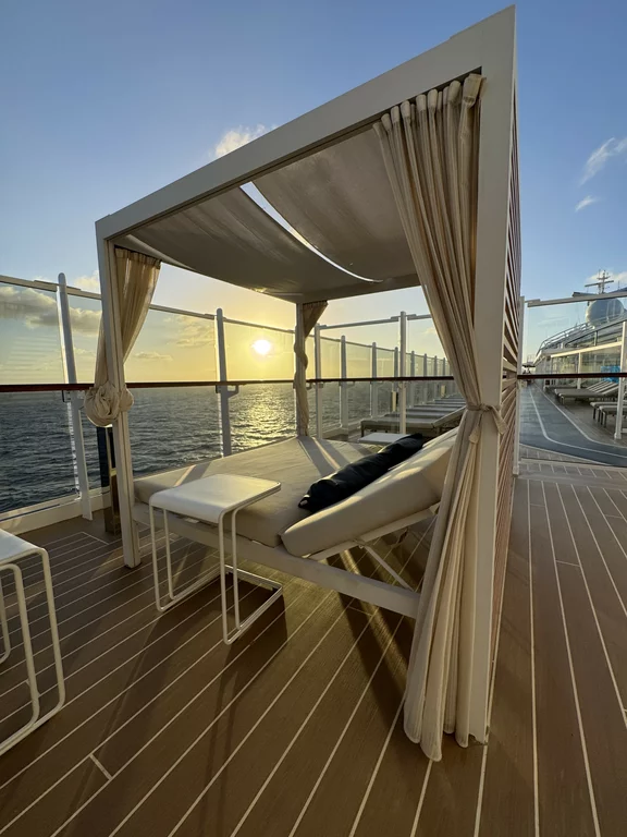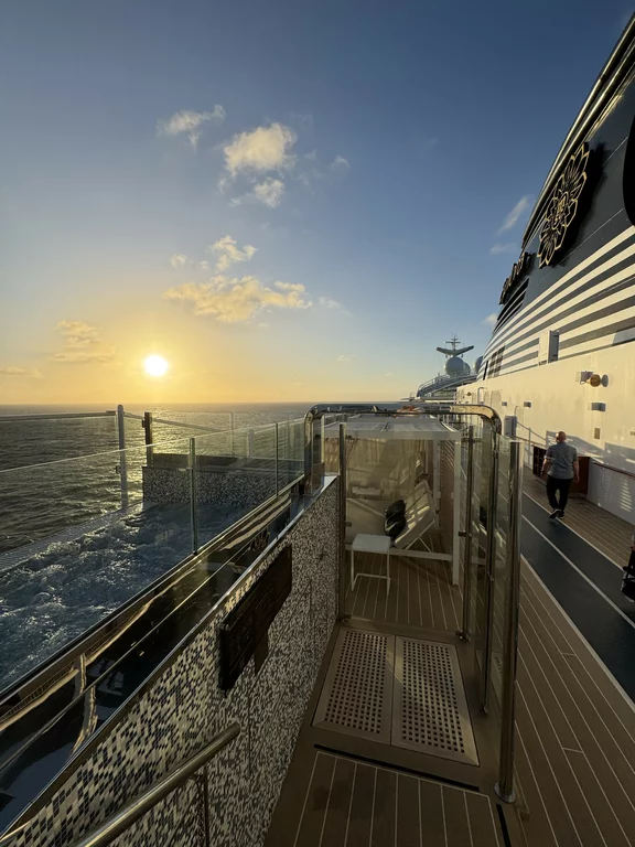 Freien den Sonnenuntergang und ansonsten das Schiff genießen.