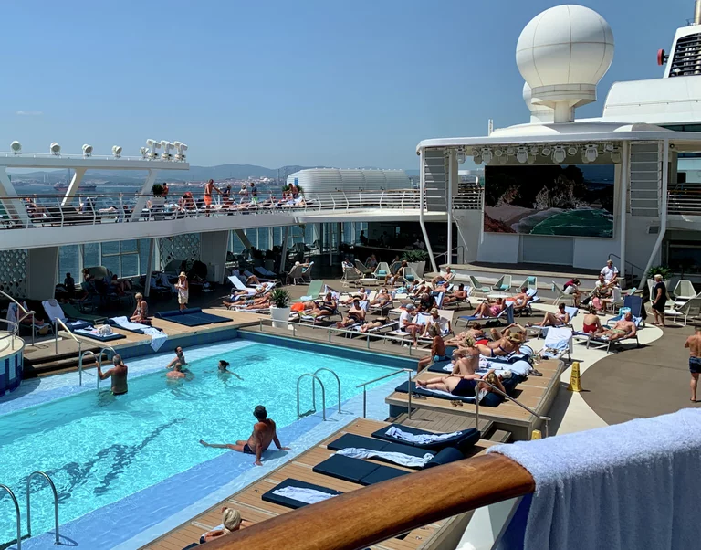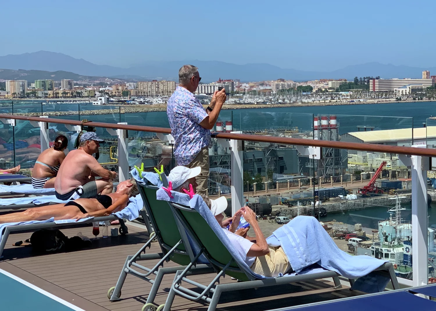 Eine große Anzahl von Passagieren die Gibraltar schon kannten hatten das Schiff erst garnicht verlassen. Entsprechend gut besucht waren die Pools und das Sonnendeck.