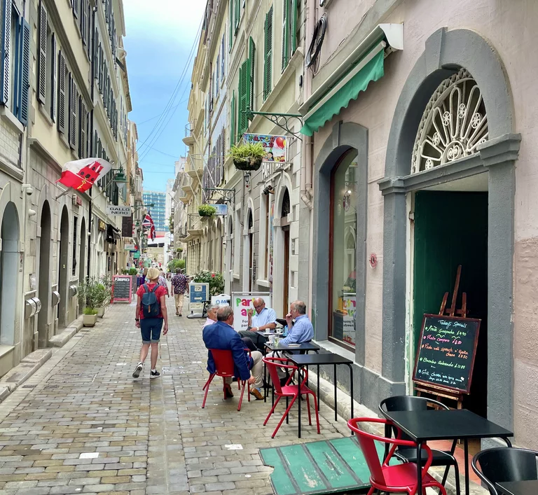 Für den Rückweg durch die Stadt zum Schiff haben wir den Weg durch Irish Town gewählt. Irish Town ist eine Fußgängerzone und verläuft parallel zu Main Street. Vor 300 Jahren (als Gibraltat noch zu Spanien gehörte) hieß die Straße noch Calle de Santa Ana und war die einzige durchgehende Straße und das geschäftliche und wirtschaftliche Zentrum von Gibraltar.