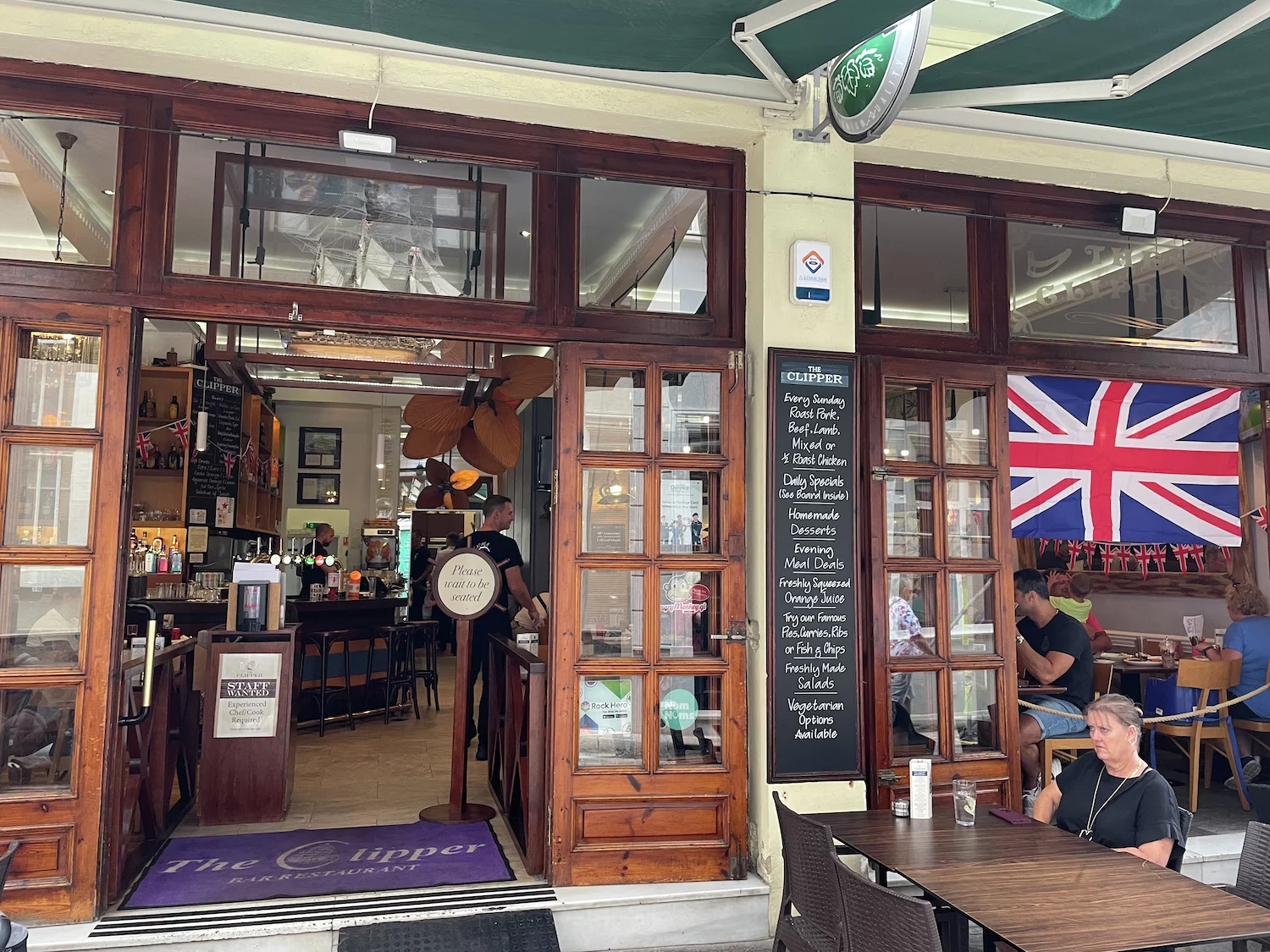 Heute ist es ein reines Amüsierviertel mit Bars, Restaurants und Kaffeeshops. Zumindest tagsüber hat Irish Town den großen Vorteil nicht so überlaufen zu sein wie die Main Street. Mit der sprichwörtlichen englischen Höflichkeit wurden wir am Hafeneingang verabschiedet, denn man bedankte sich für unseren Besuch.