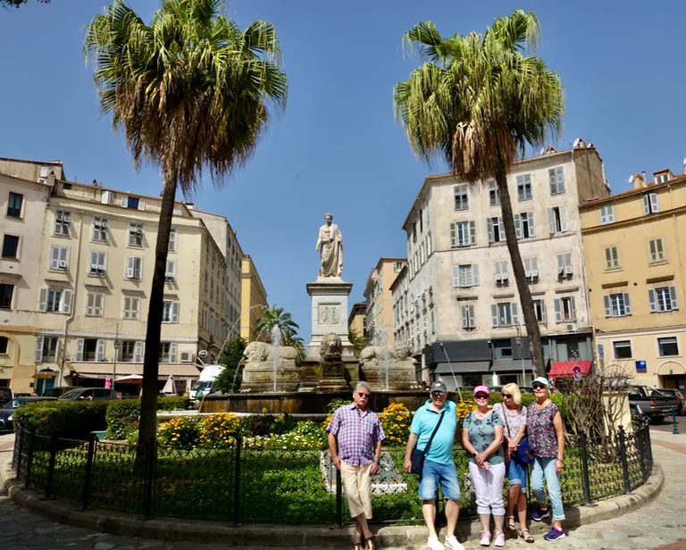Wir hatten uns für eine Stadtbesichtigung auf eigene Faust entschieden und sind nach dem Frühstück mit aufgeladenen Handy's und Kamera losgezogen. Kreuzfahrtschiffe machen innenstadtnah an einem langen Pier (Mole Croisiere) unmittelbar nördlich der exklusiven Tino Rossi Marina fest. Von dort sind es mal gerade 300 Meter bis in die Altstadt von Ajaccio. Es heißt, dass man auf Schritt und Tritt auf die eine oder andere Art Napoleon Bonaparte begegnet, der 1769 hier geboren wurde.