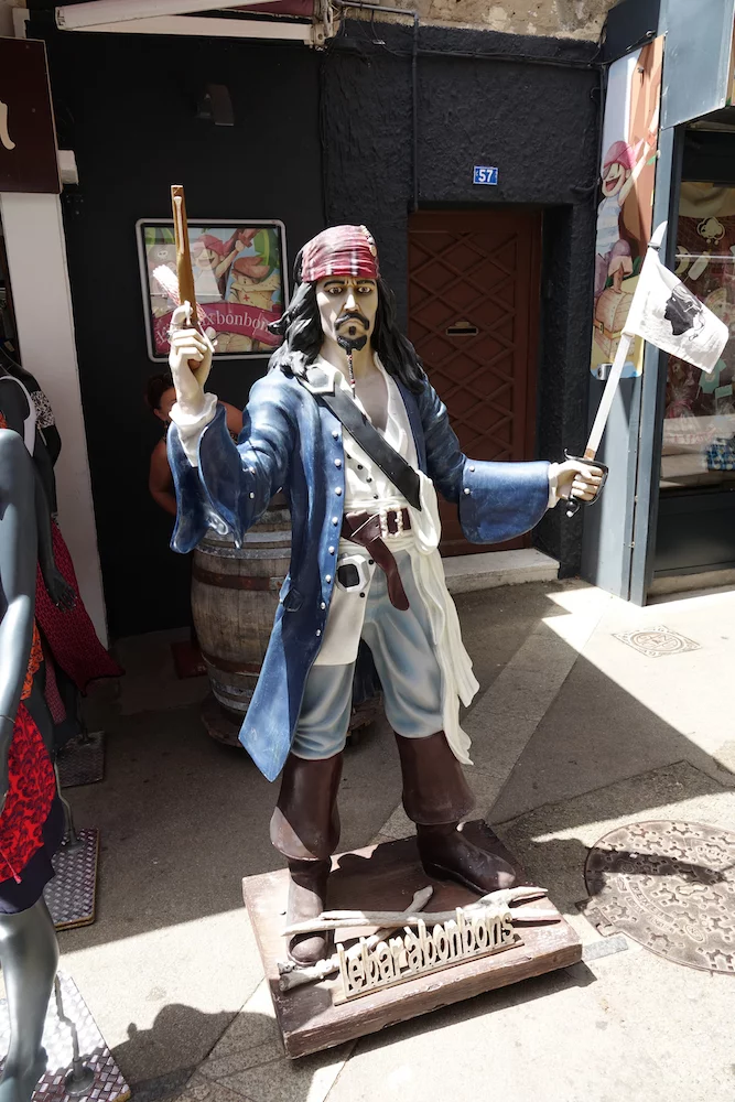 befindet sich das Museum Fesch. Es verfügt über eine der bedeutendsten Sammlungen von Werken italienischer Meister vom 14. bis zum 18. Jahrhundert. Das Museum Fesch ist in einem herrlichen Palast im Zentrum der Stadt untergebracht. Gründer der Sammlung war Kardinal Joseph Fesch, ein Onkel Napoleons. Leider war es geschlossen, sodass es bei einigen Außenfotos bleiben musste. Nur ein paar Schritte weiter begegnete uns dann auch noch Captain Sparrow und einer seiner Kumpanen.
