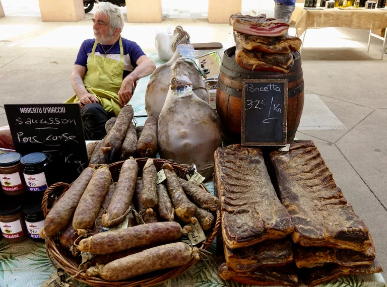 Im Sommer ist täglich Markttag auf der Place Foch fast direkt am Hafen. Nur wenige Meter nördlich der Place Foch befindet sich die Piazza Cesare Campinchi, mit der Martkhalle Marcatu d’Aiacciu. Hier gibt es die Zutaten, die man in der korsischen Küche benötigt. Darunter lokalen Ziegenkäse, regionale Käsesorten, korsische Wurst, Oliven oder Gewürze aller Art.