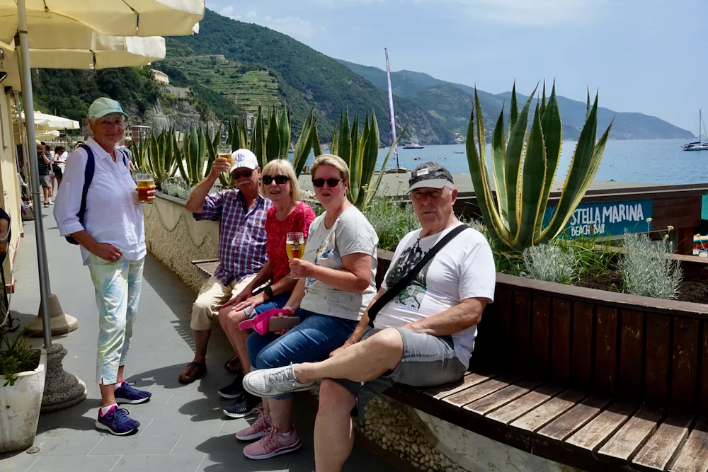 Da das Dorf quasi nur aus einer Straße besteht, war die Chance dem Trubel zu entgehen gleich null. Wir sind die Straße trotzdem bis zum Ende durchgelaufen und haben mit viel Glück auch noch ein kaltes Bier ergattert. Zu normalen Zeiten ist Monterosso wie auch die anderen 4 Dörfer sicher sehr sehenswert. Aber davon konnte man an einem Pfingstsamstag bei Traumwetter natürlich nicht reden.